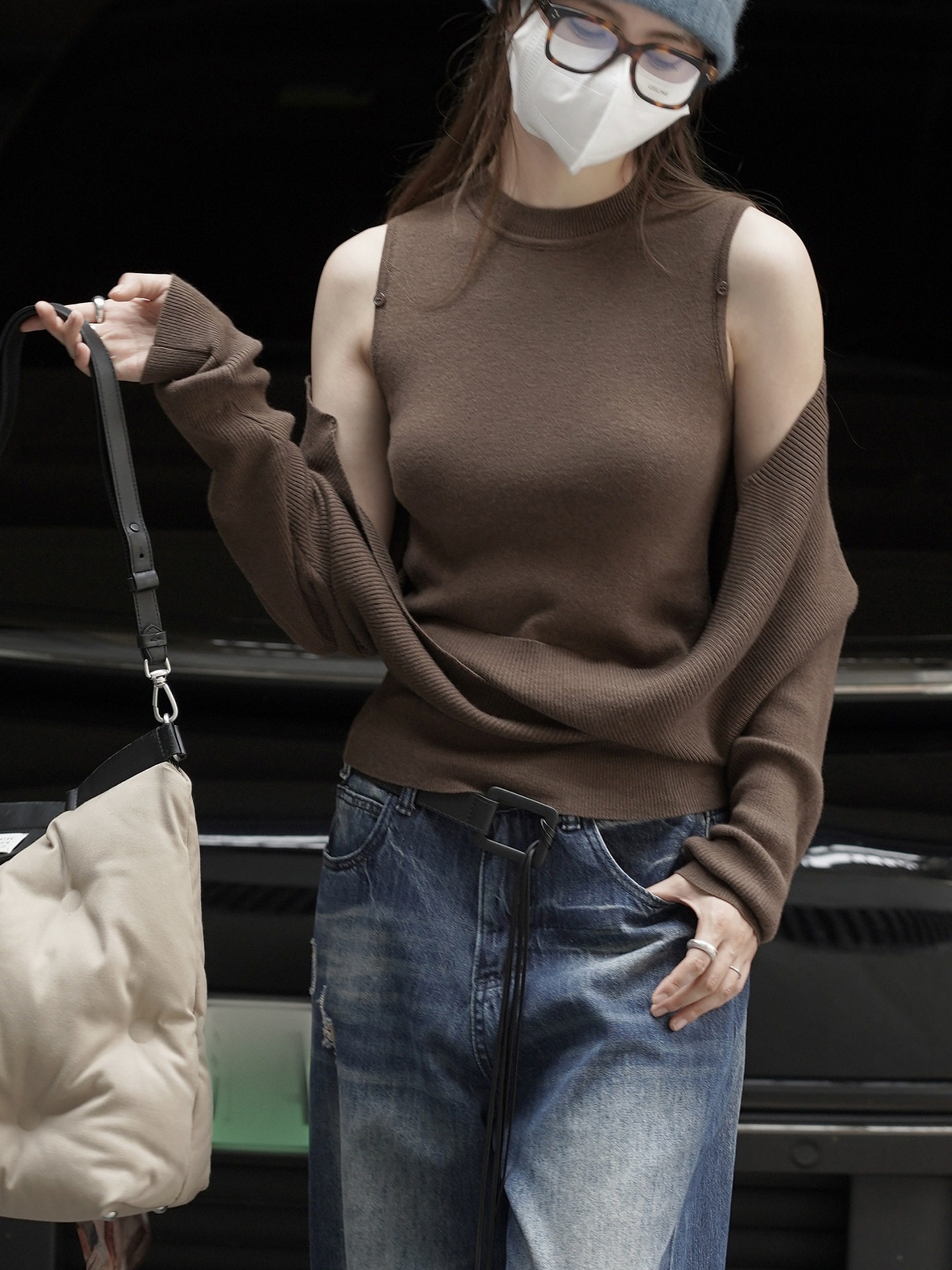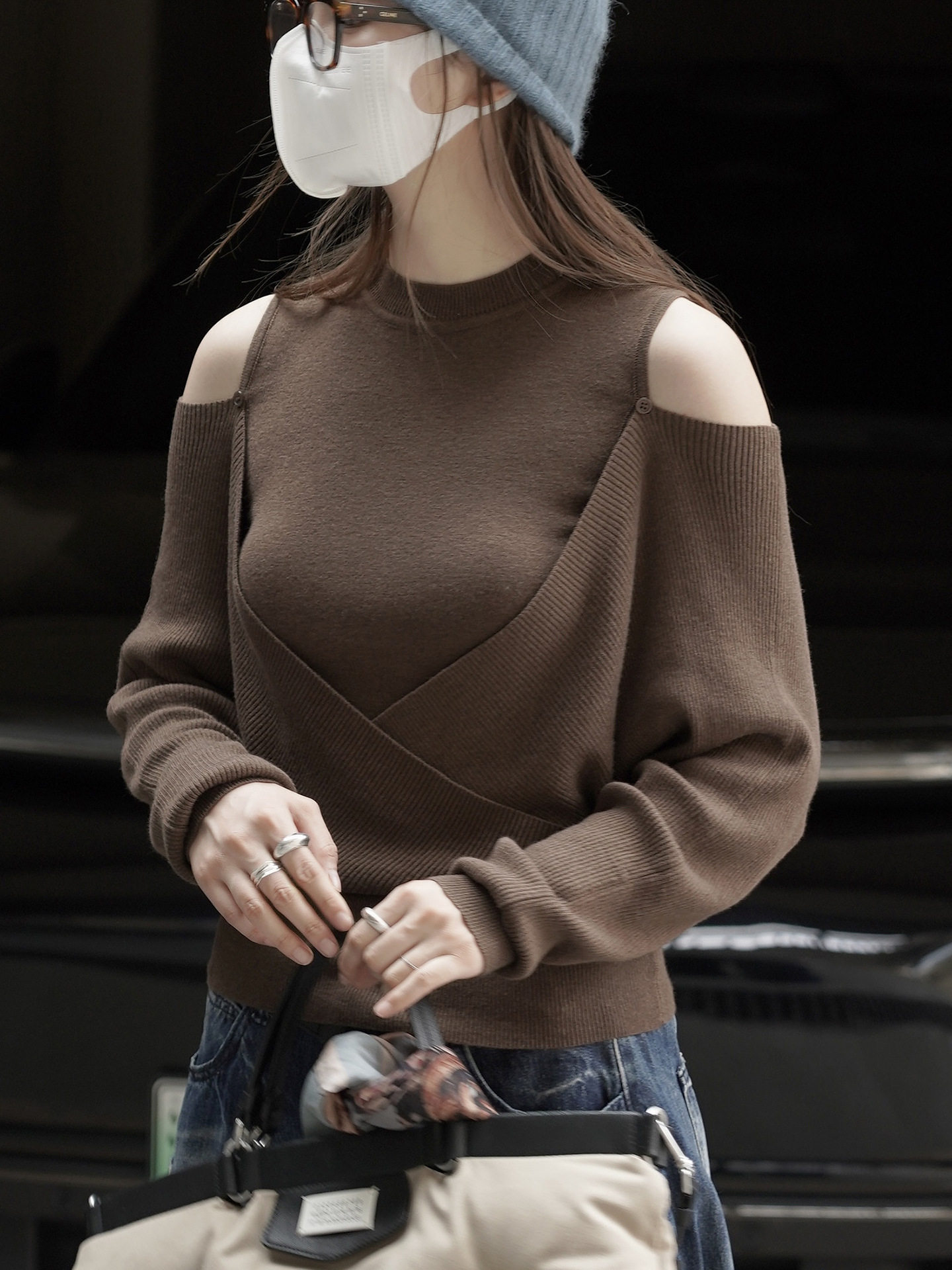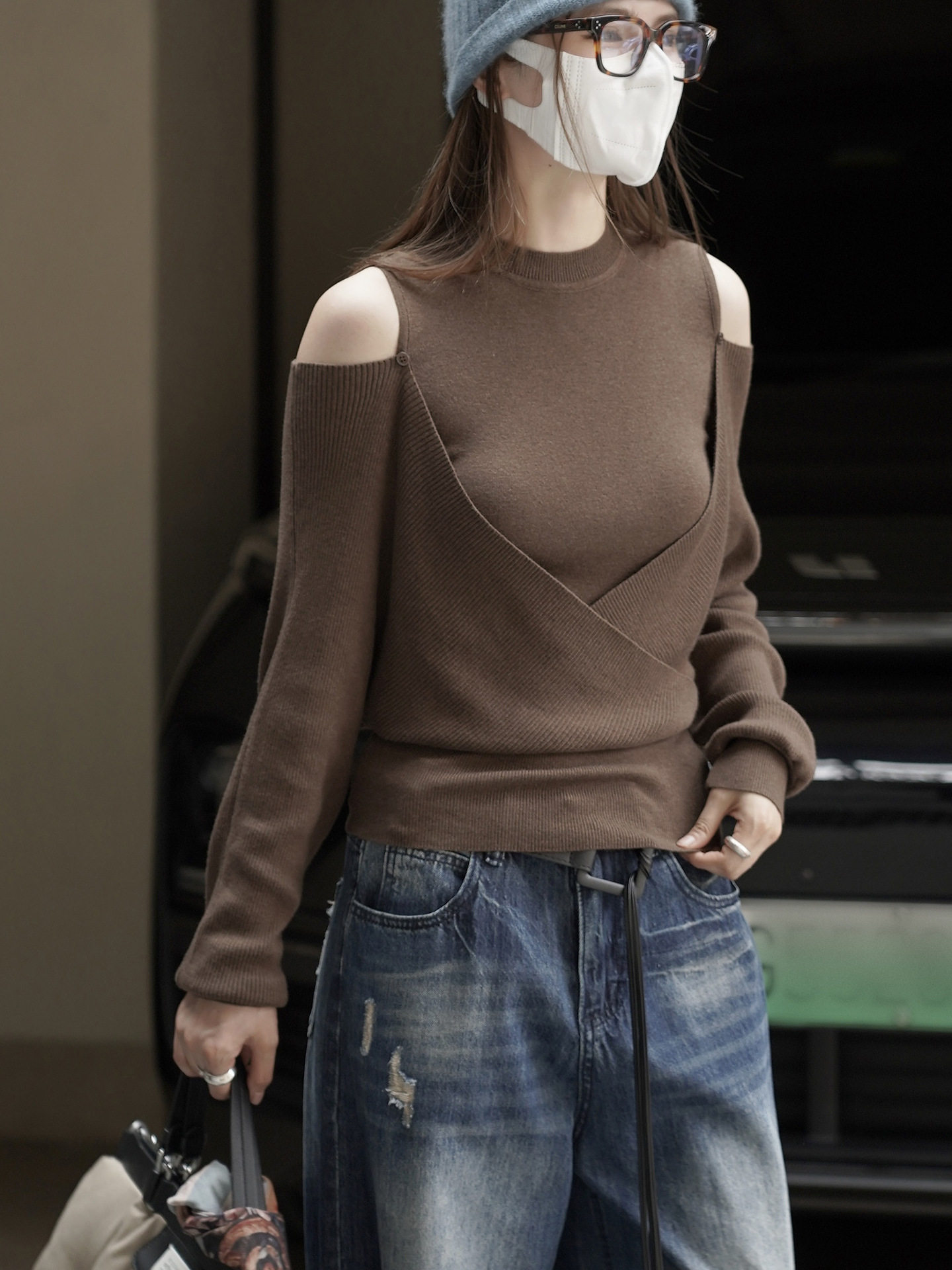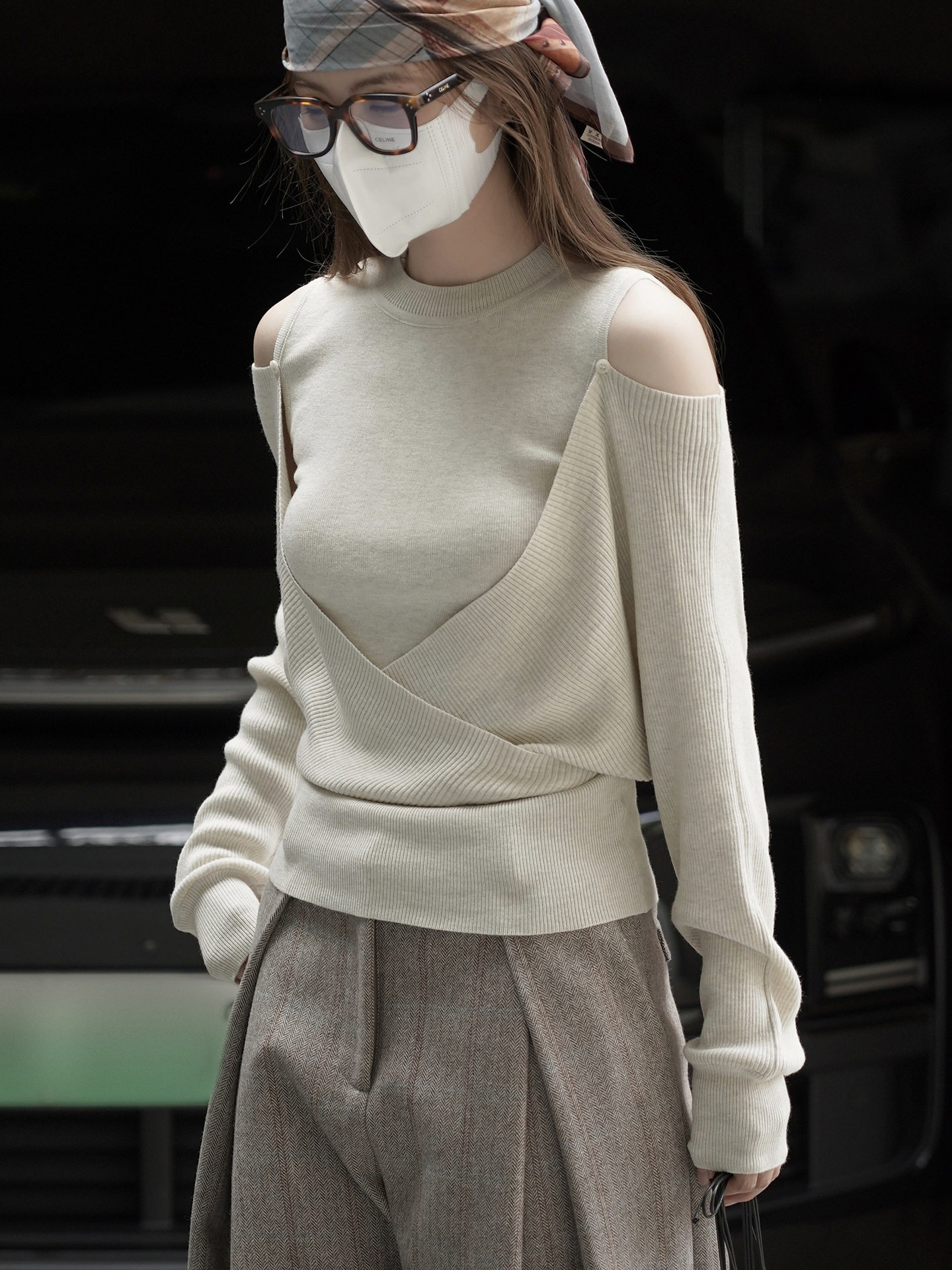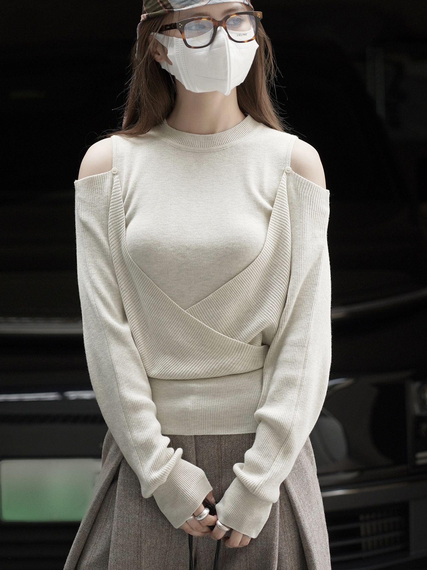【商品名】【トップス】春 秋 冬 オフショルダー クロスデザイン 肌に優しい ニット Tシャツ 【JZシリーズ】