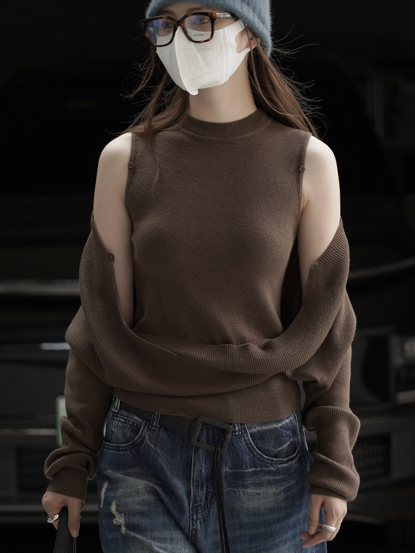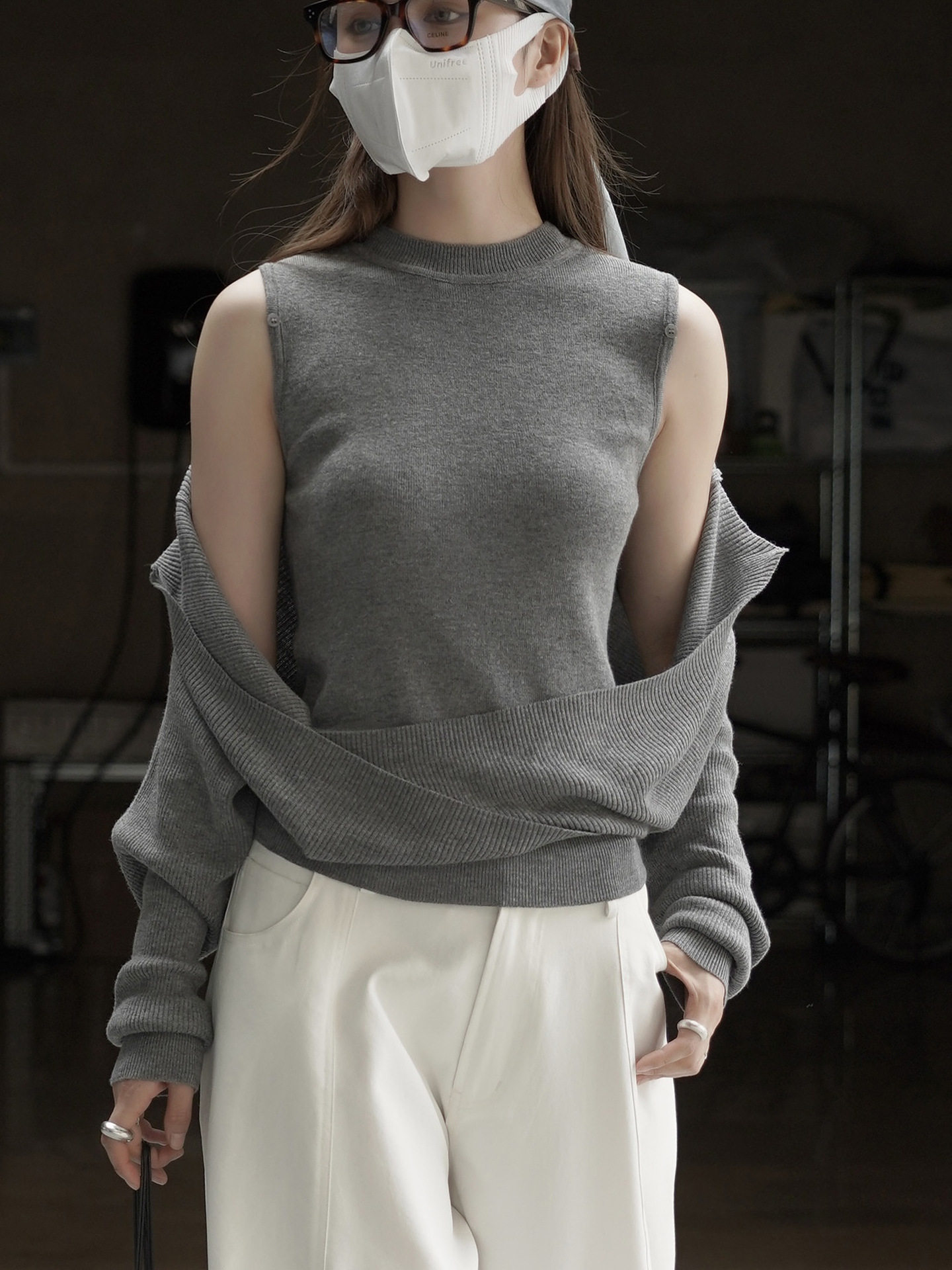 【トップス】遊び心 猫モチーフ ワンショルダーニット 猫柄 ゆったり リラックス感 ニットトップス【FCシリーズ】