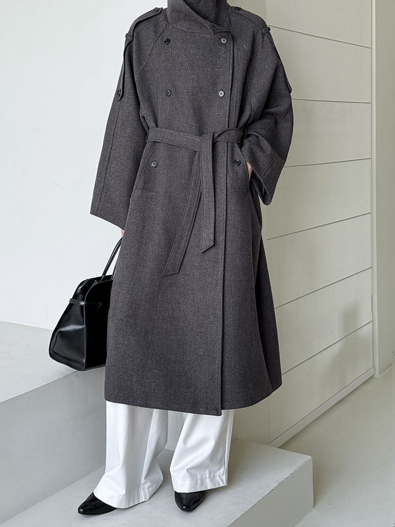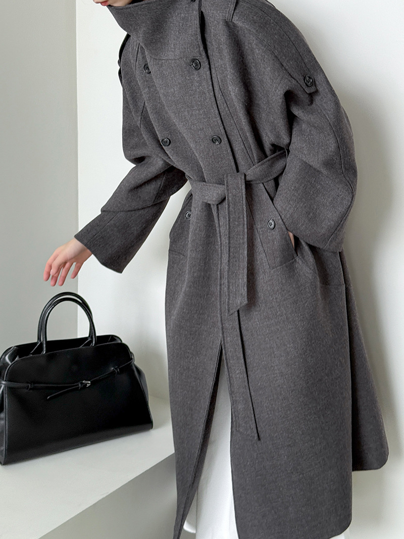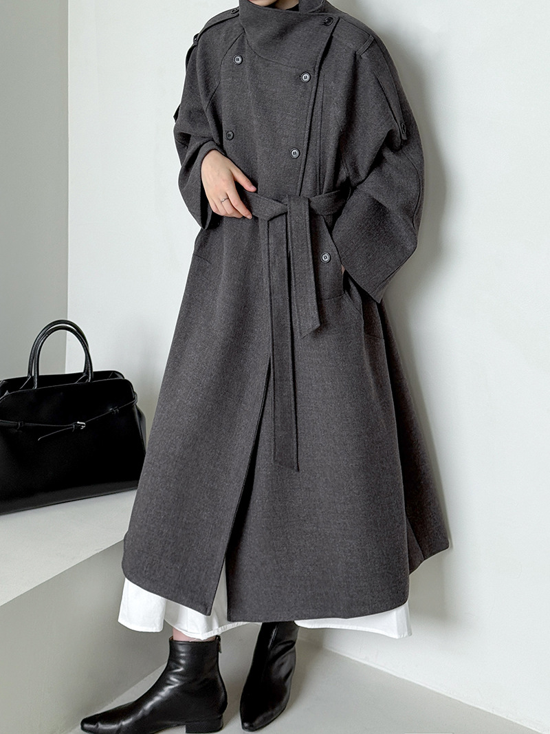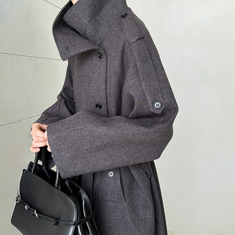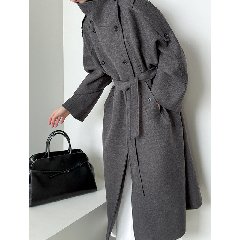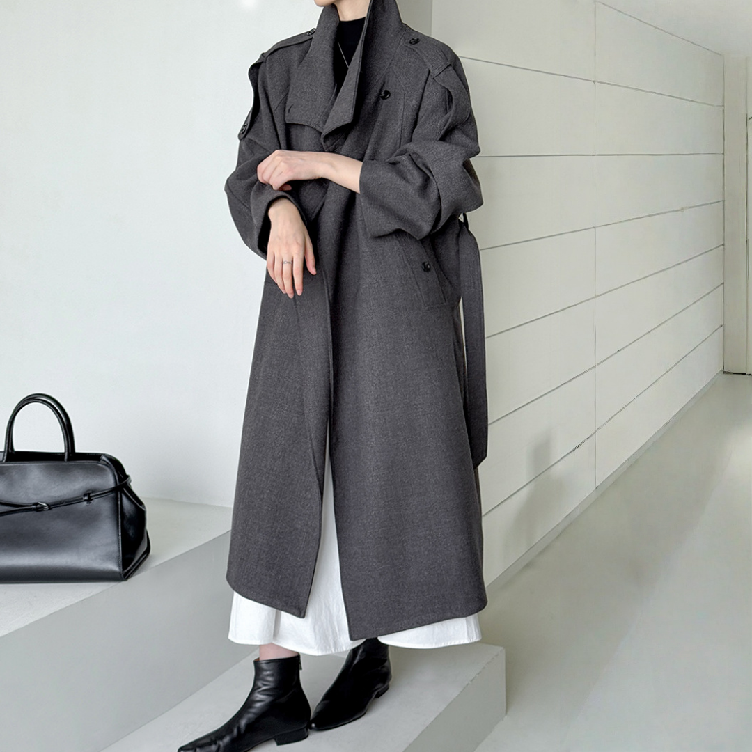 【アウター】春 秋 冬 立襟 ダブル 韓国風 トレンチコート 【SNシリーズ】