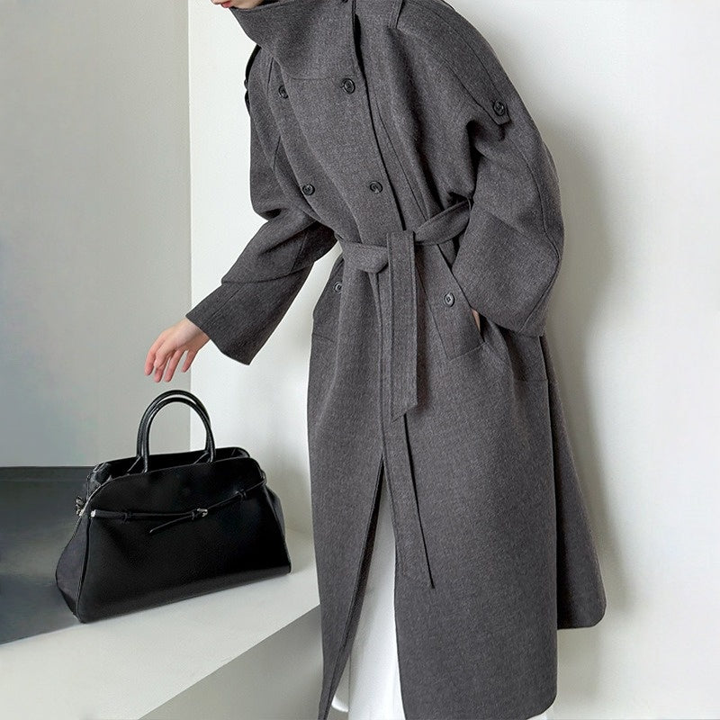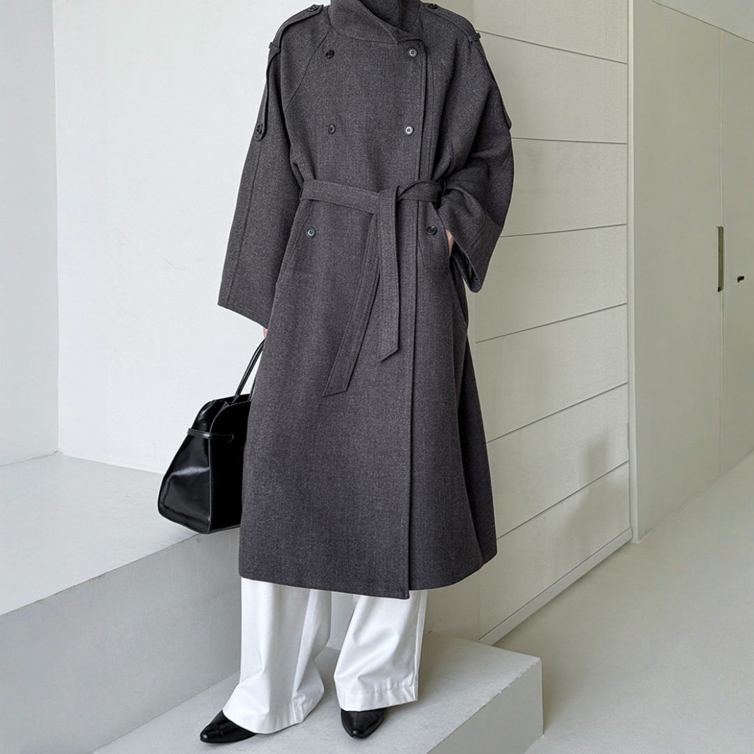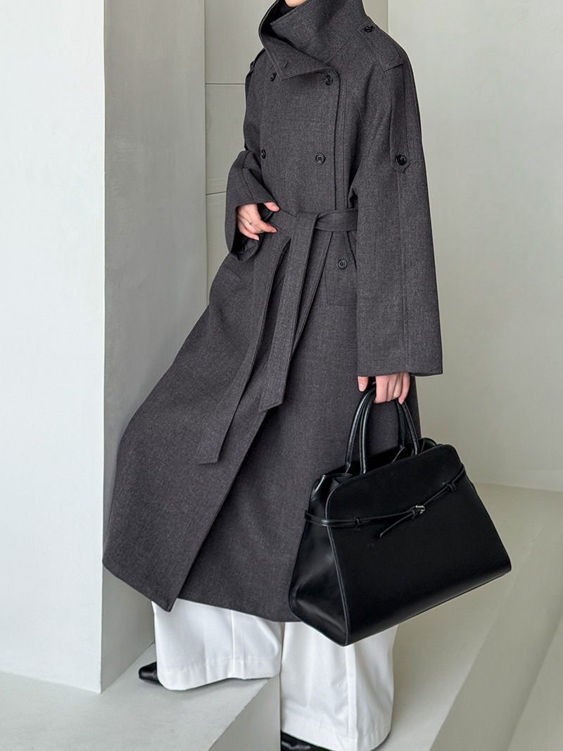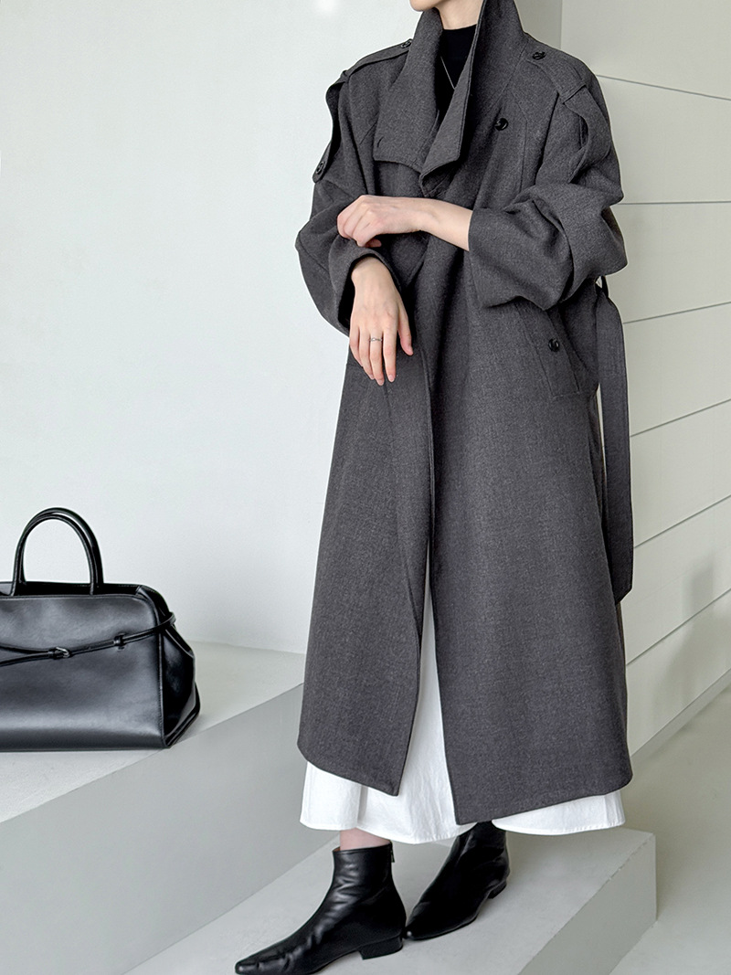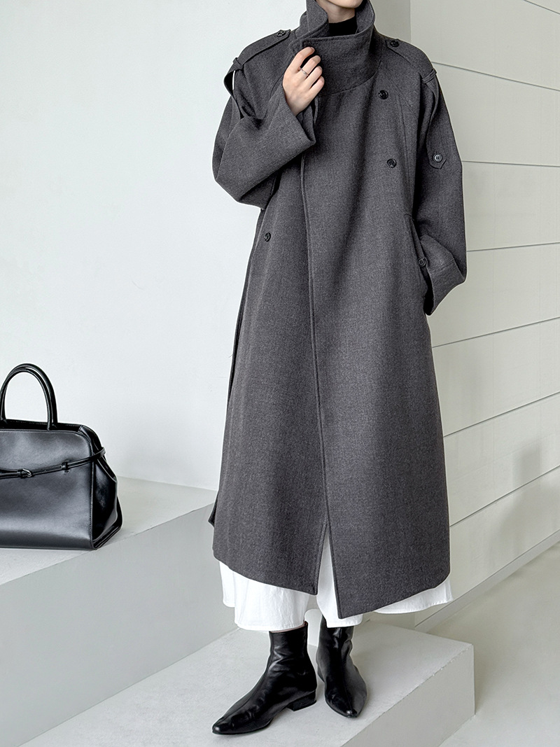 【アウター】春 秋 冬 立襟 ダブル 韓国風 トレンチコート 【SNシリーズ】