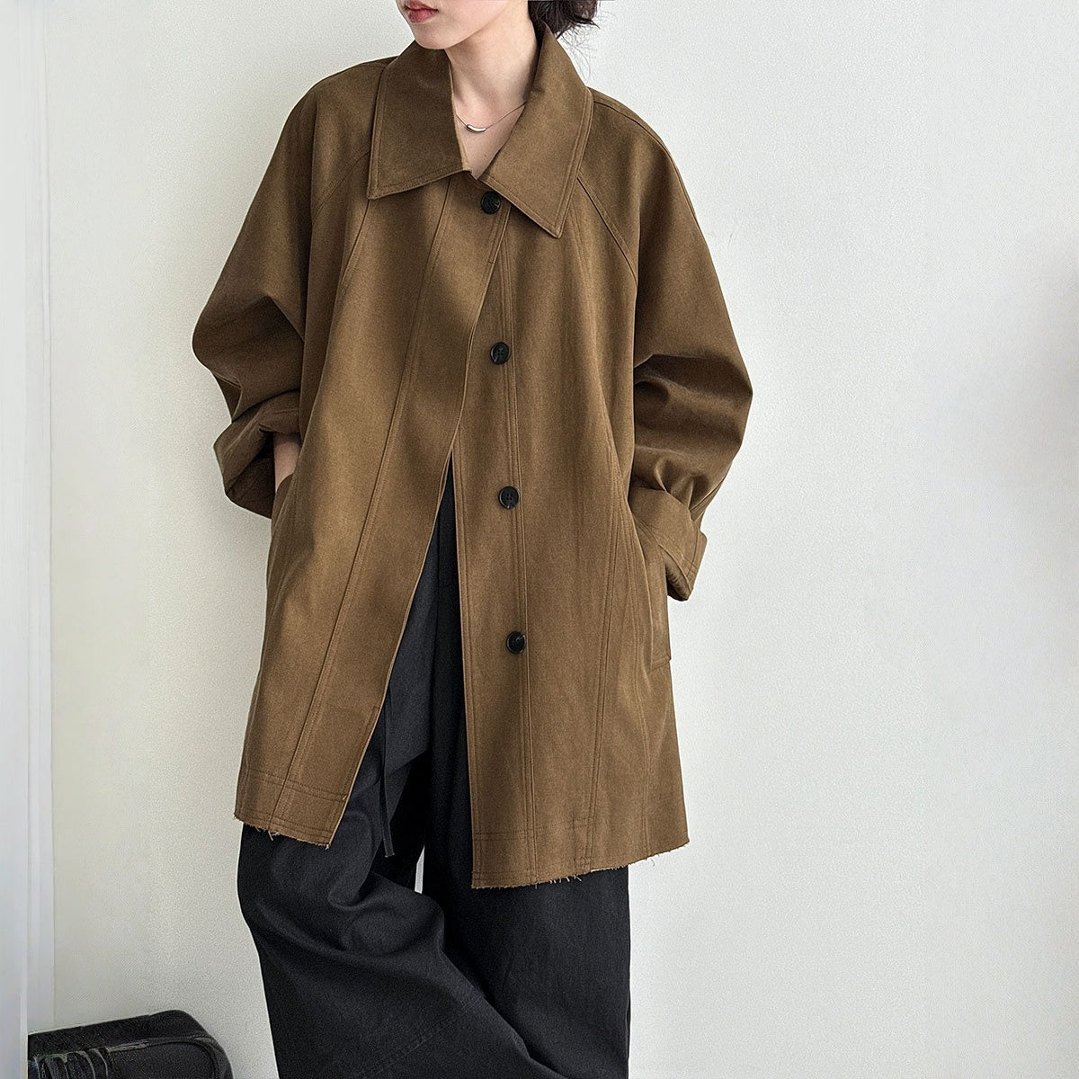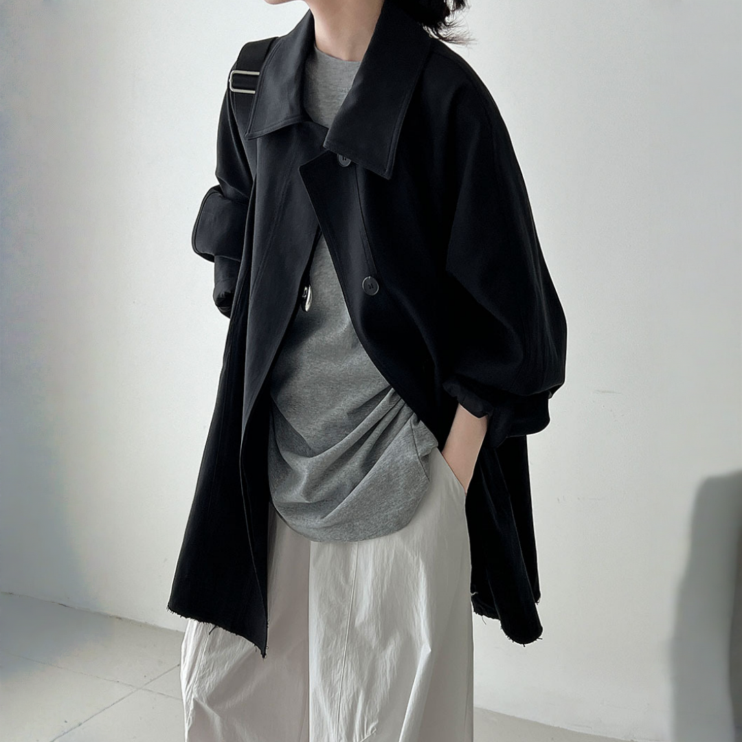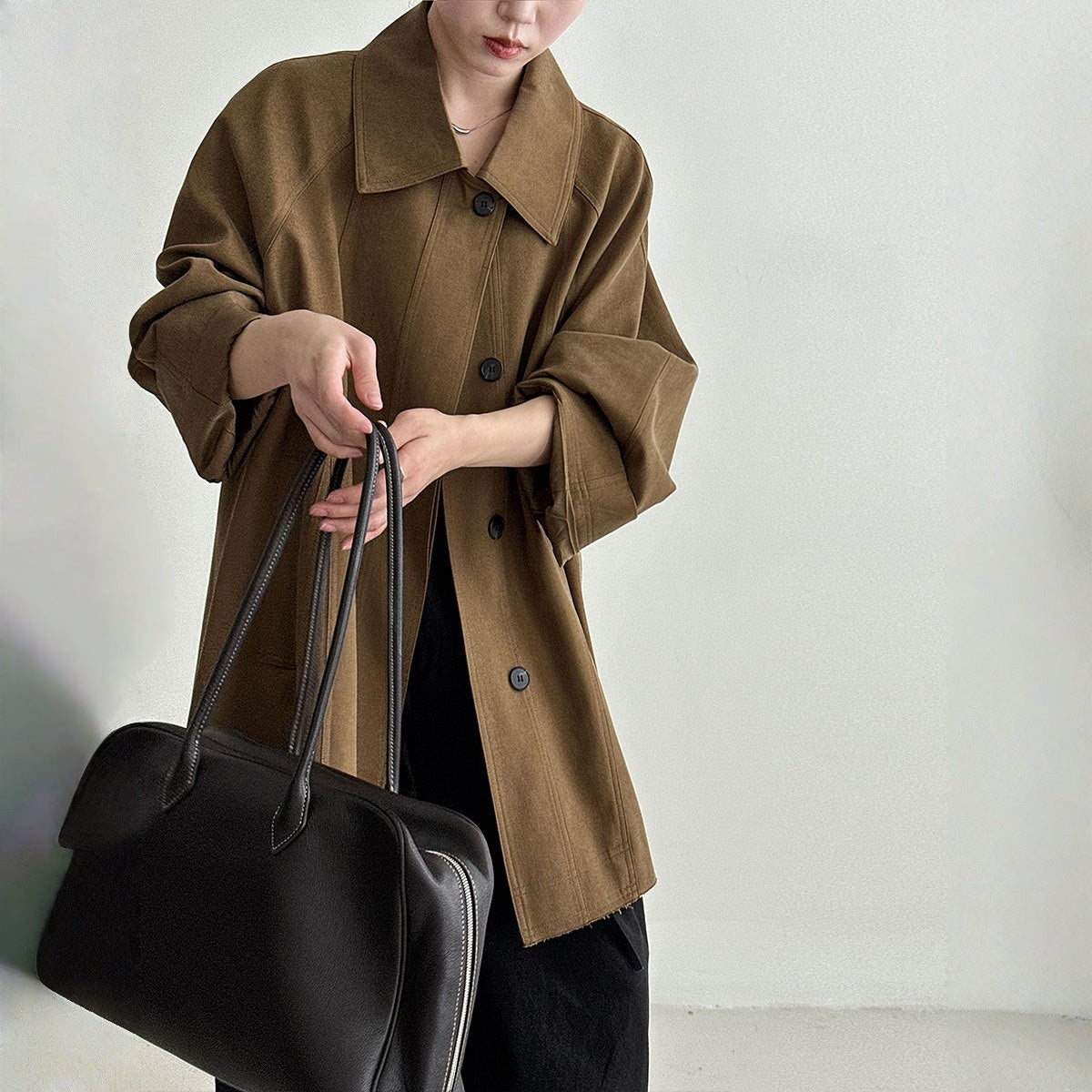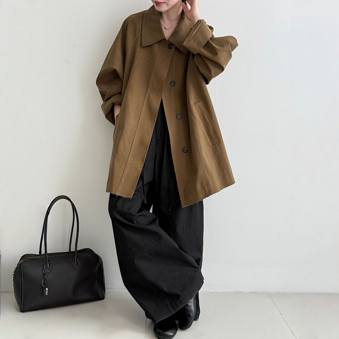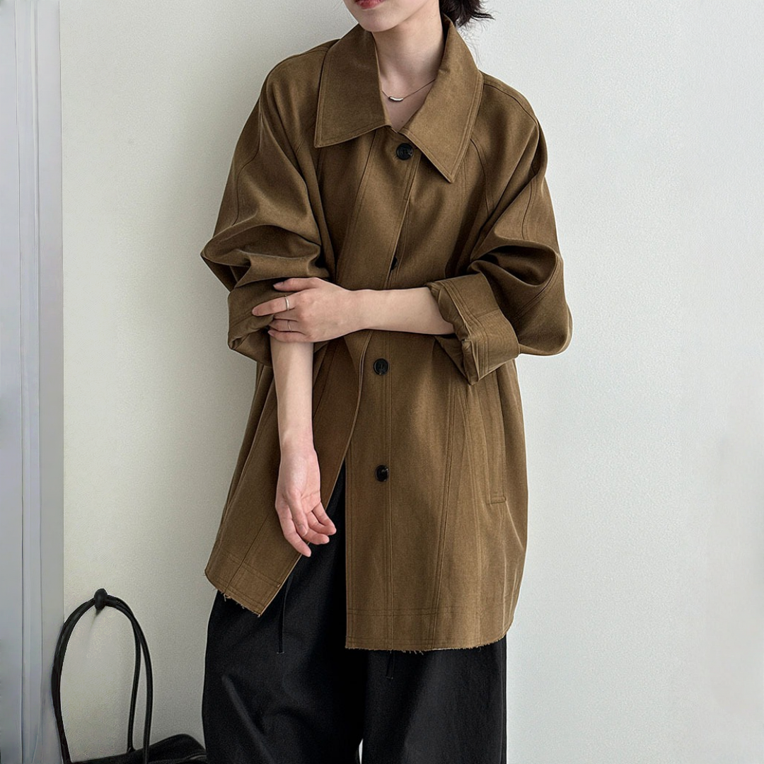 【アウター】春 秋 冬 レトロ カジュアル ダブルフロント 前立て 小柄向け トレンチコート 【SNシリーズ】