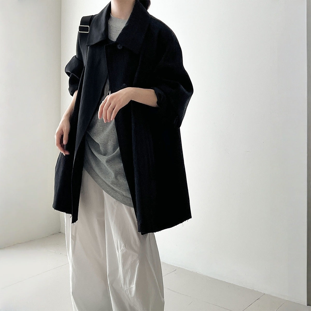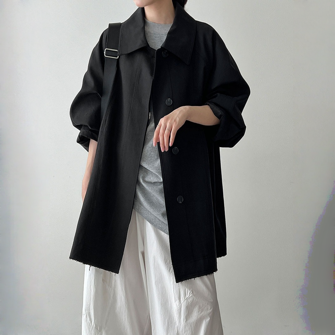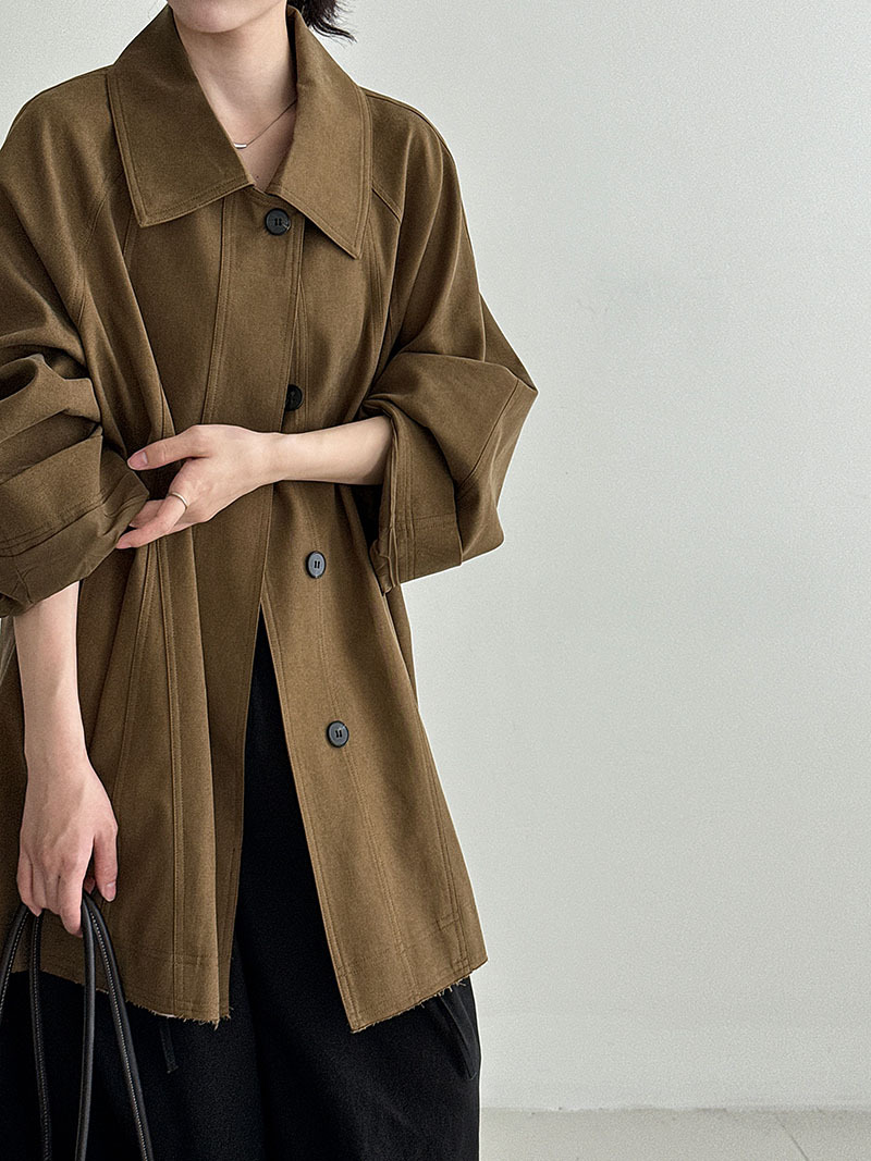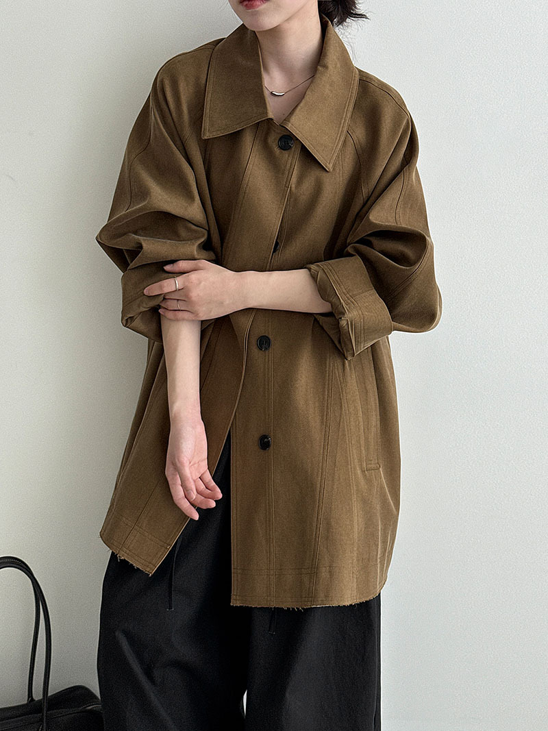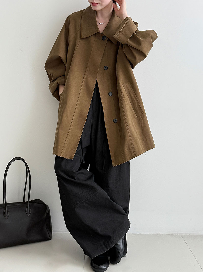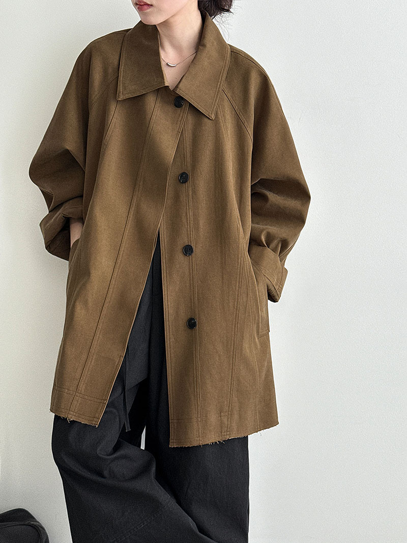 【アウター】春 秋 冬 レトロ カジュアル ダブルフロント 前立て 小柄向け トレンチコート 【SNシリーズ】