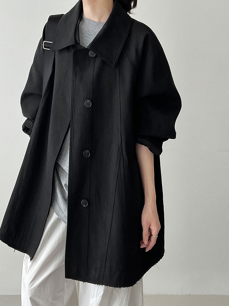 【商品名】【アウター】春 秋 冬 レトロ カジュアル ダブルフロント 前立て 小柄向け トレンチコート 【SNシリーズ】