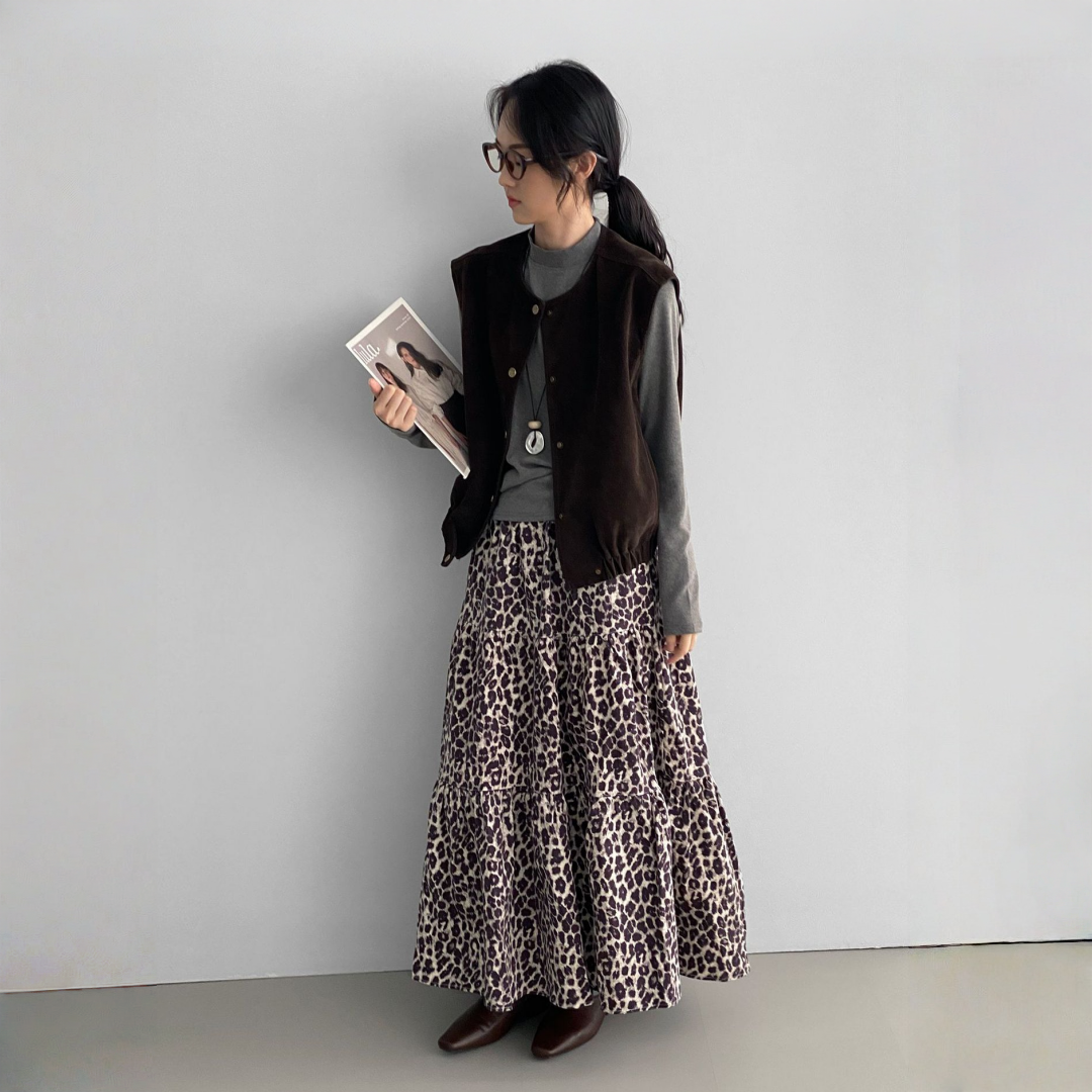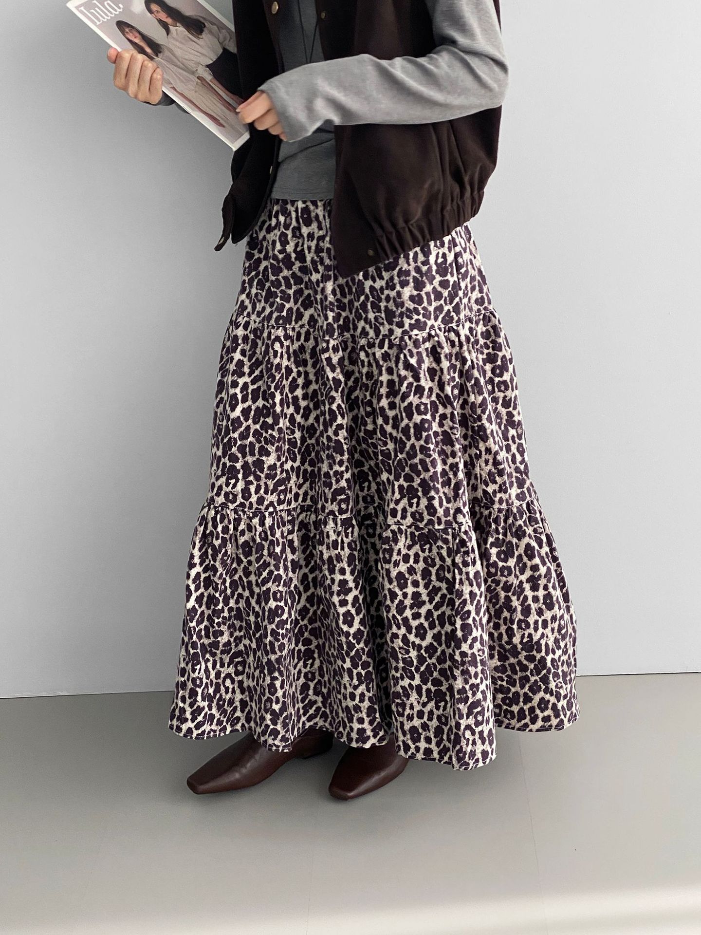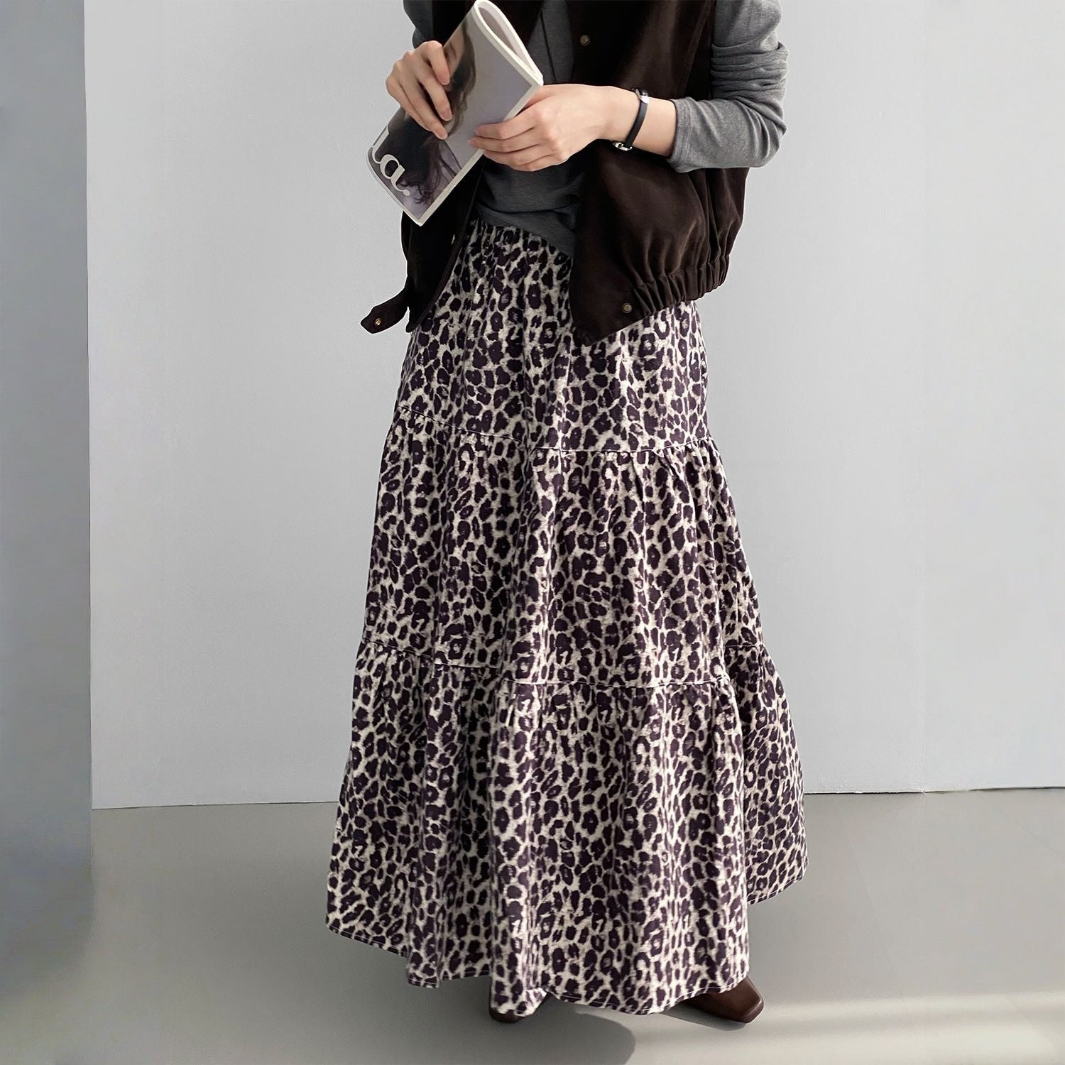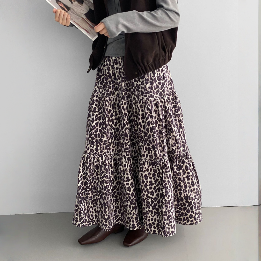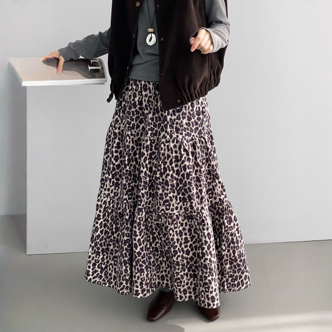 【ボトムス】春 秋 冬 レトロ プリント ヒョウ柄 韓国風 スカート 【SNシリーズ】