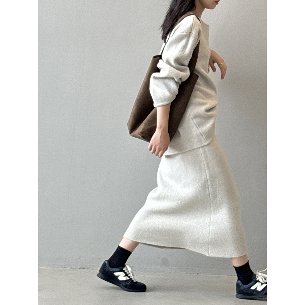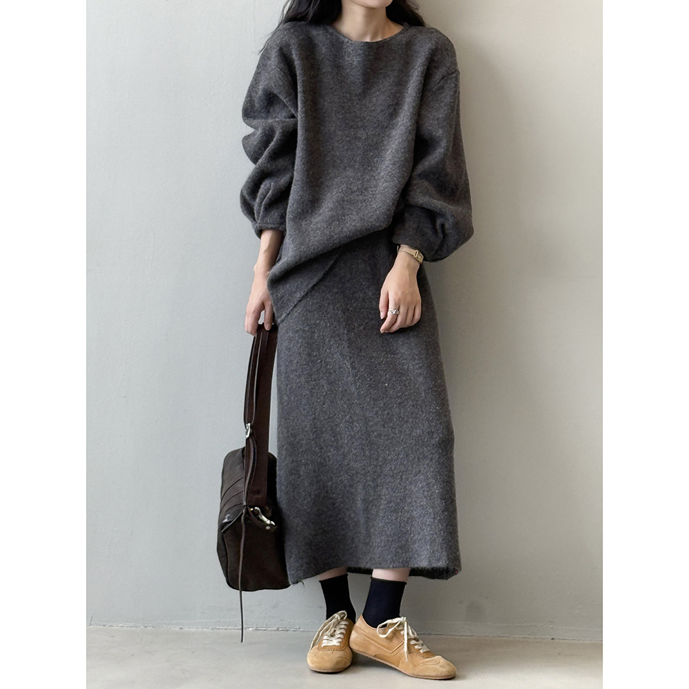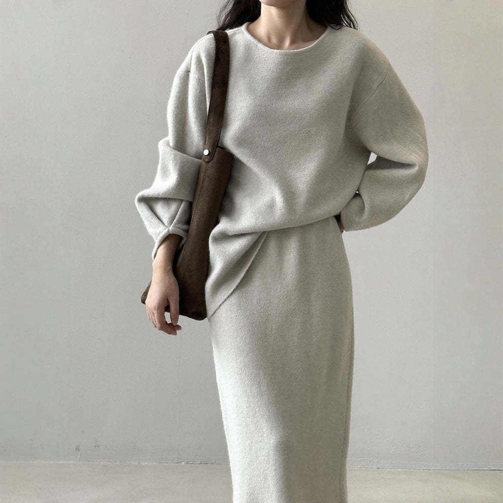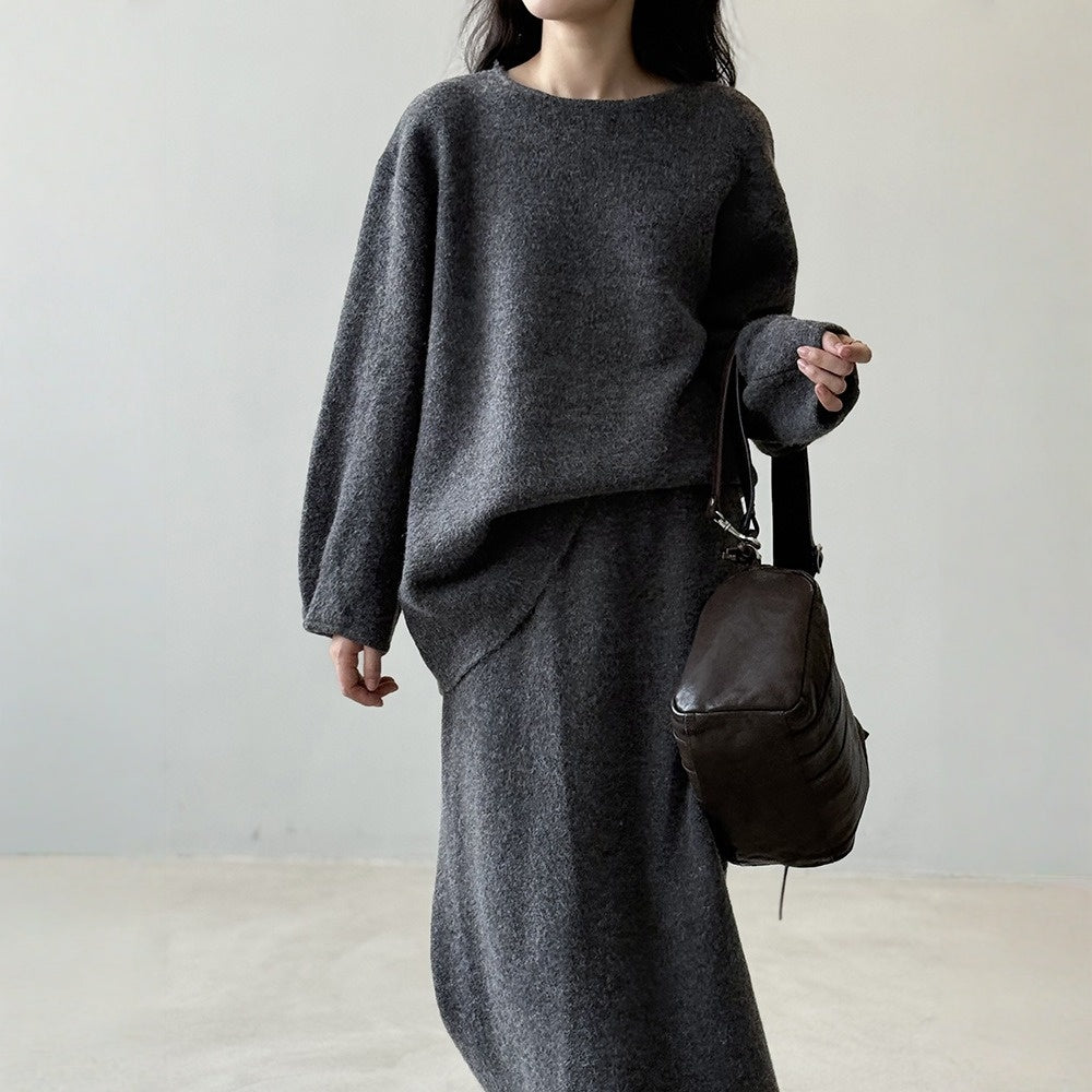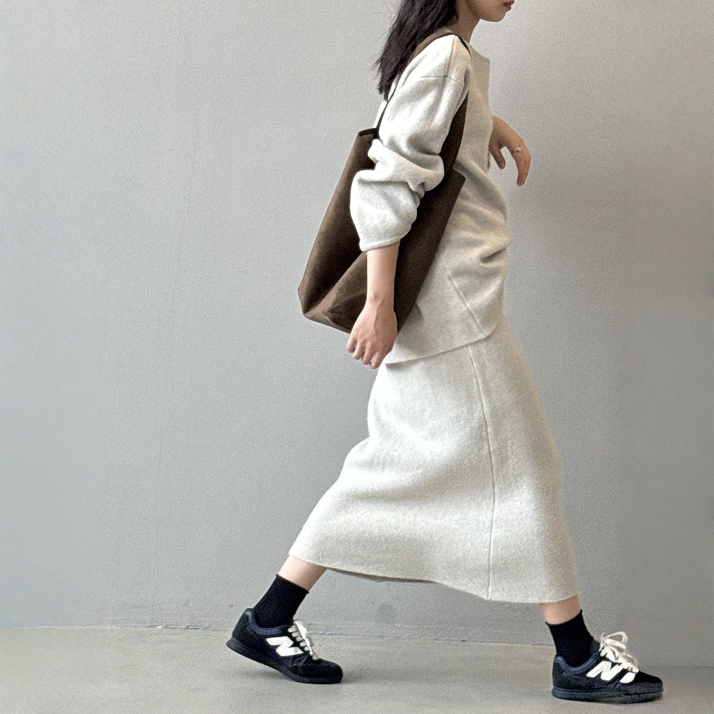 【セットアップ】春 秋 冬 ラウンドネック セーター + 着痩せ効果 スカート 2点上下セット 【SNシリーズ】