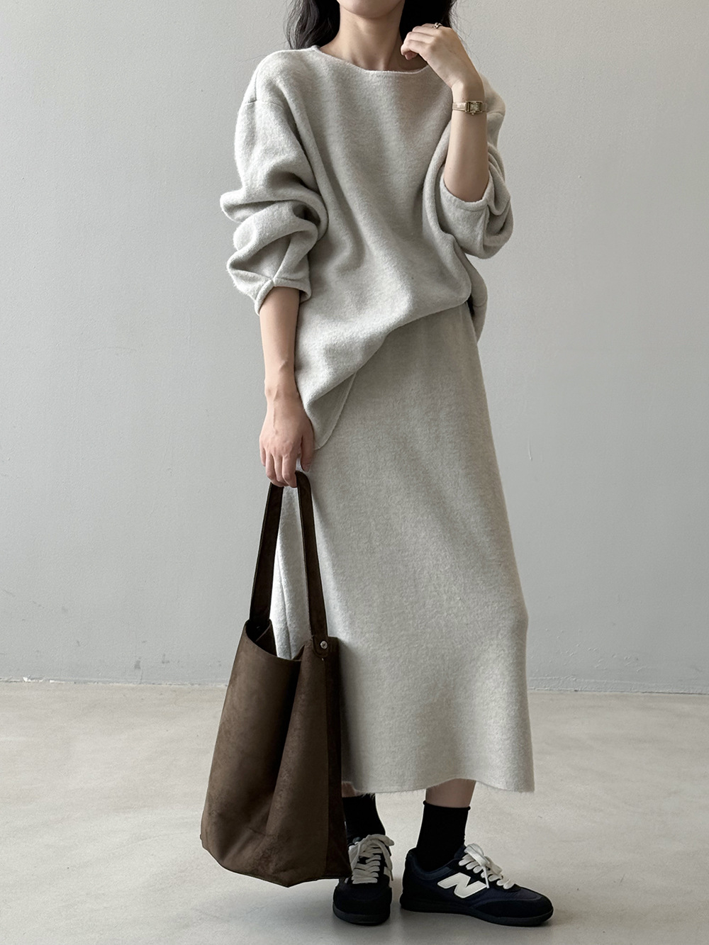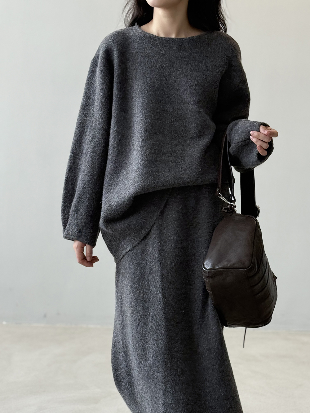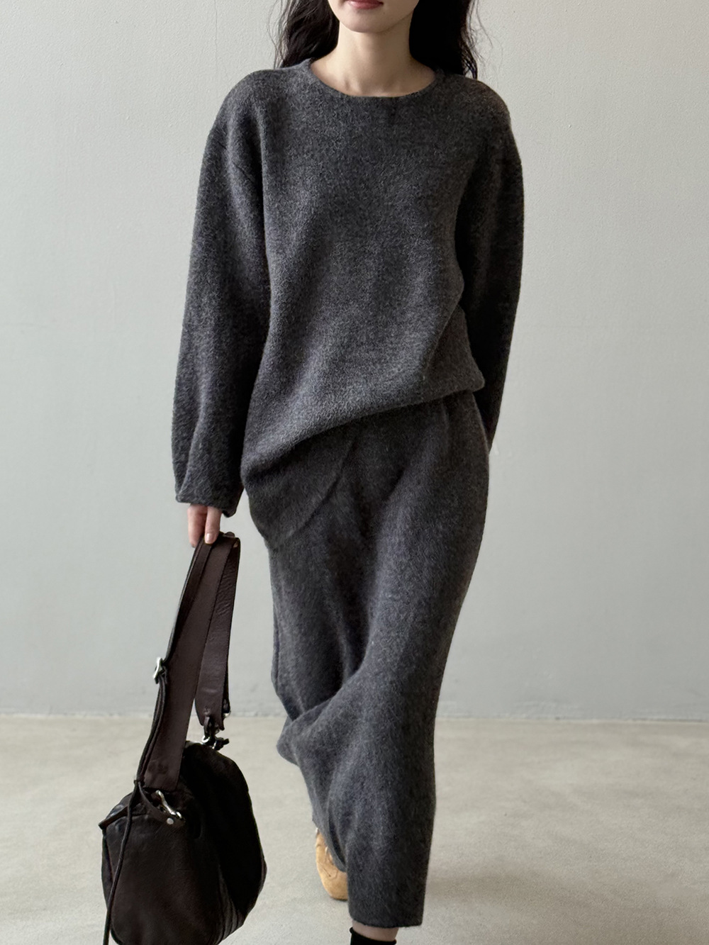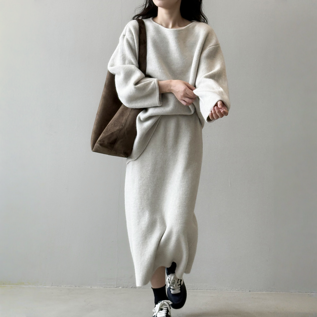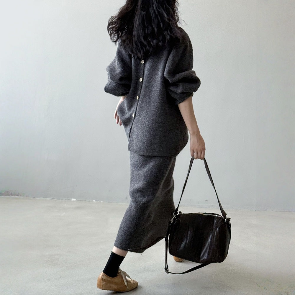 【セットアップ】春 秋 冬 ラウンドネック セーター + 着痩せ効果 スカート 2点上下セット 【SNシリーズ】