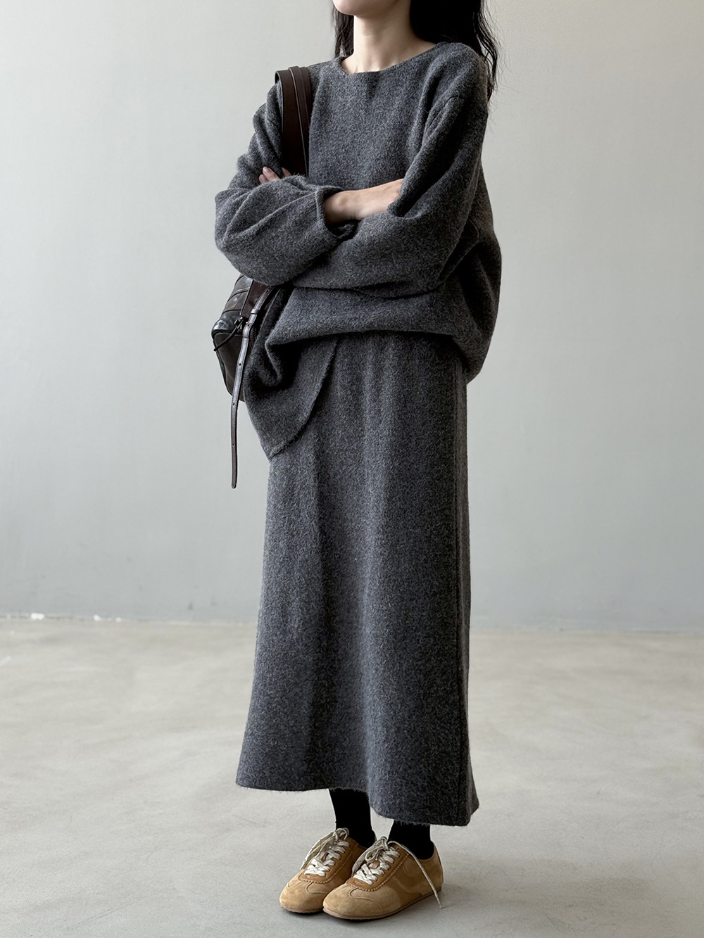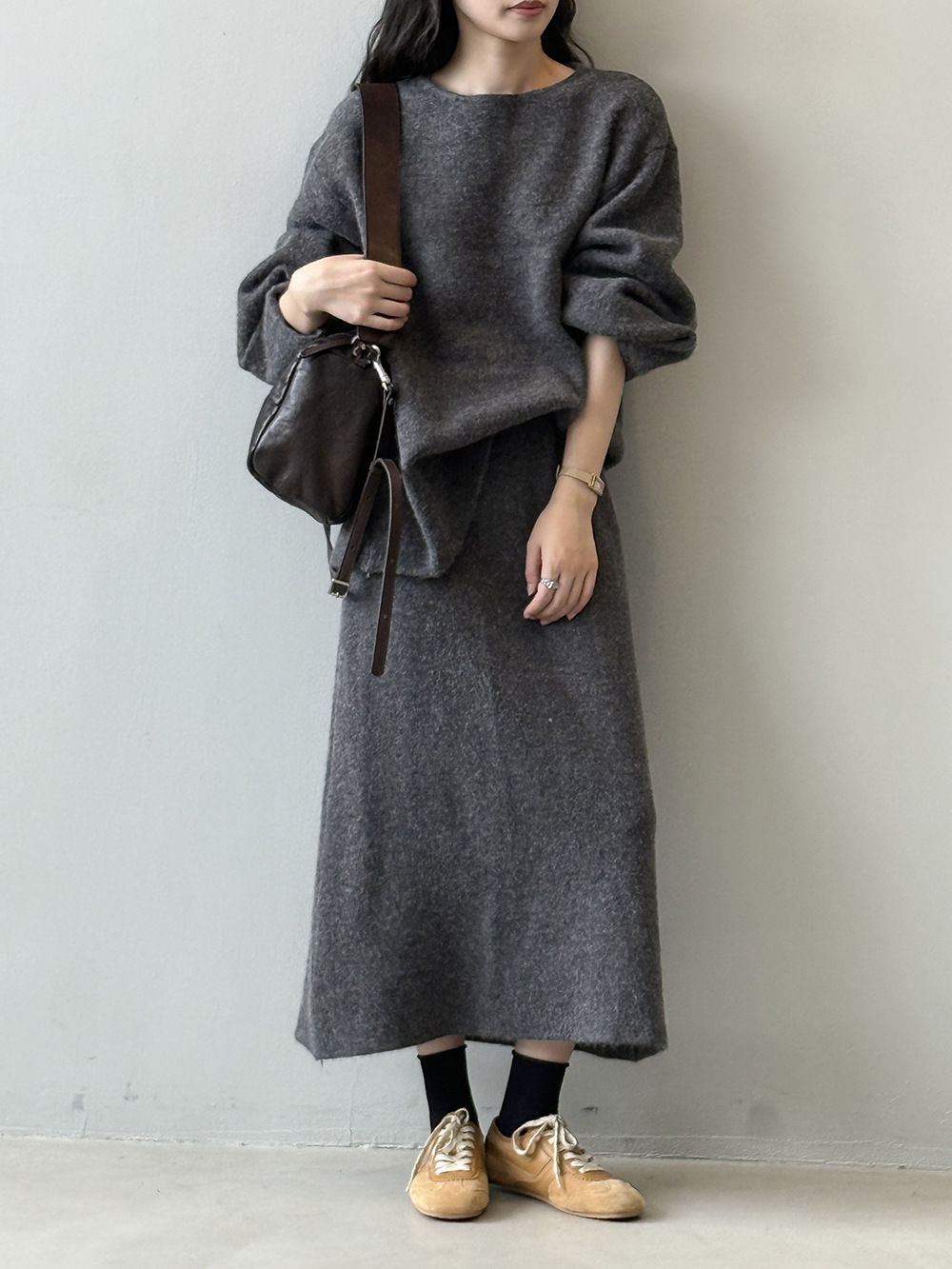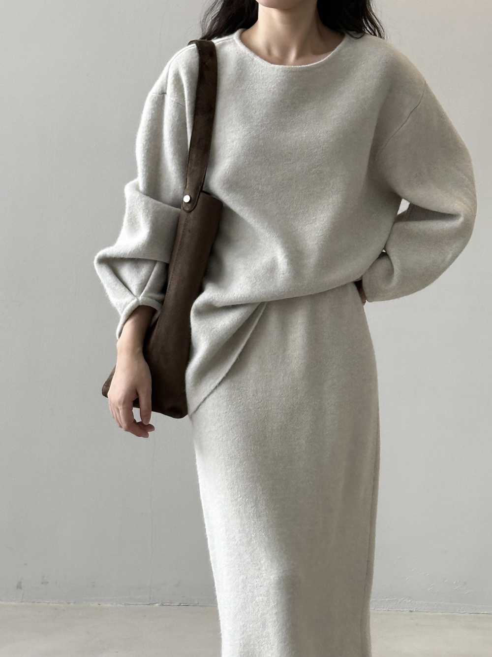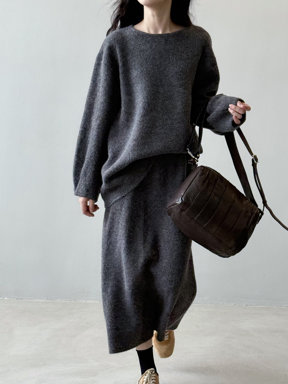 【セットアップ】春 秋 冬 ラウンドネック セーター + 着痩せ効果 スカート 2点上下セット 【SNシリーズ】