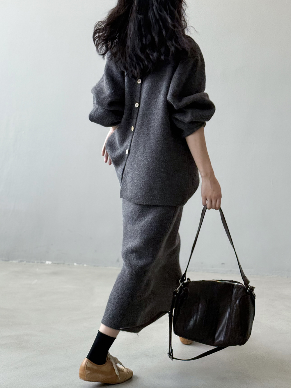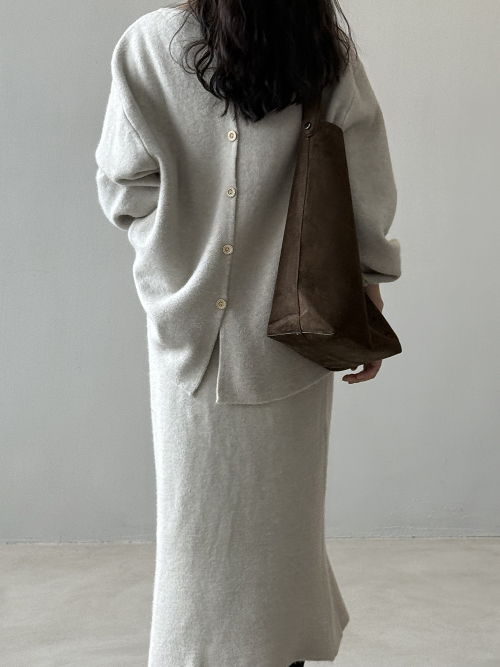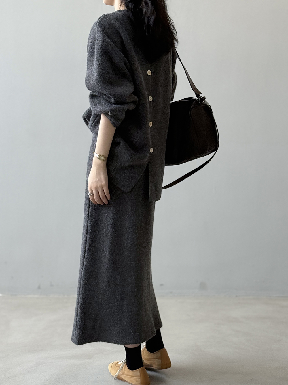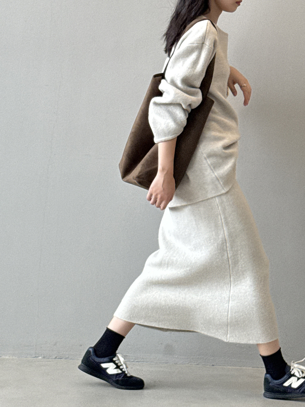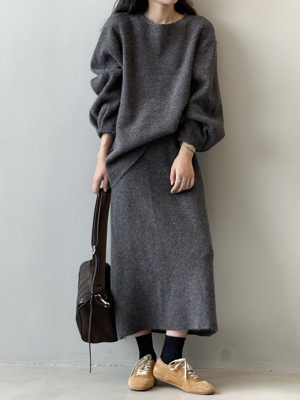 【セットアップ】春 秋 冬 ラウンドネック セーター + 着痩せ効果 スカート 2点上下セット 【SNシリーズ】