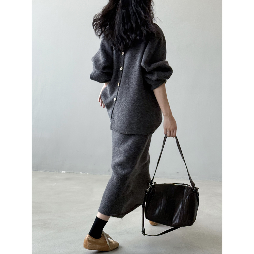 【商品名】【セットアップ】春 秋 冬 ラウンドネック セーター + 着痩せ効果 スカート 2点上下セット 【SNシリーズ】