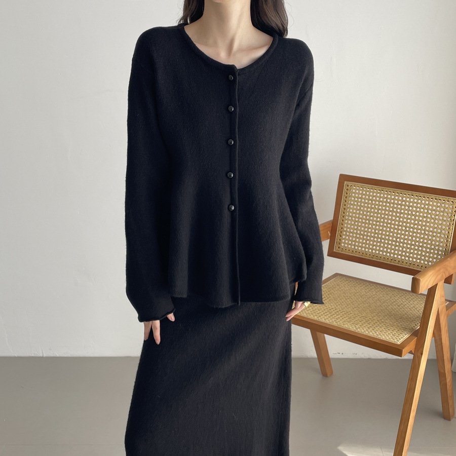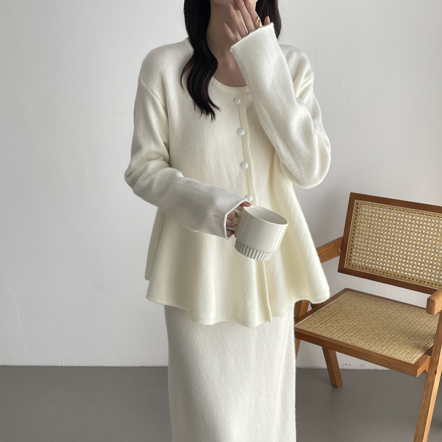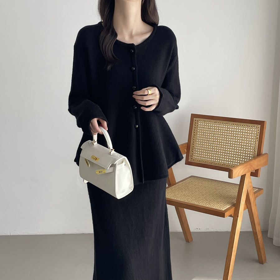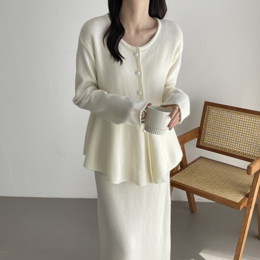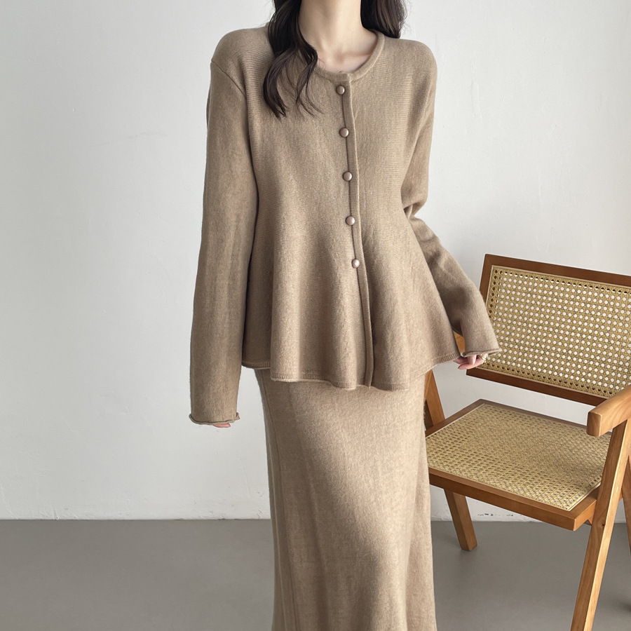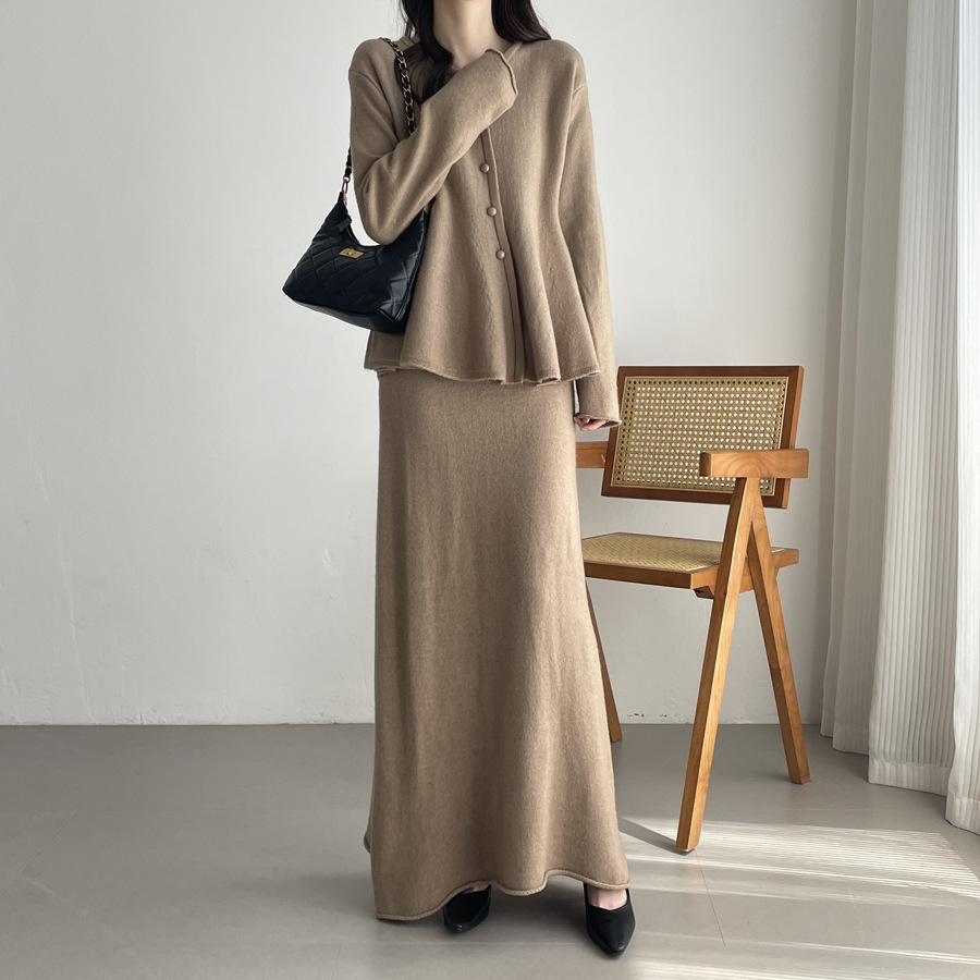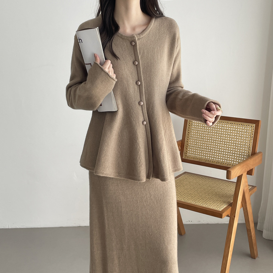 【セットアップ】春 秋 冬 ニットカーディガン + フロア丈 ロングスカート 2点上下セット 【SNシリーズ】