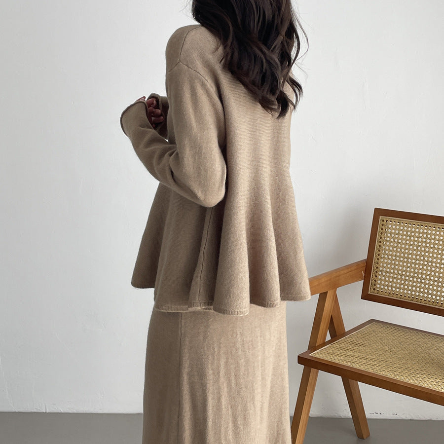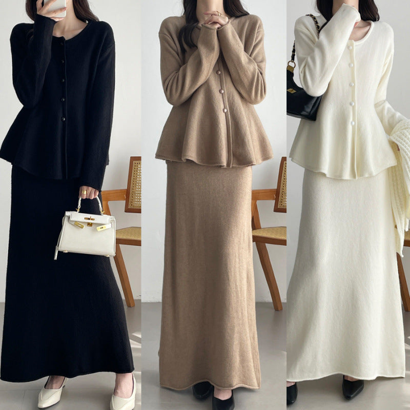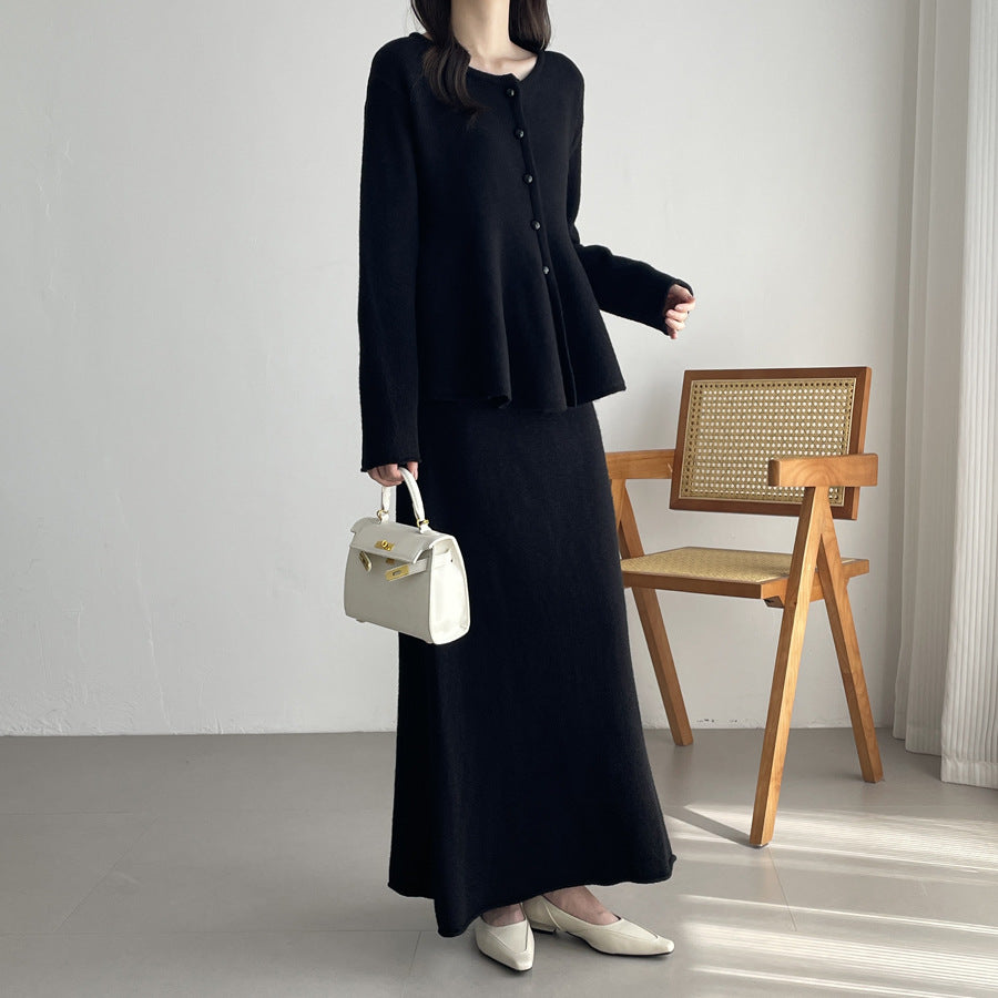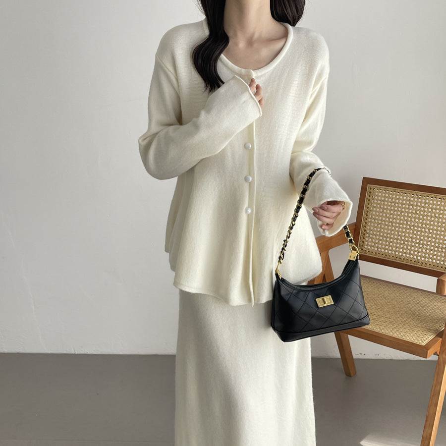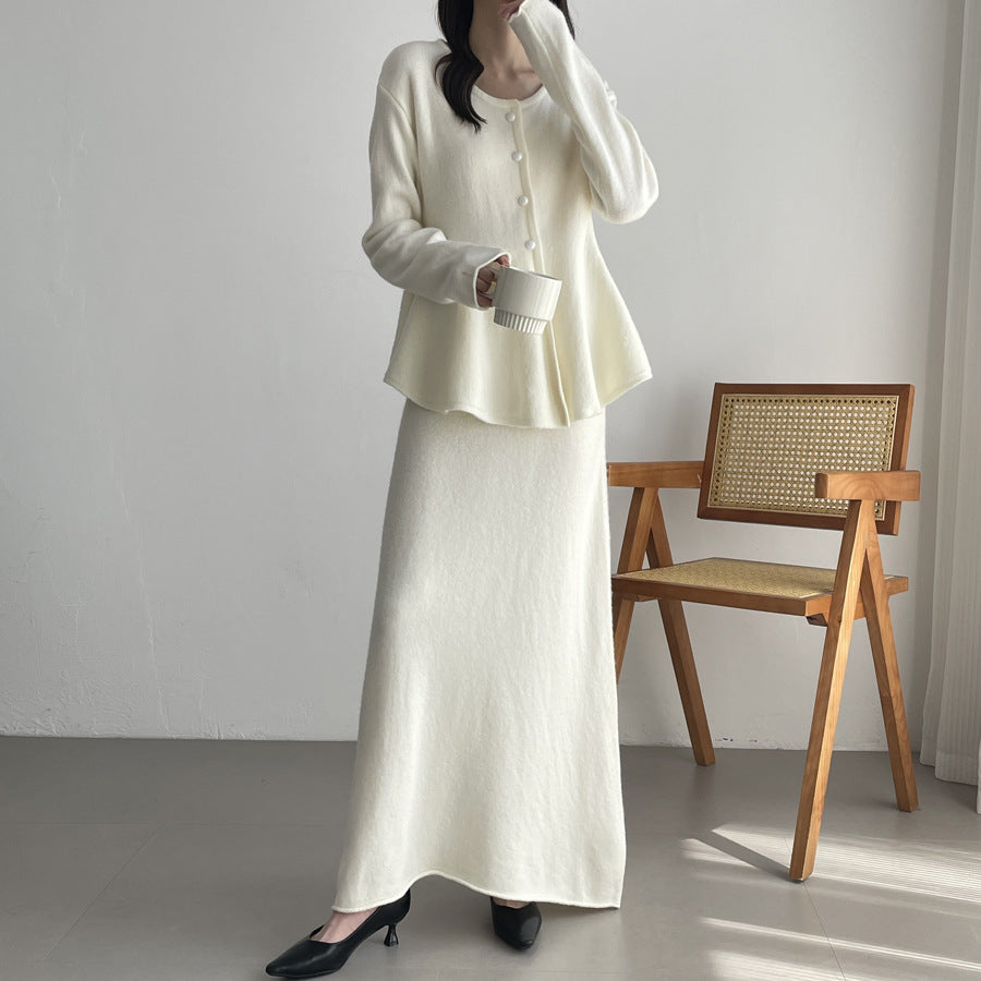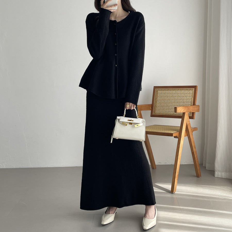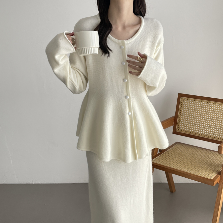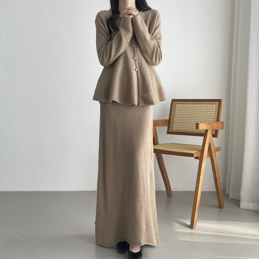 【セットアップ】春 秋 冬 ニットカーディガン + フロア丈 ロングスカート 2点上下セット 【SNシリーズ】