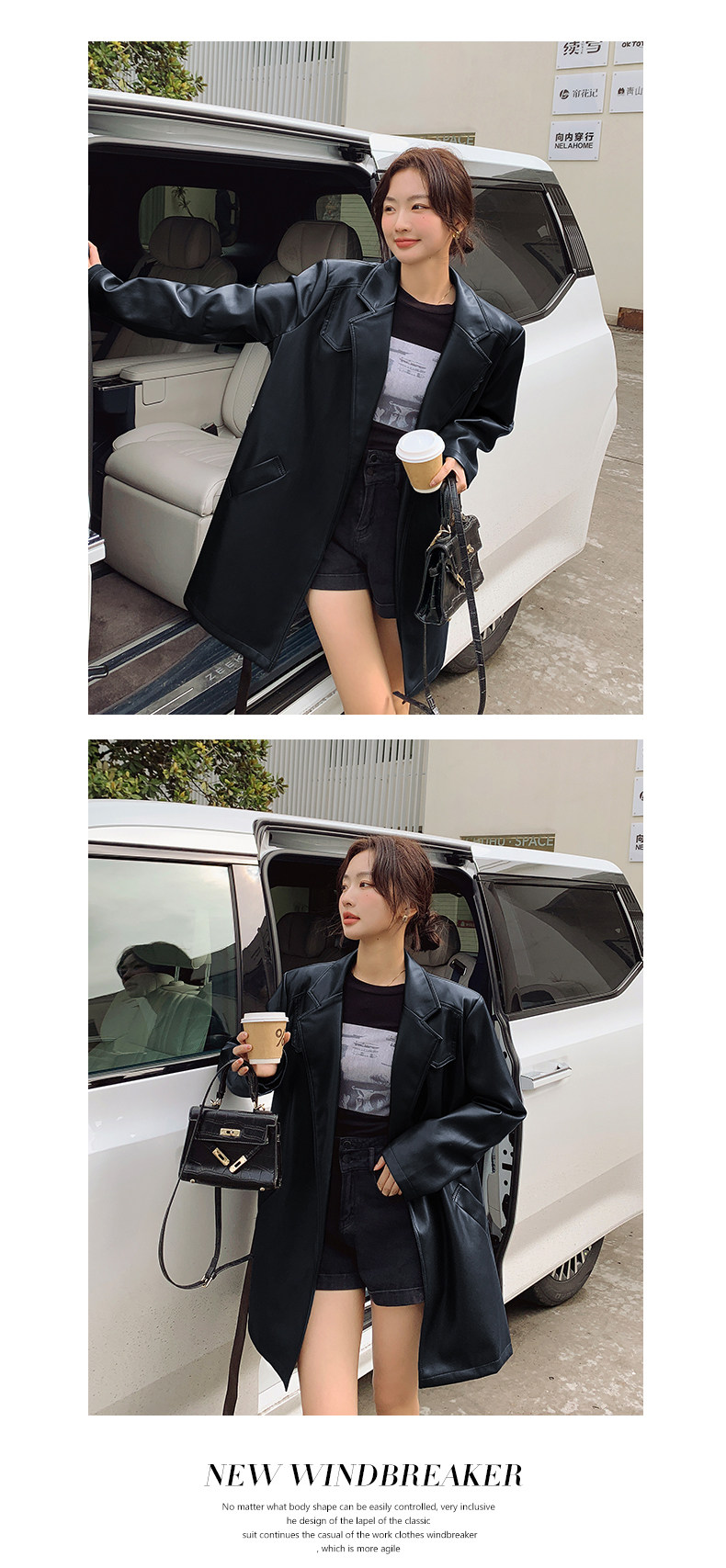 【商品名】【アウター】メラード PUレザージャケット 上質感 レトロ 上品 ミドル丈【JZシリーズ】