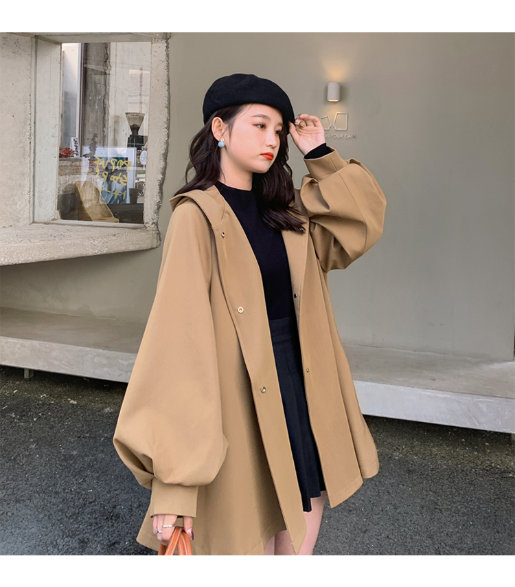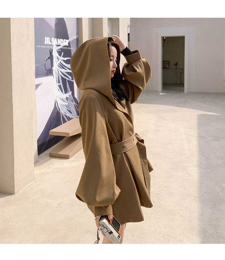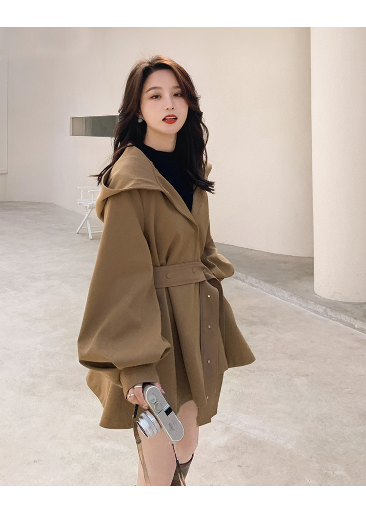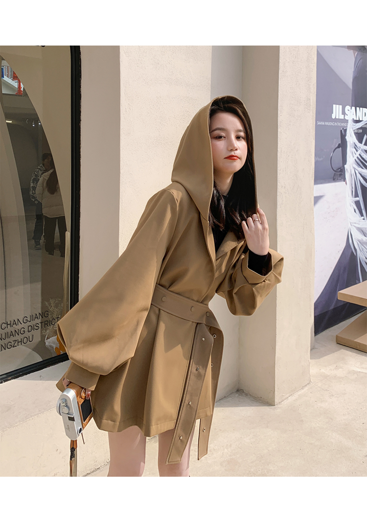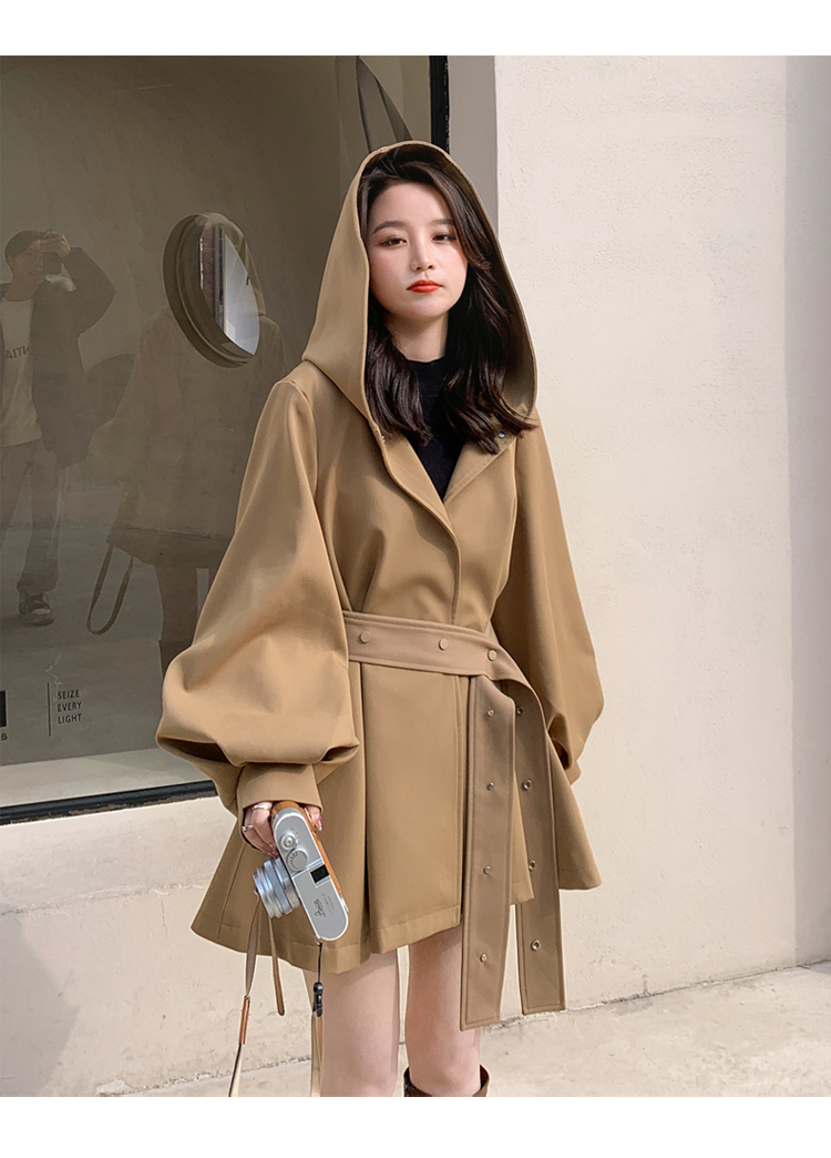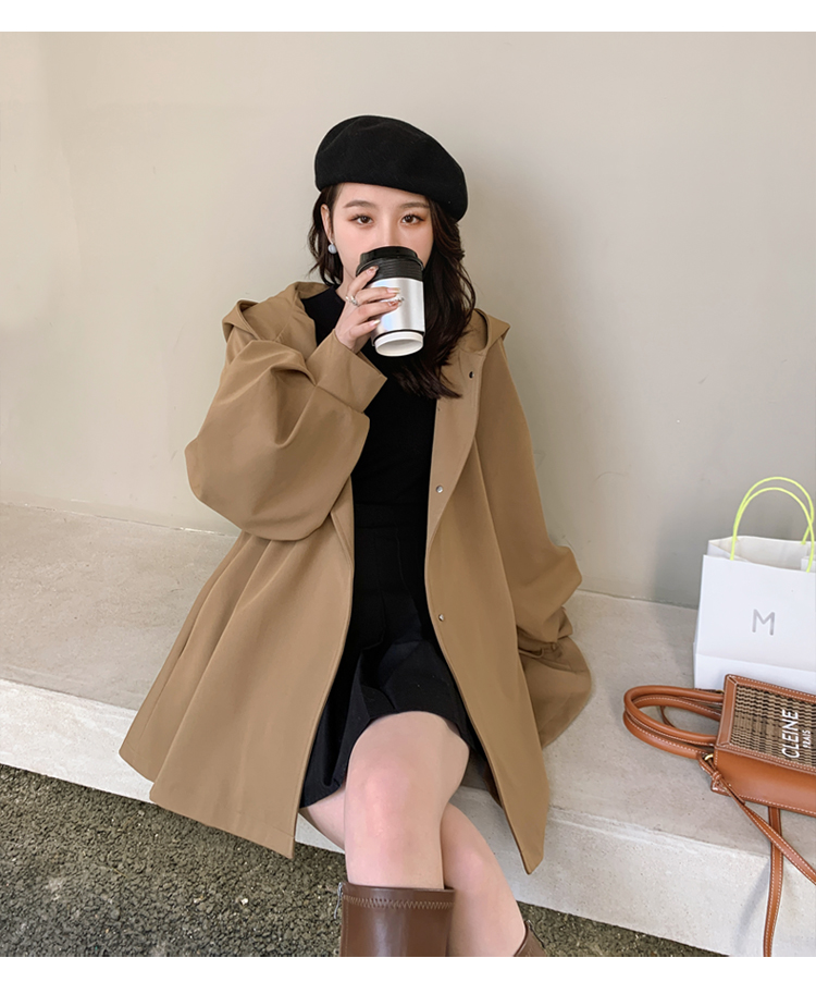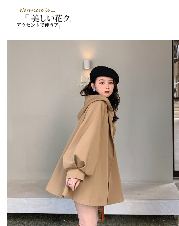 【商品名】【アウター】独特なデザイン感 カーキ カジュアル フード付き トレンチコート レディース 超人気 おしゃれ ミドル丈 コート【JZシリーズ】