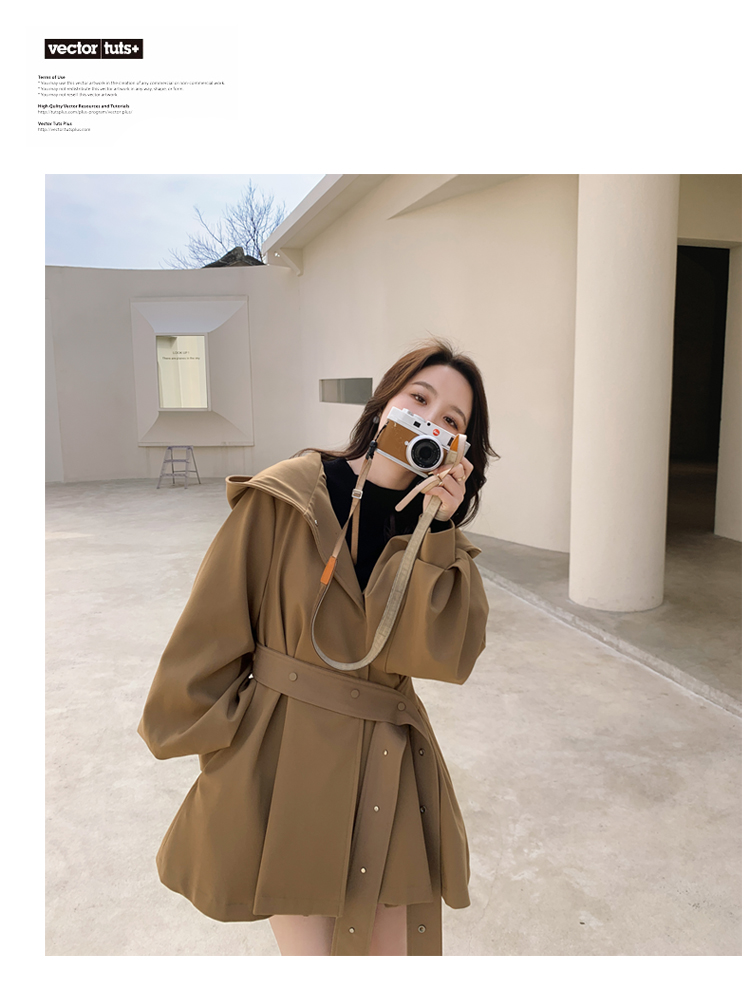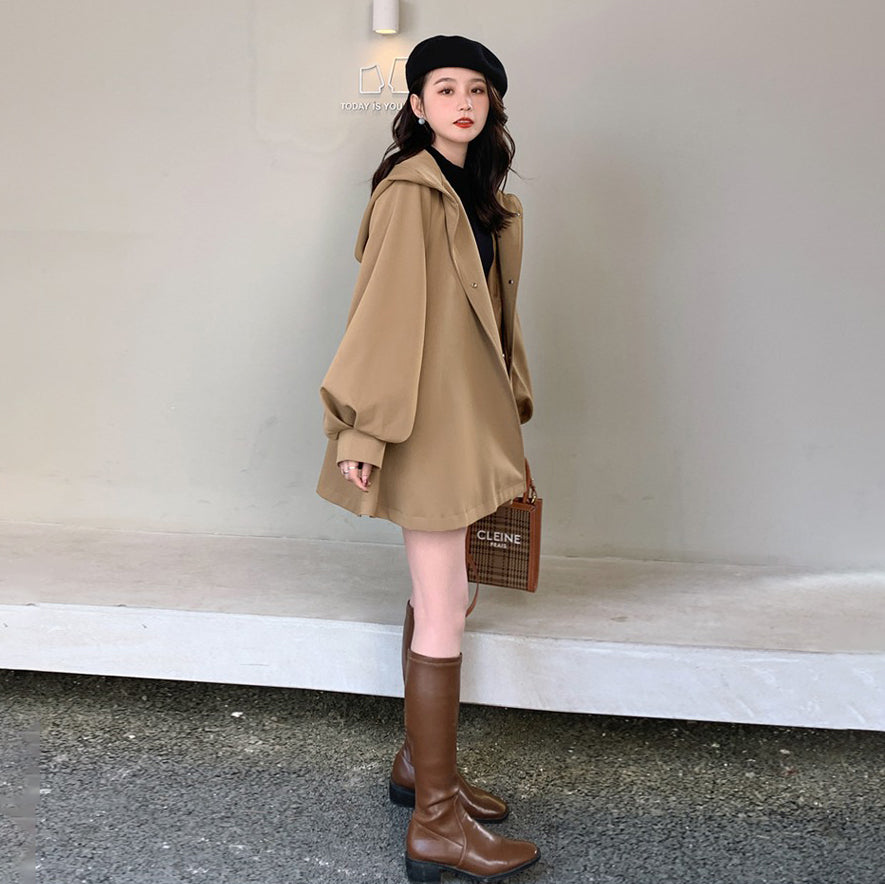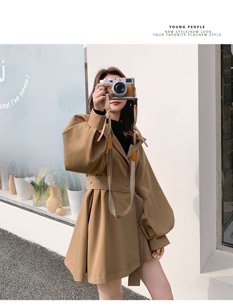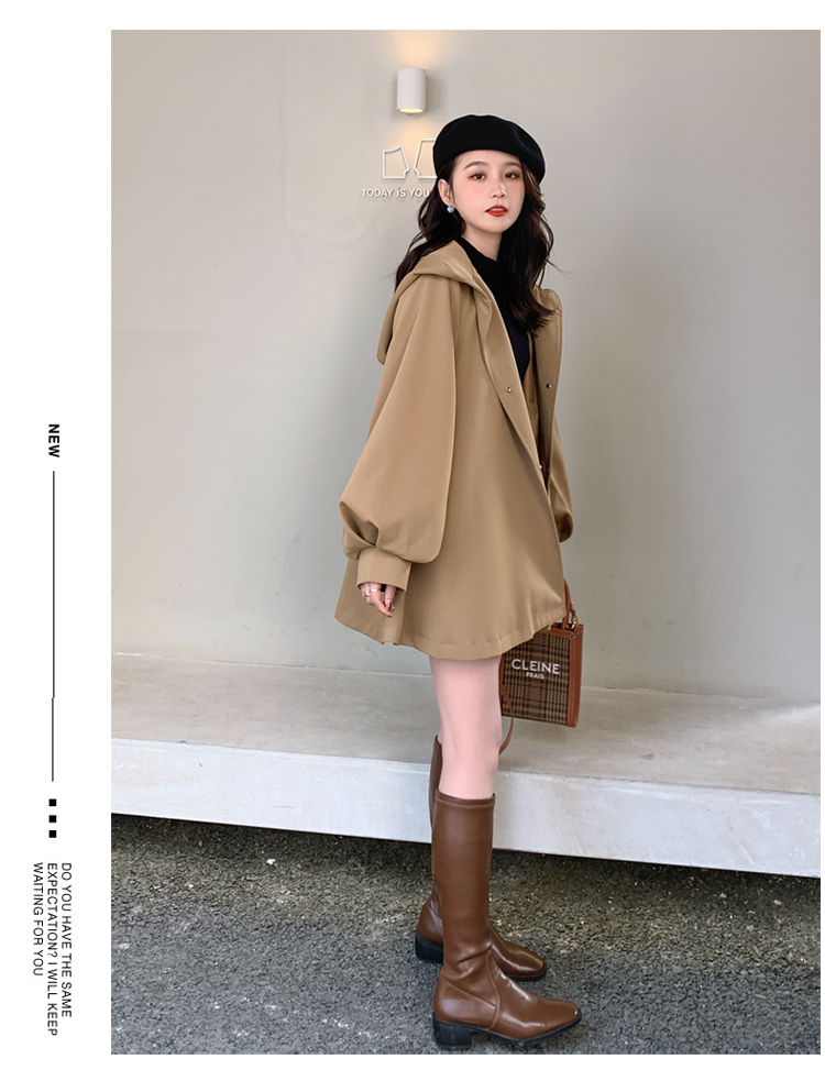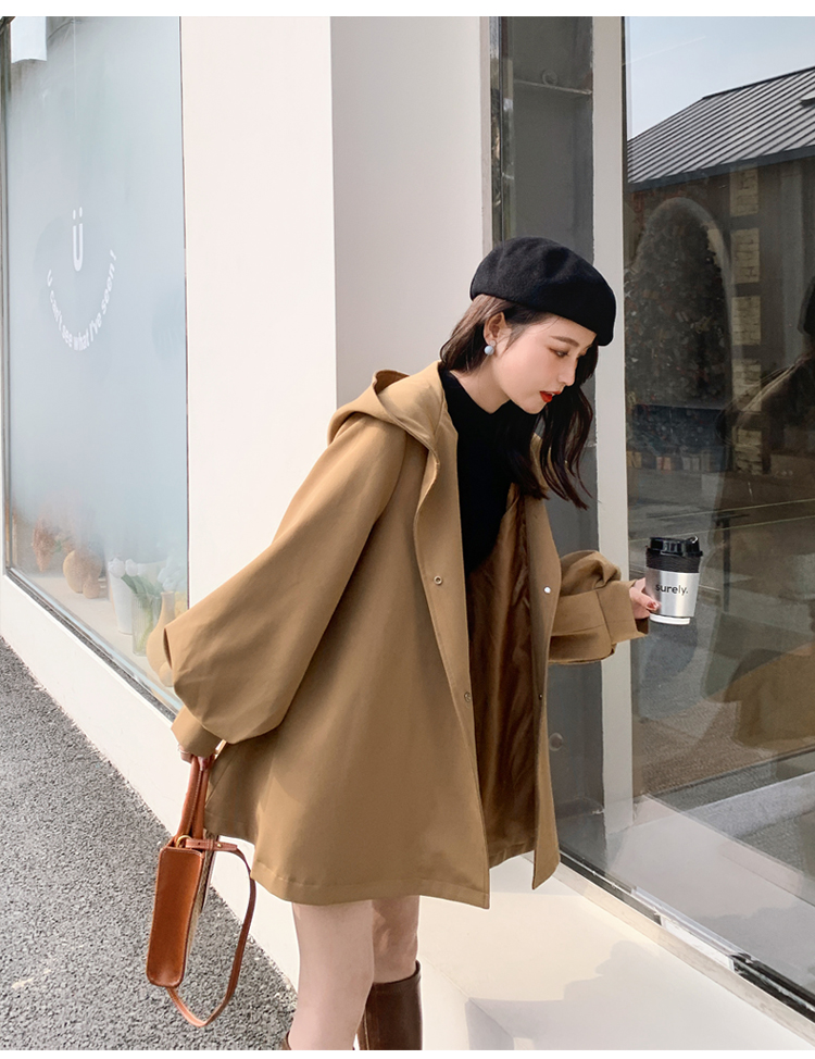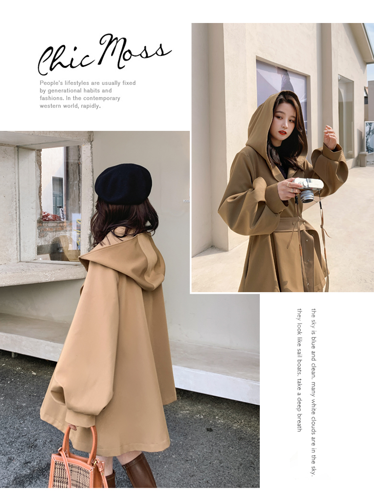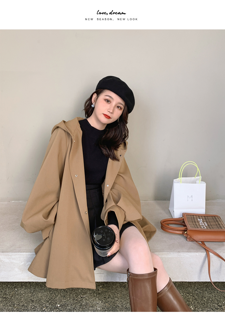 【商品名】【アウター】独特なデザイン感 カーキ カジュアル フード付き トレンチコート レディース 超人気 おしゃれ ミドル丈 コート【JZシリーズ】