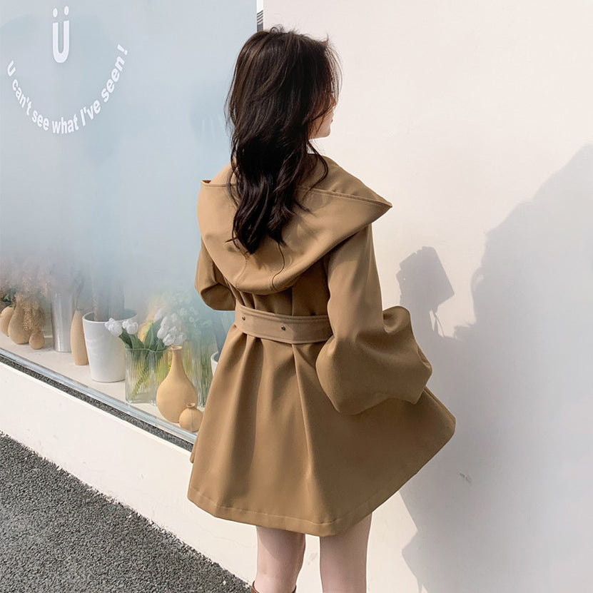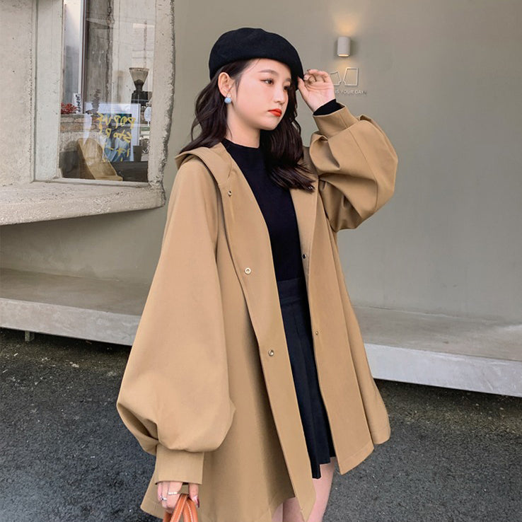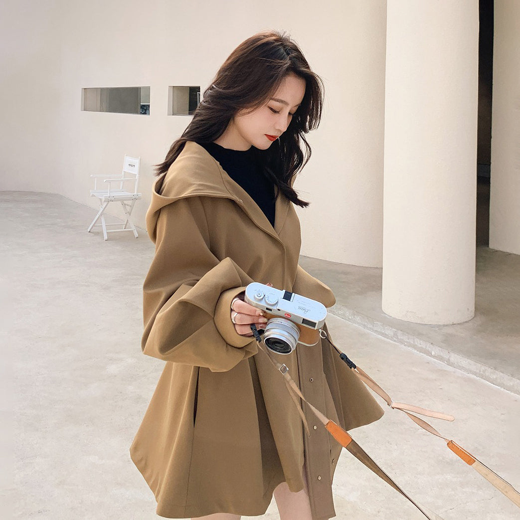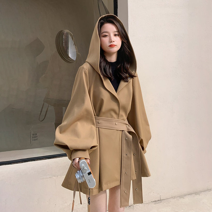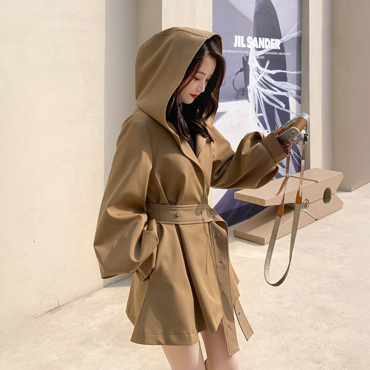 【アウター】独特なデザイン感 カーキ カジュアル フード付き トレンチコート レディース 超人気 おしゃれ ミドル丈 コート【JZシリーズ】
