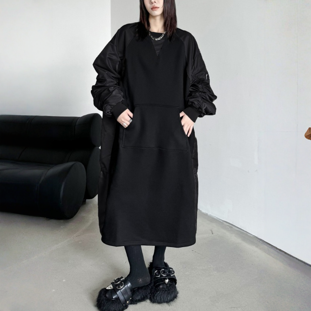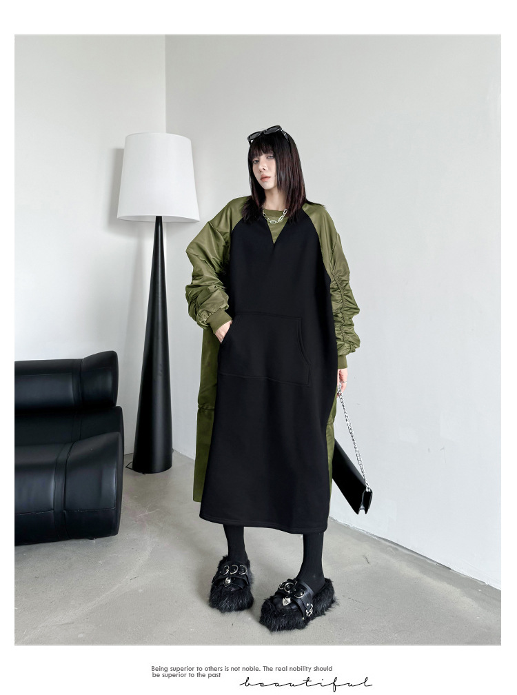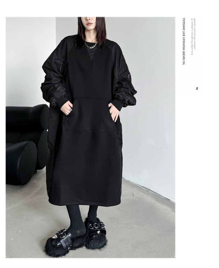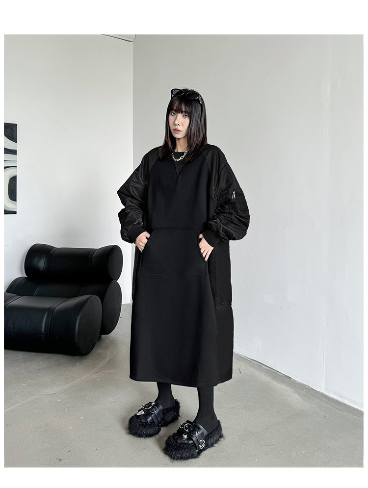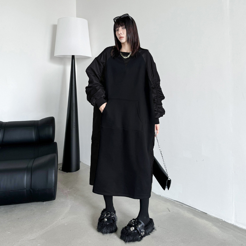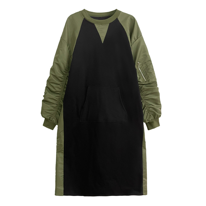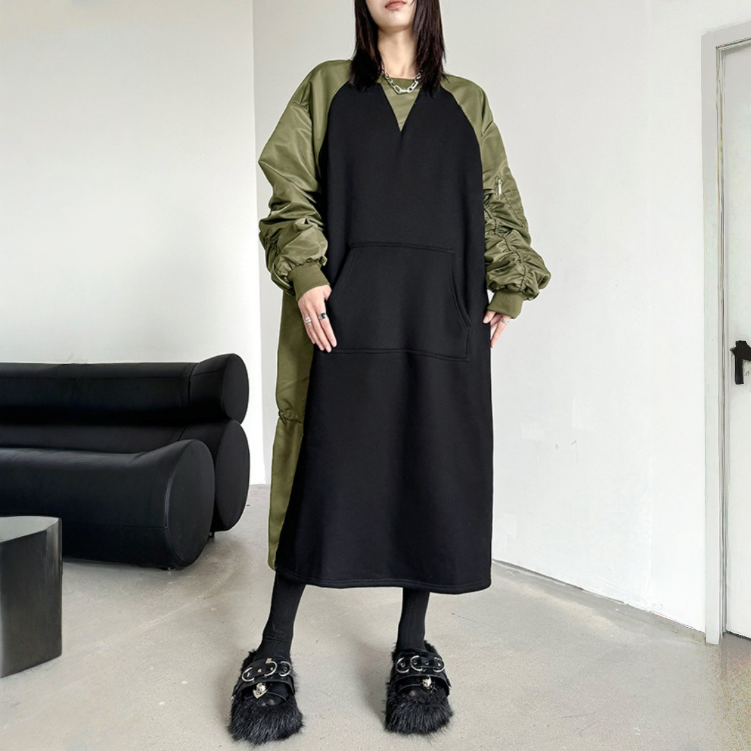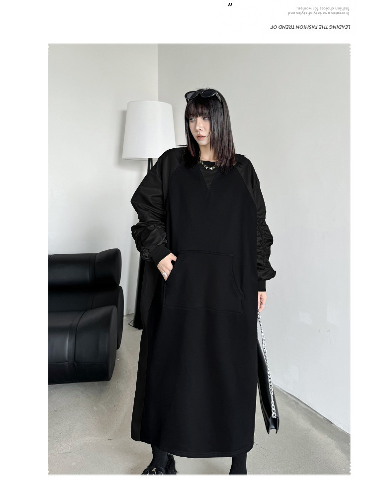 【商品名】【ワンピース】春 秋 冬 クルーネック プリーツ配色切替 長袖 ワンピース 【AHシリーズ】