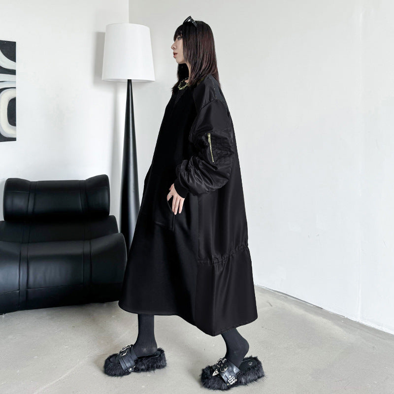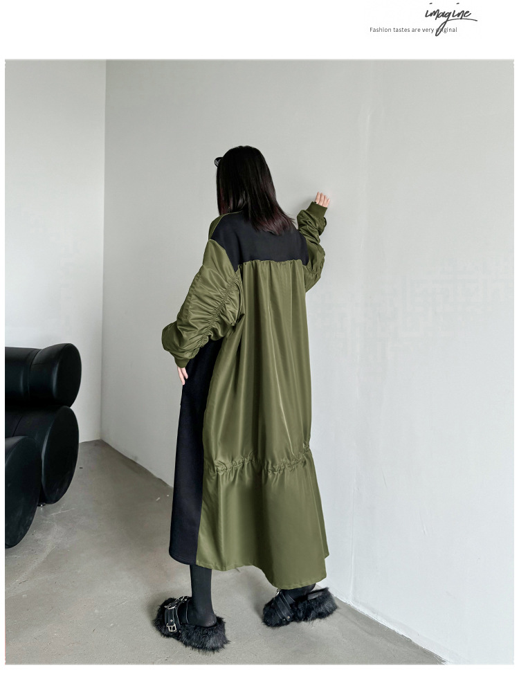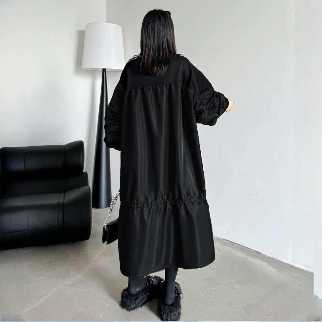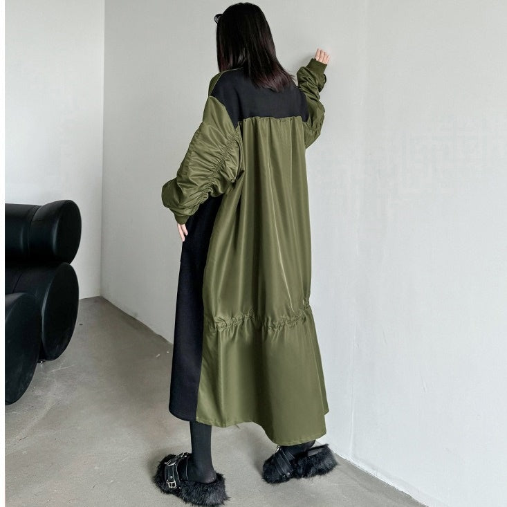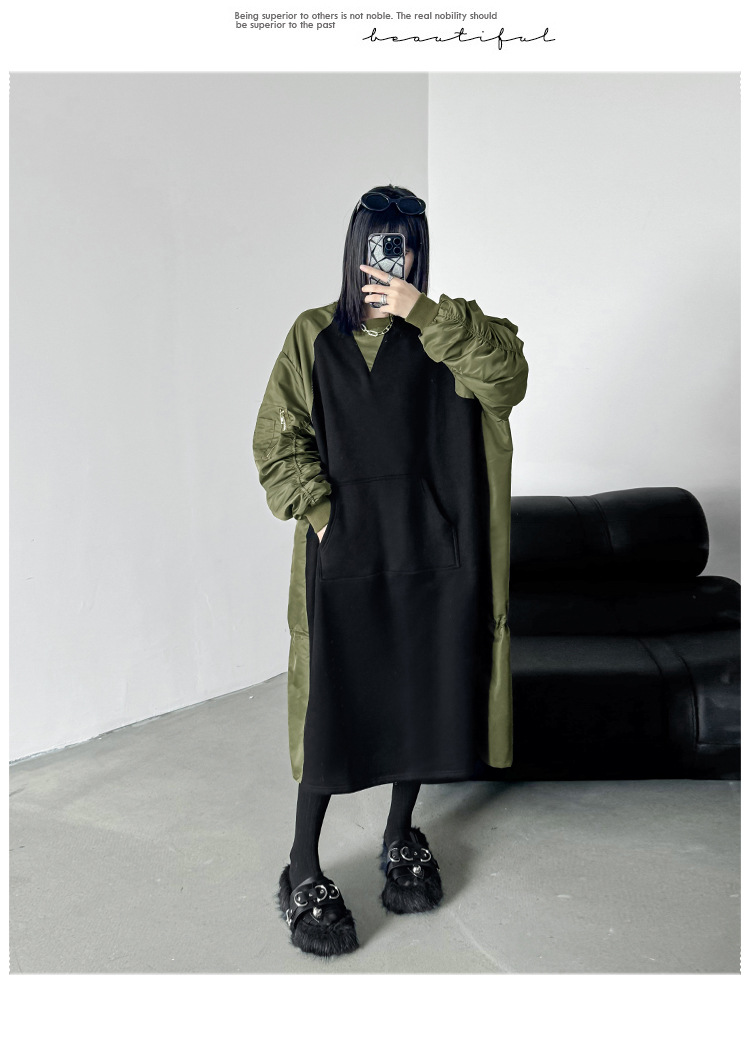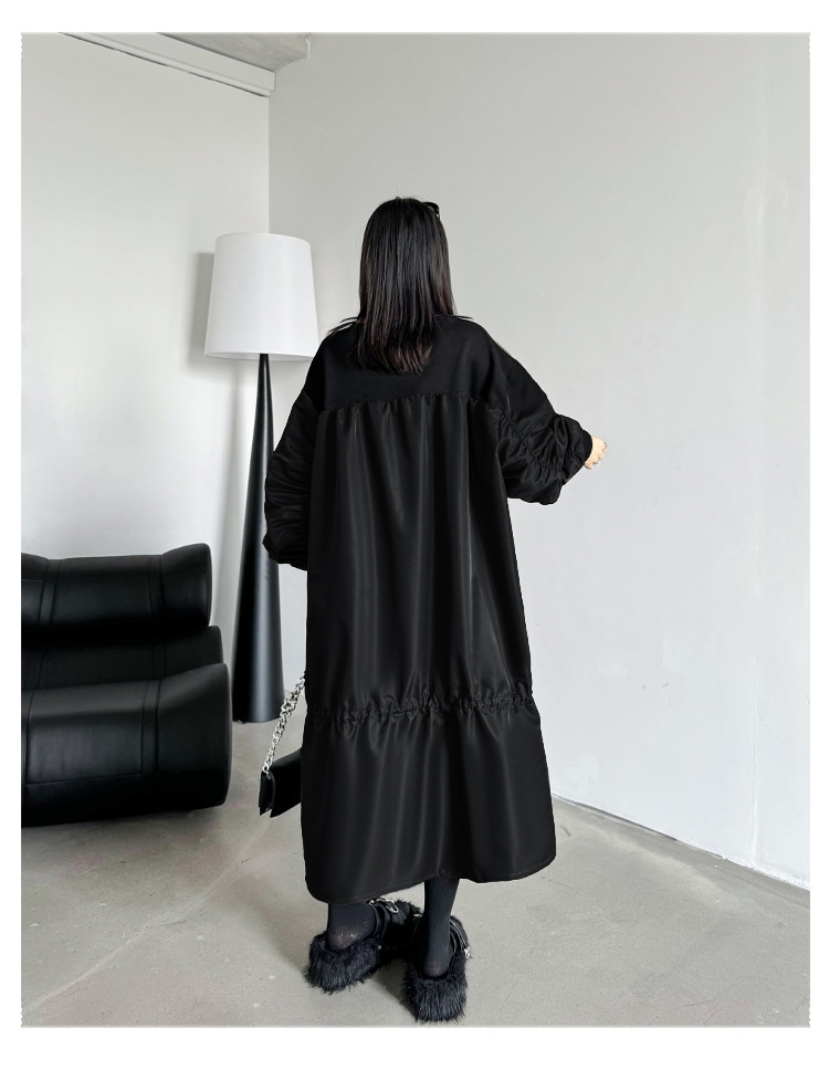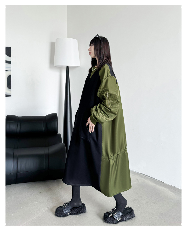 【商品名】【ワンピース】春 秋 冬 クルーネック プリーツ配色切替 長袖 ワンピース 【AHシリーズ】