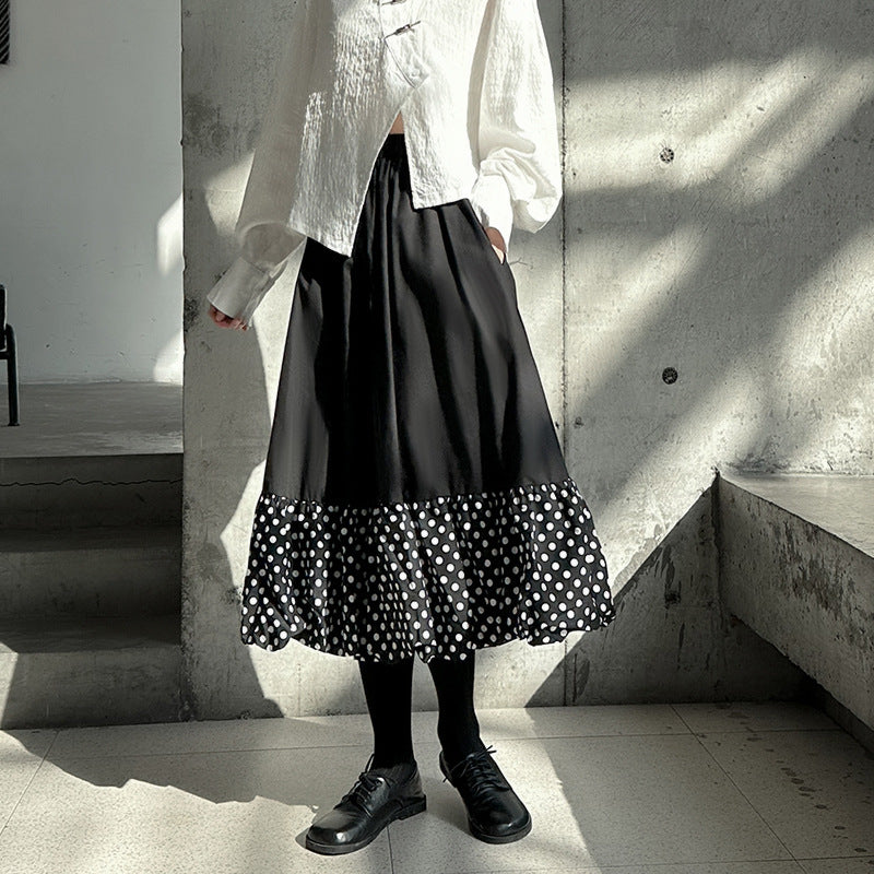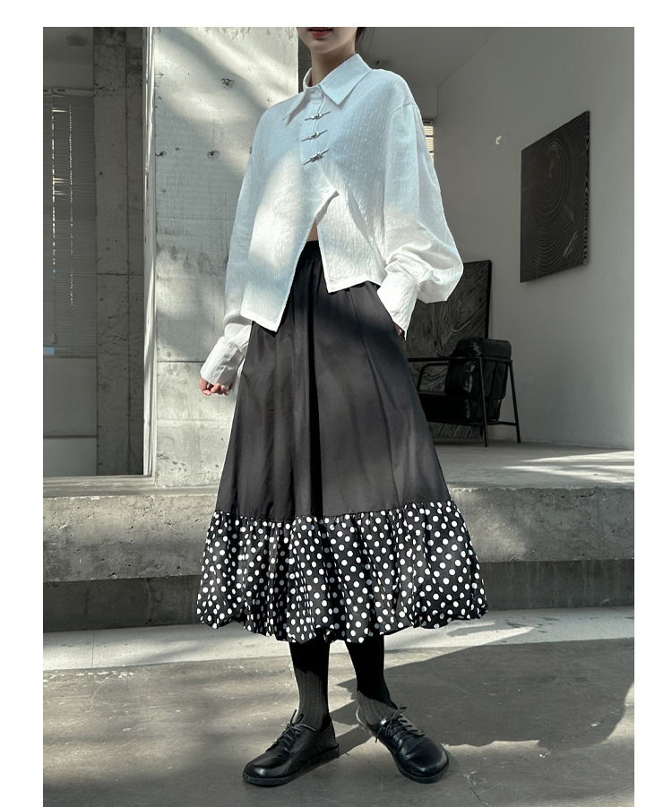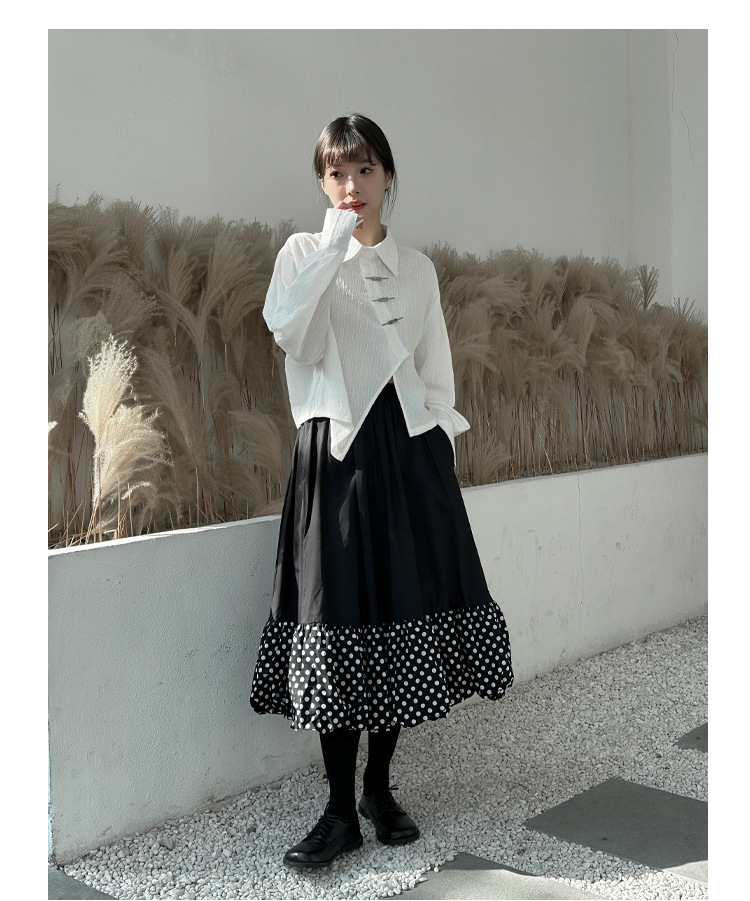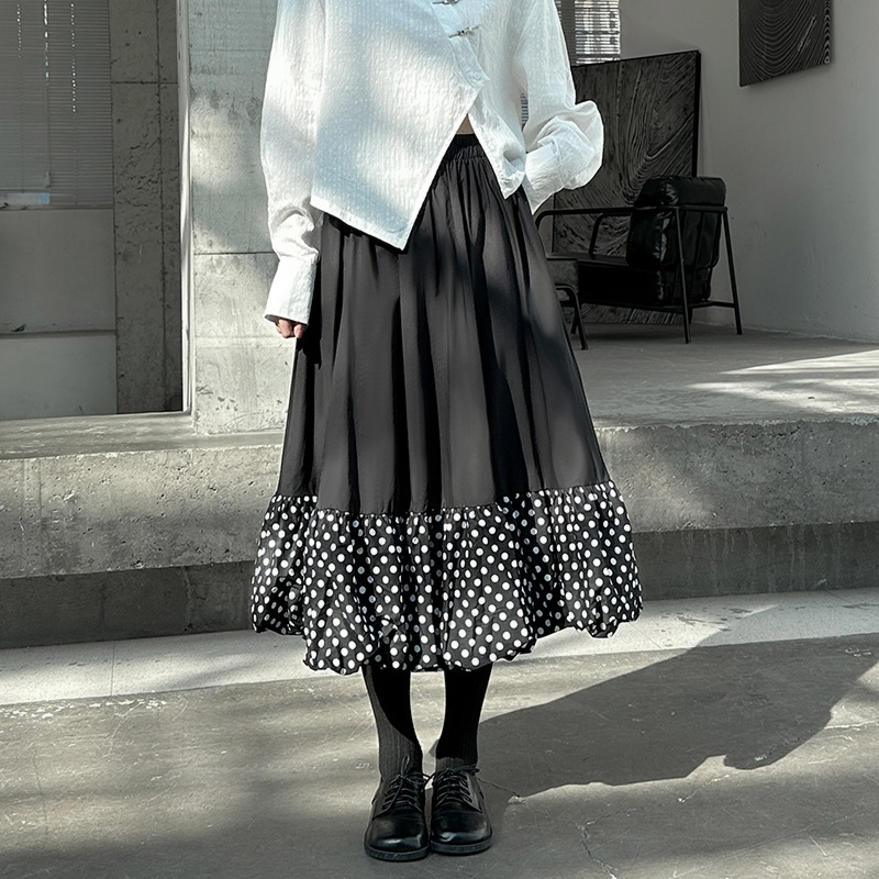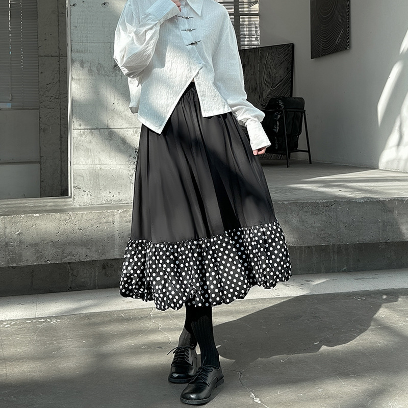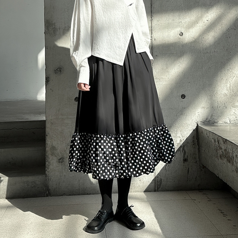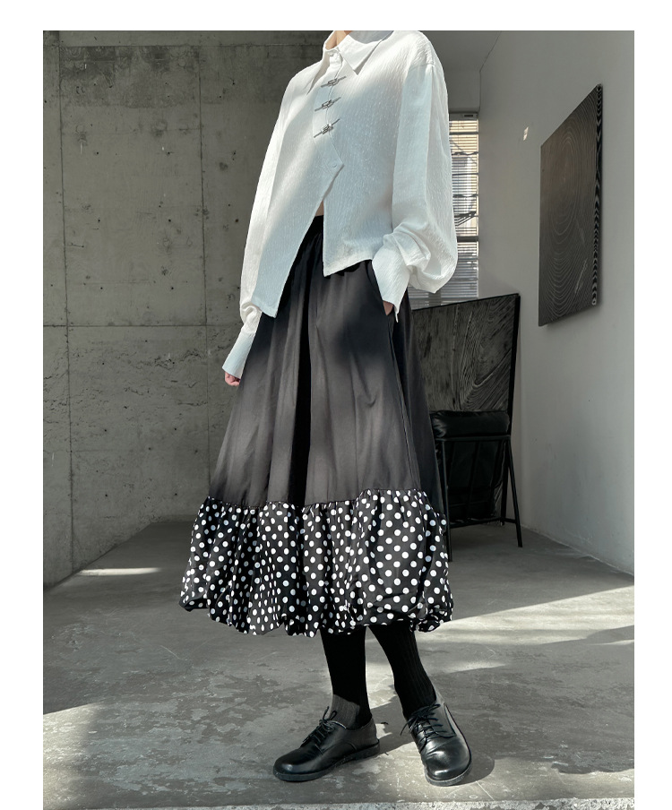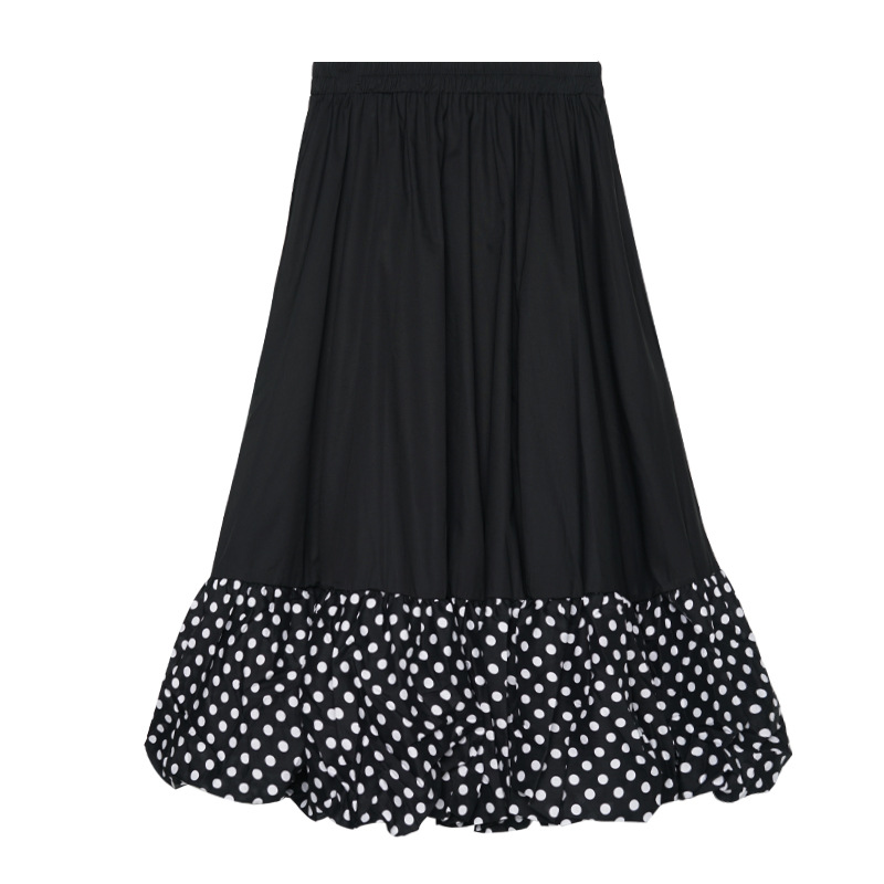 【ボトムス】春 秋 冬 ウエストゴム バルーン裾 ドット切り替え Aライン スカート 【AHシリーズ】
