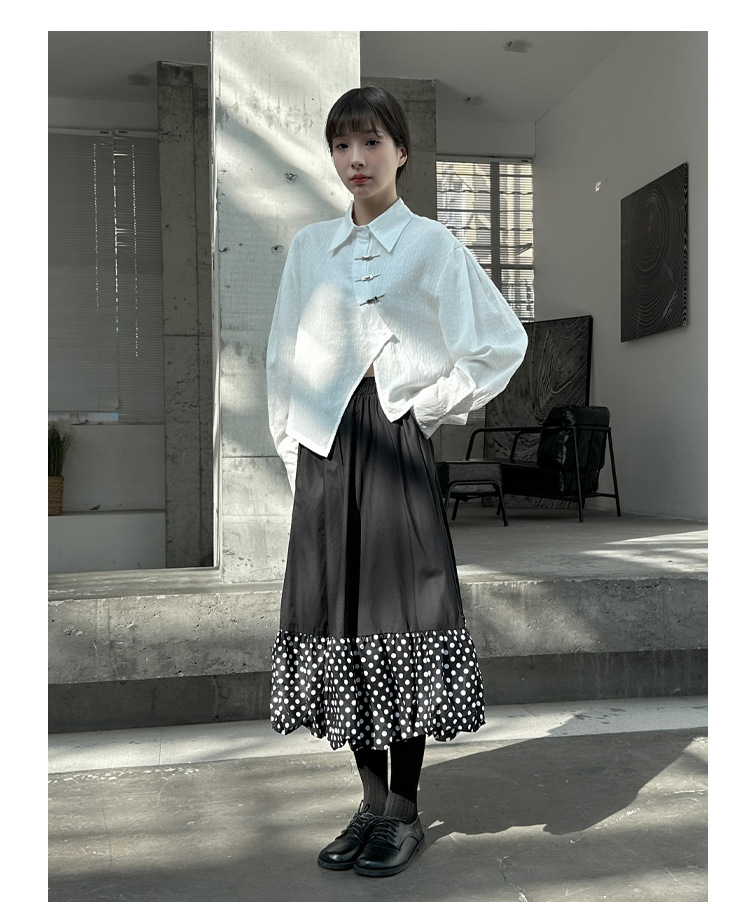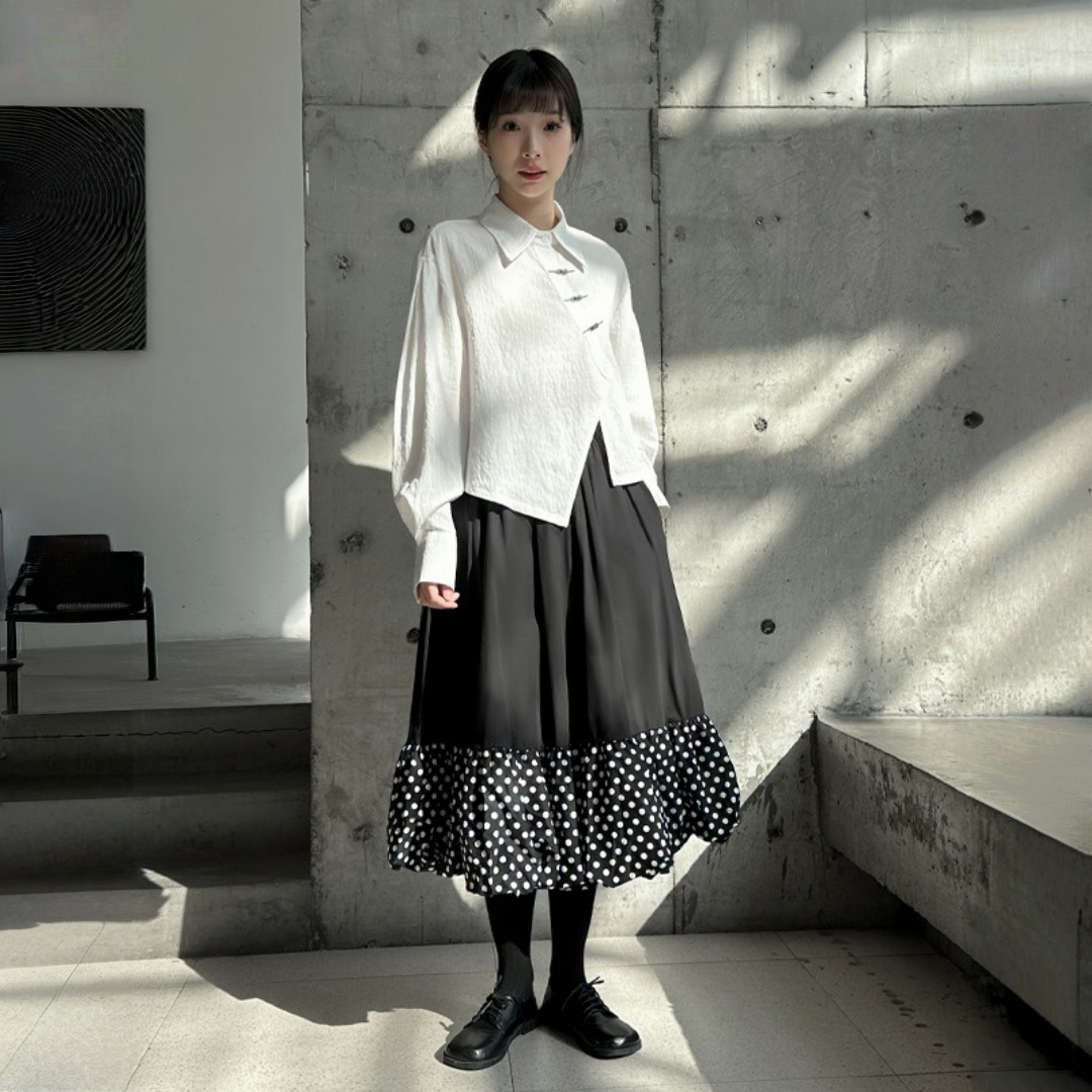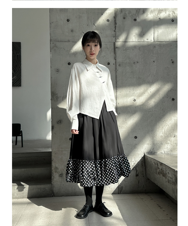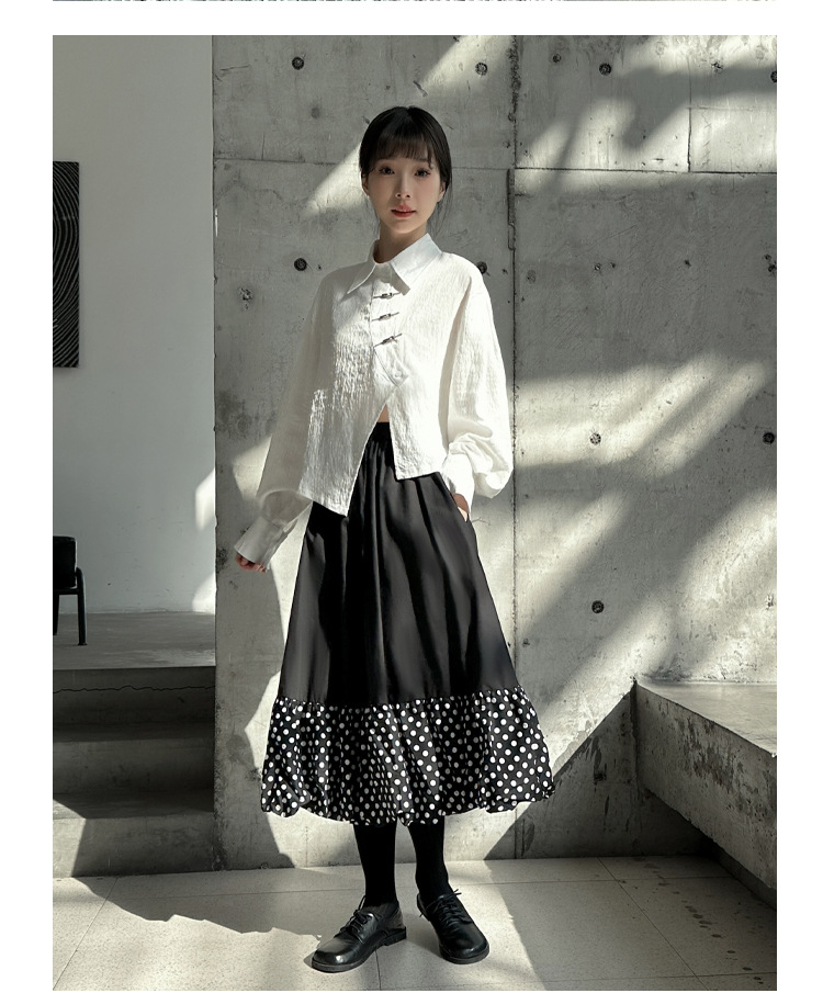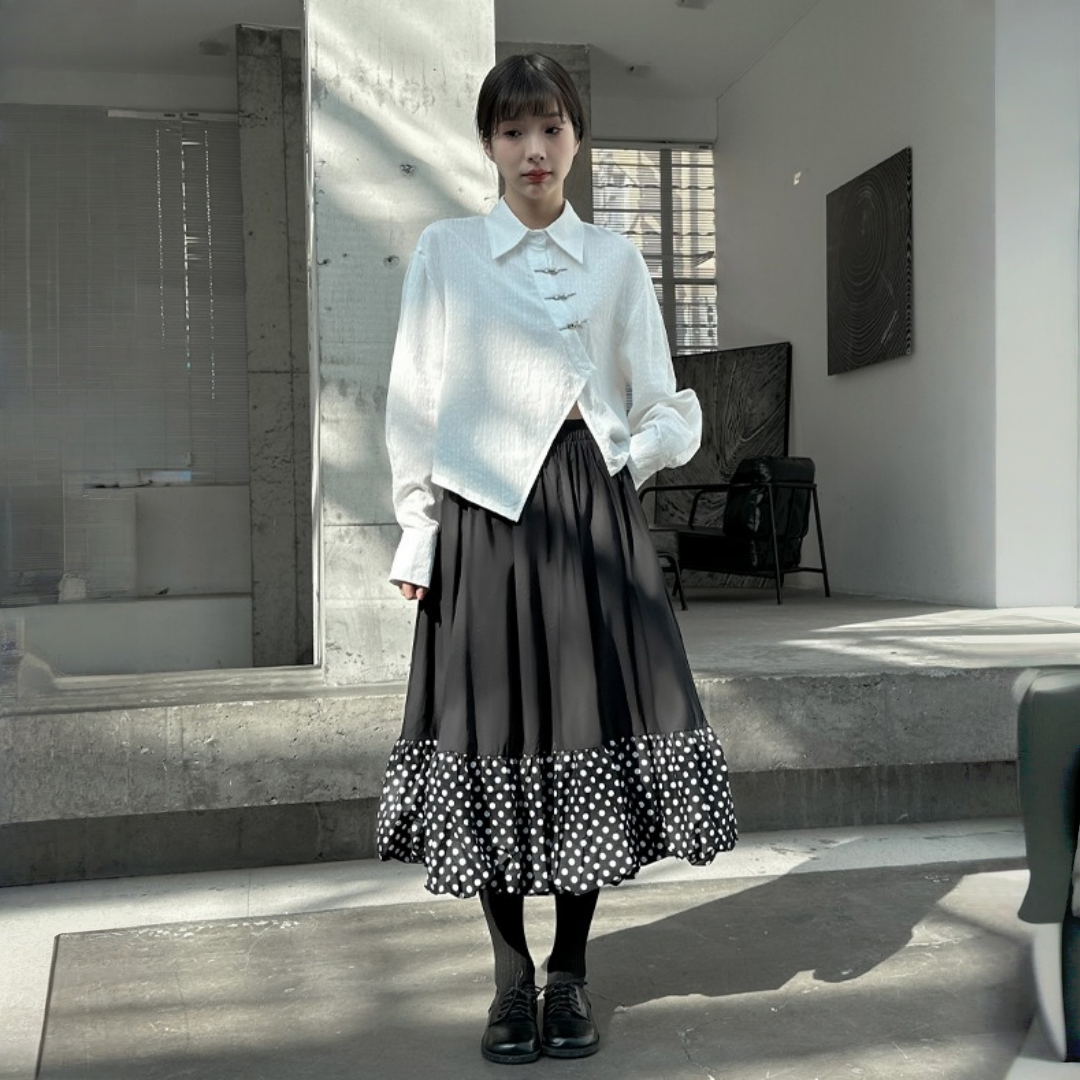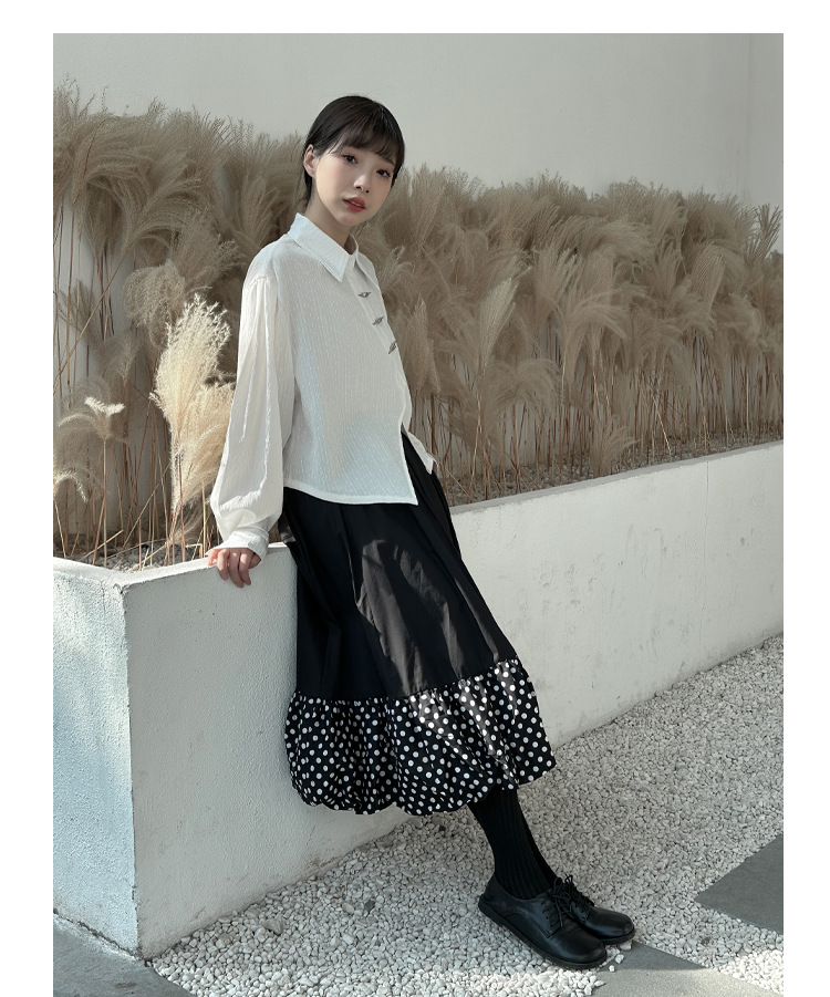 【ボトムス】春 秋 冬 ウエストゴム バルーン裾 ドット切り替え Aライン スカート 【AHシリーズ】