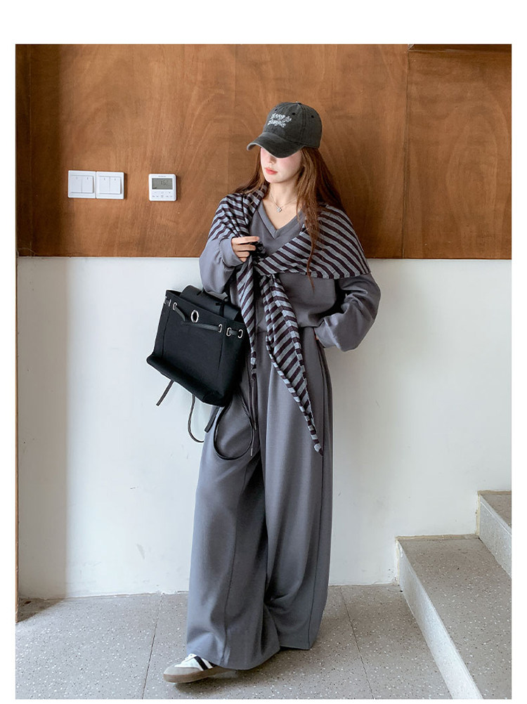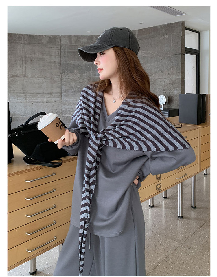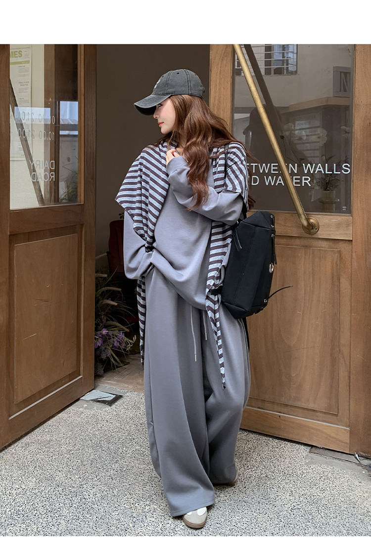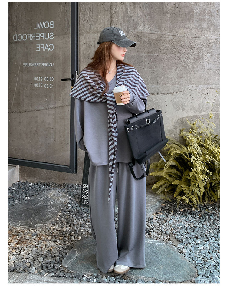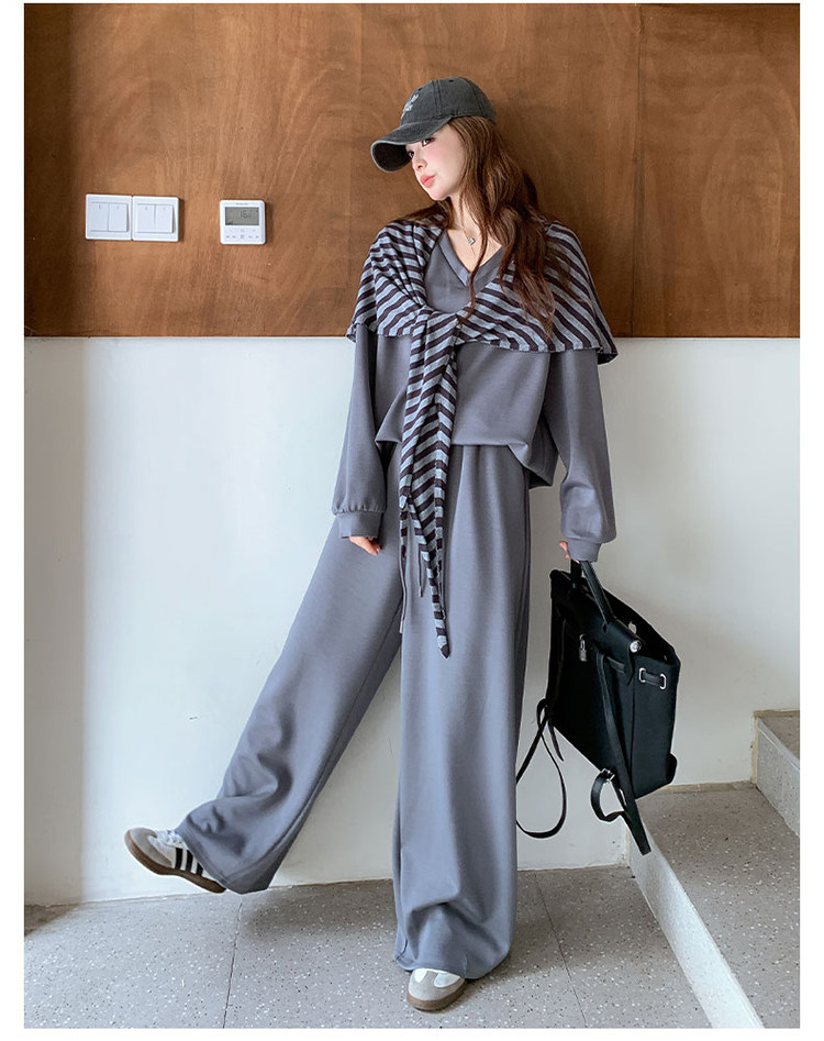 2点セット+ショール付き!【セットアップ】レトロゆるカジュアル風 レディース 春秋新作 韓国風 リラックス感 スウェット +ワイドパンツ 上下セット【JZシリーズ】
