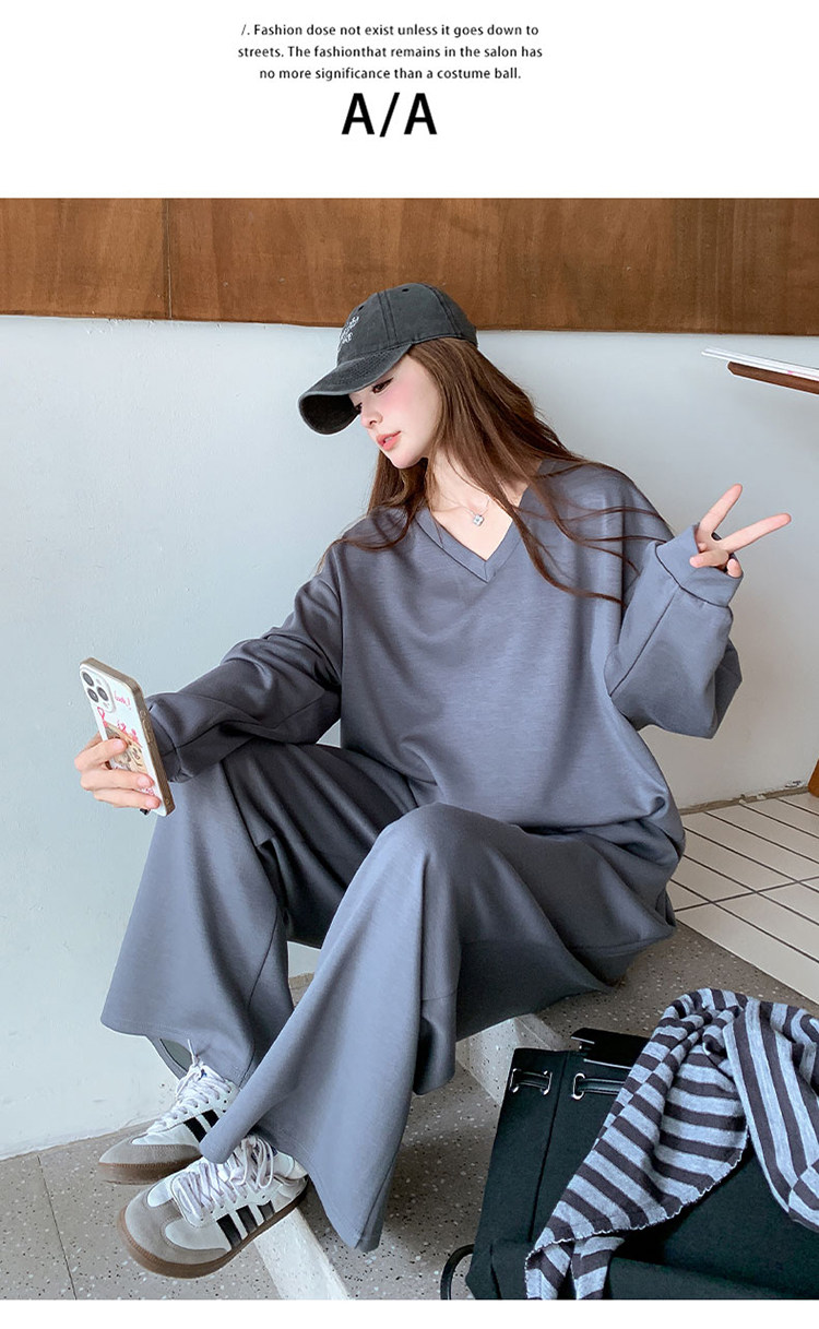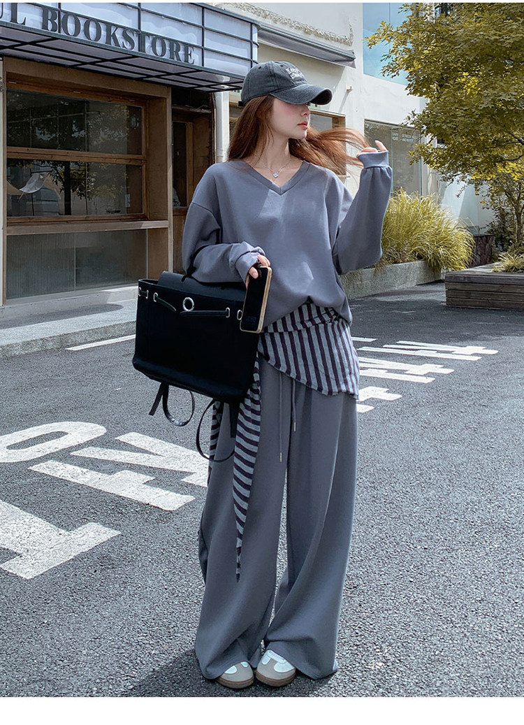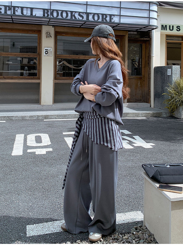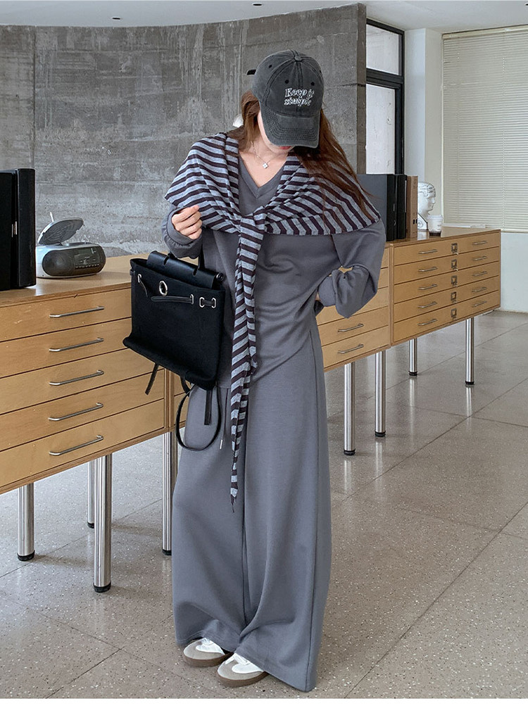2点セット+ショール付き!【セットアップ】レトロゆるカジュアル風 レディース 春秋新作 韓国風 リラックス感 スウェット +ワイドパンツ 上下セット【JZシリーズ】