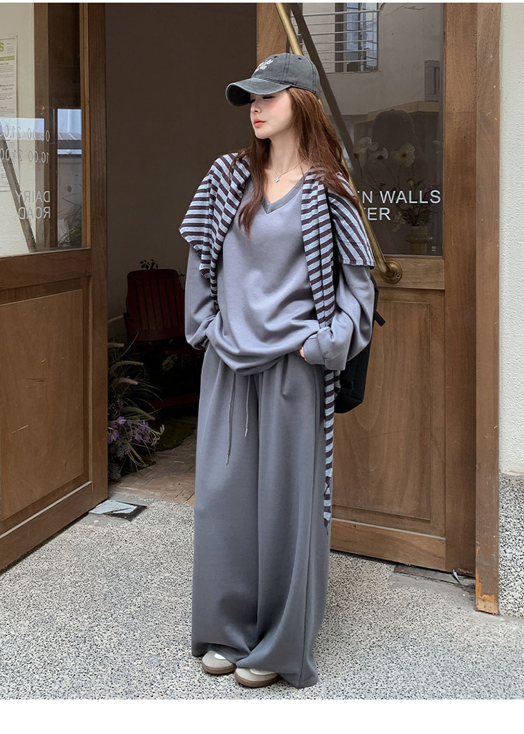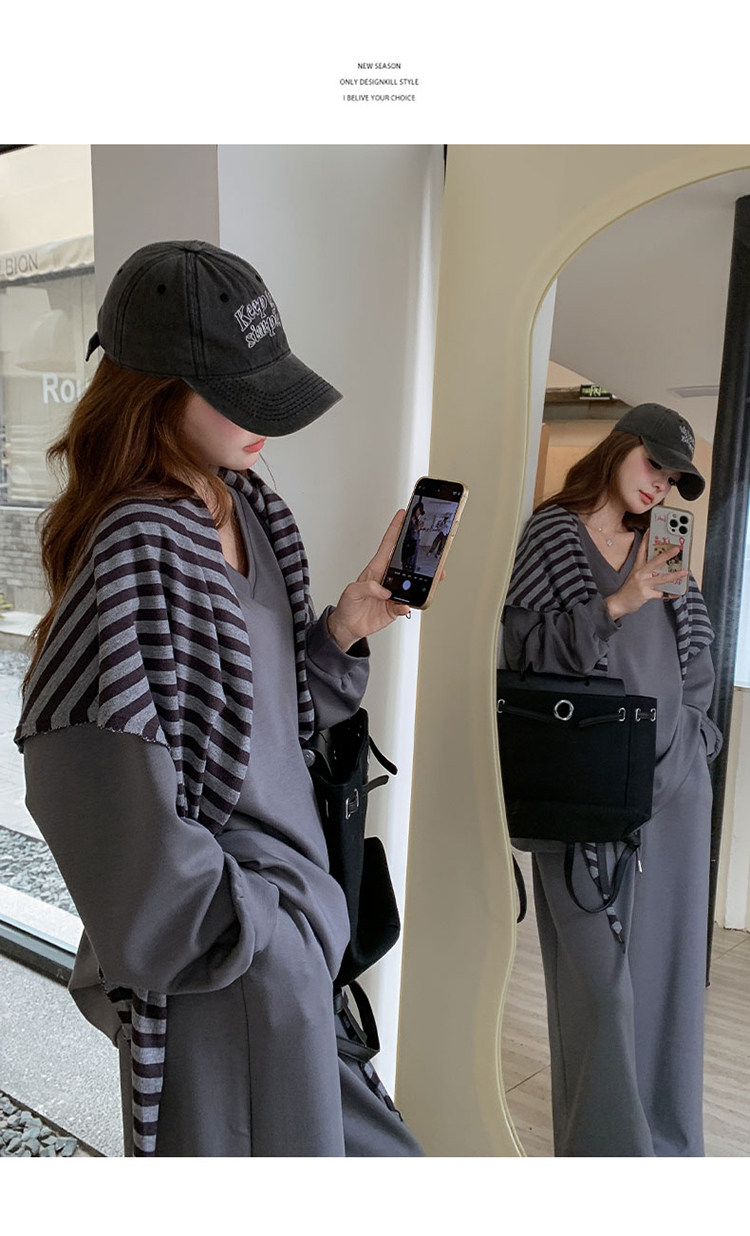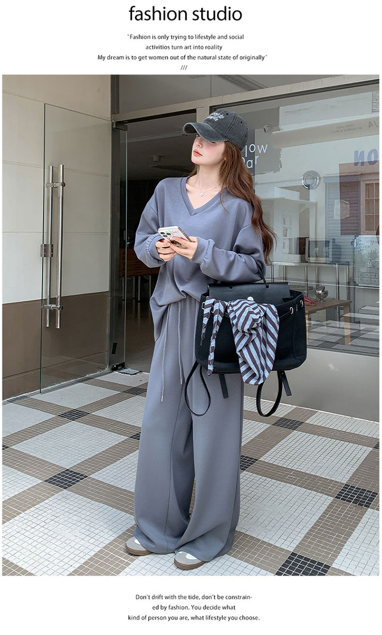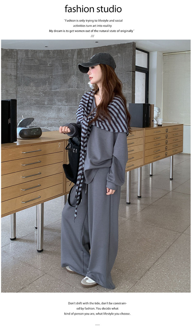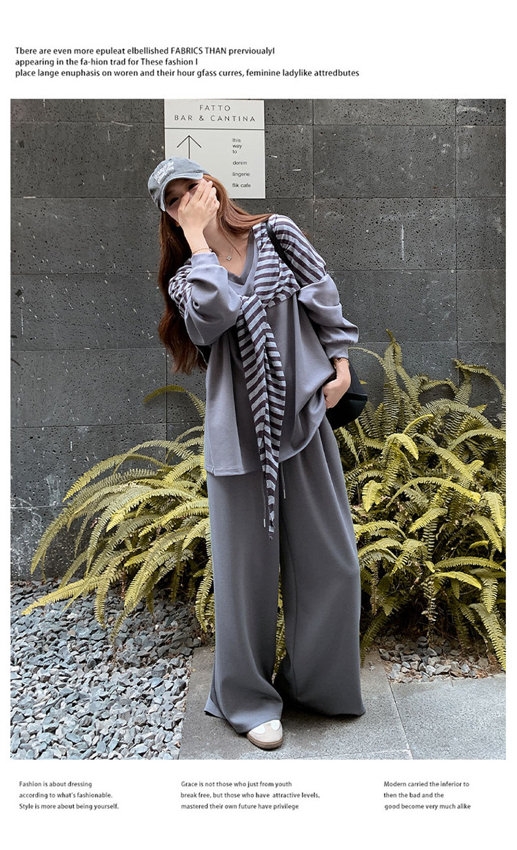 【商品名】2点セット+ショール付き!【セットアップ】レトロゆるカジュアル風 レディース 春秋新作 韓国風 リラックス感 スウェット +ワイドパンツ 上下セット【JZシリーズ】