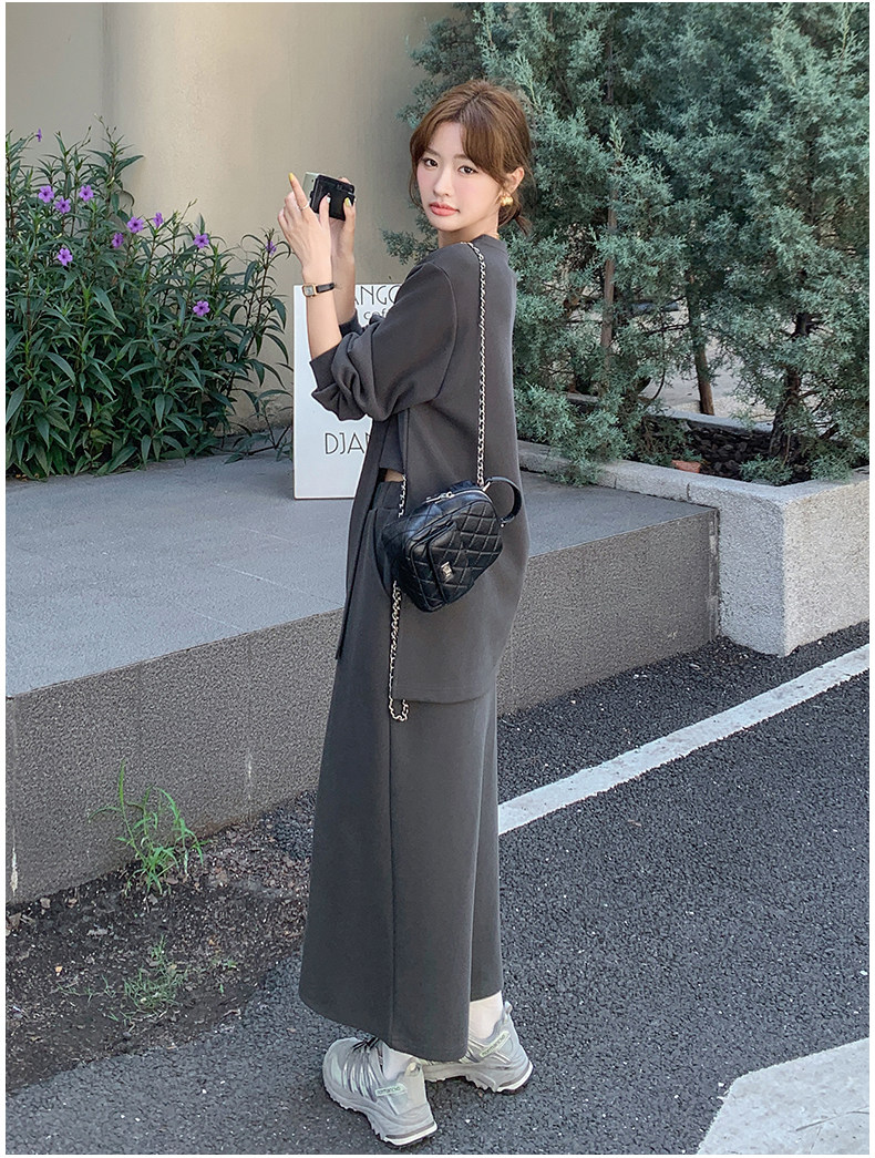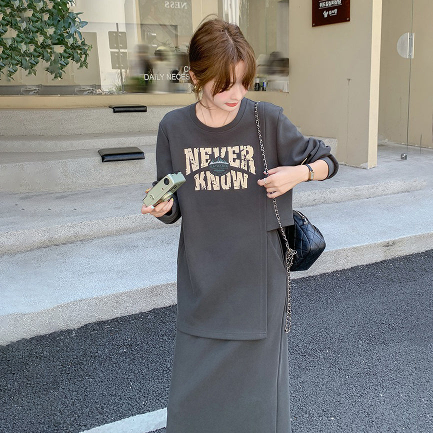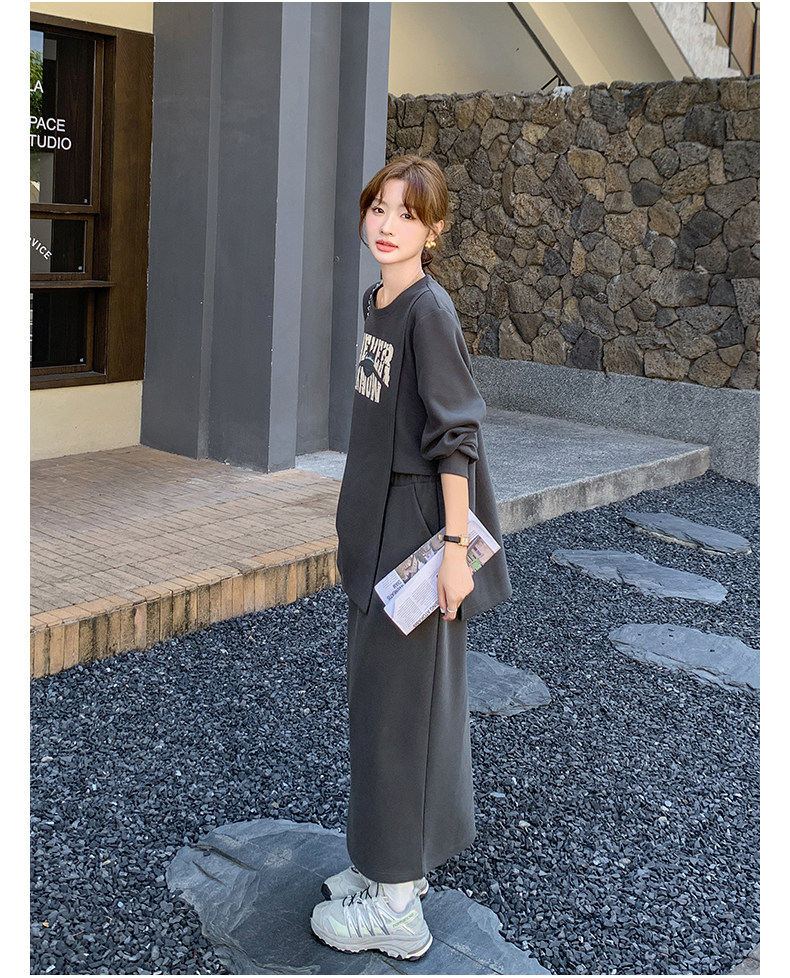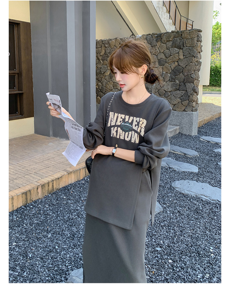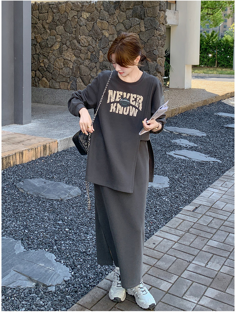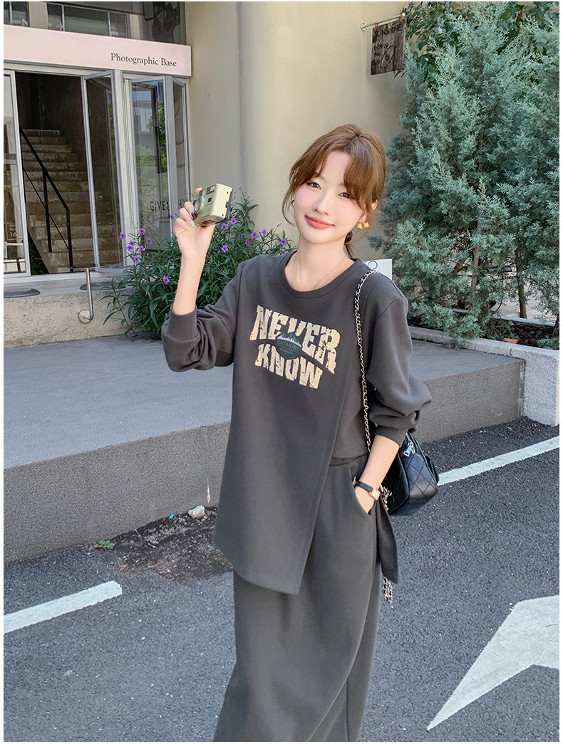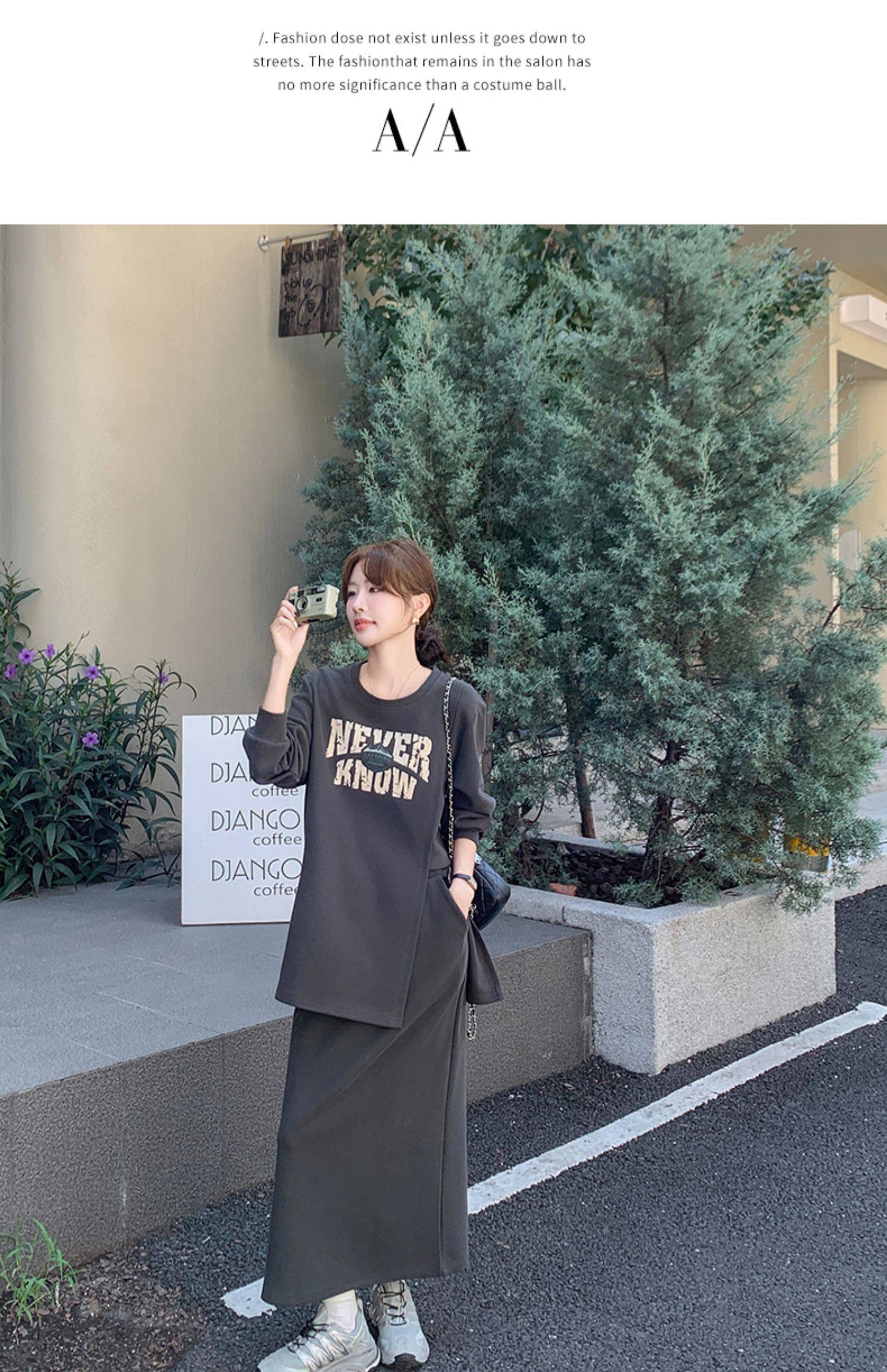2点セット!【セットアップ】韓国風 学院スタイル アシンメトリースウェット ロングスカートレディース 上下セット【JZシリーズ】