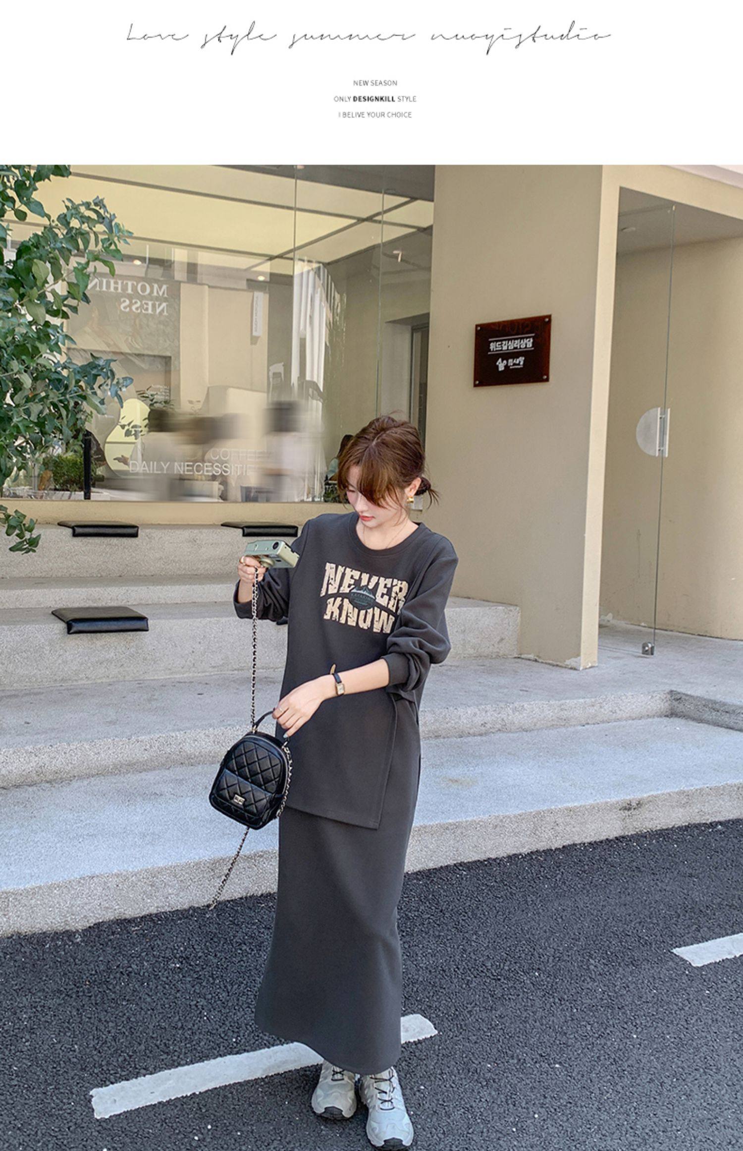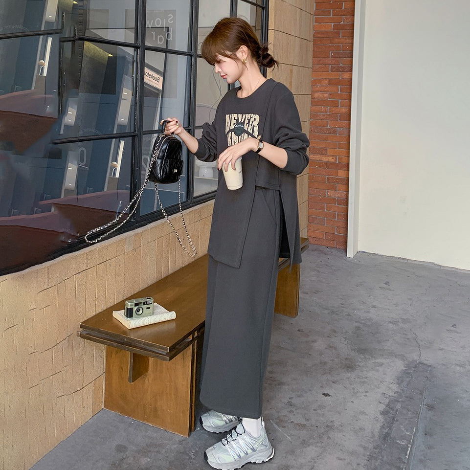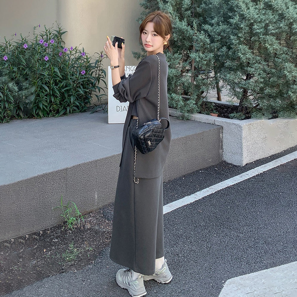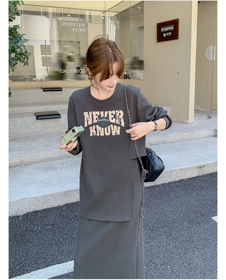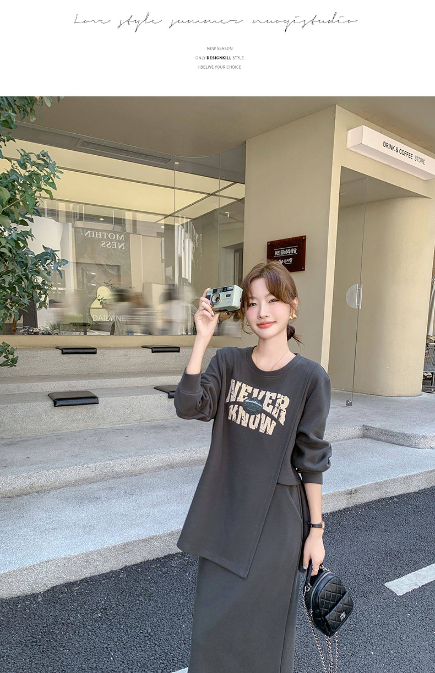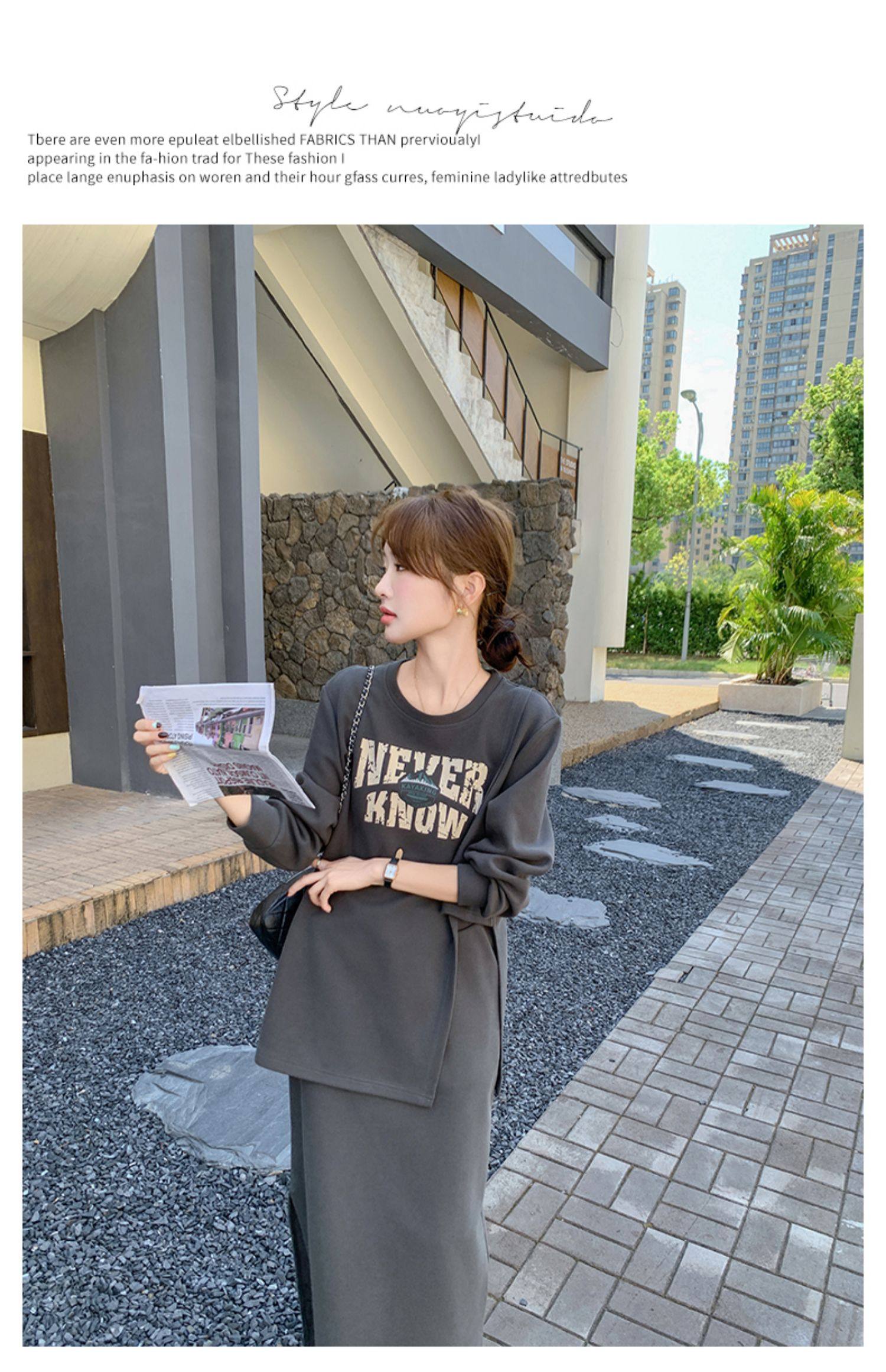 2点セット!【セットアップ】韓国風 学院スタイル アシンメトリースウェット ロングスカートレディース 上下セット【JZシリーズ】