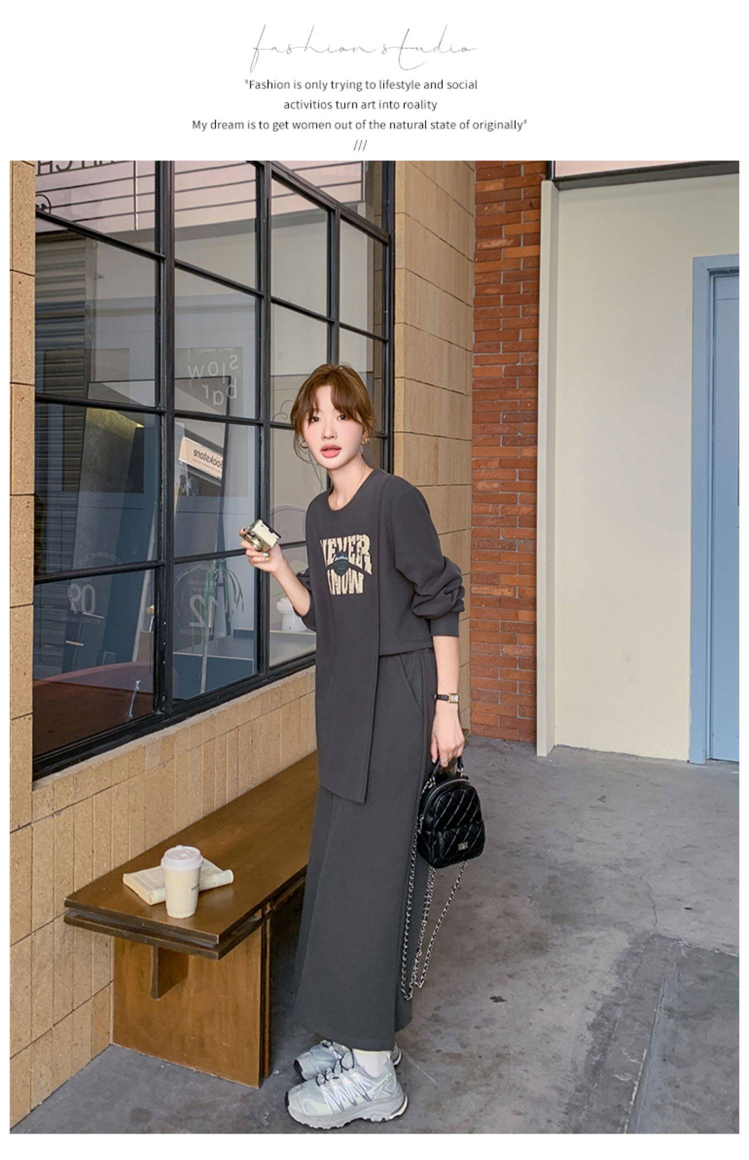 【商品名】2点セット!【セットアップ】韓国風 学院スタイル アシンメトリースウェット ロングスカートレディース 上下セット【JZシリーズ】