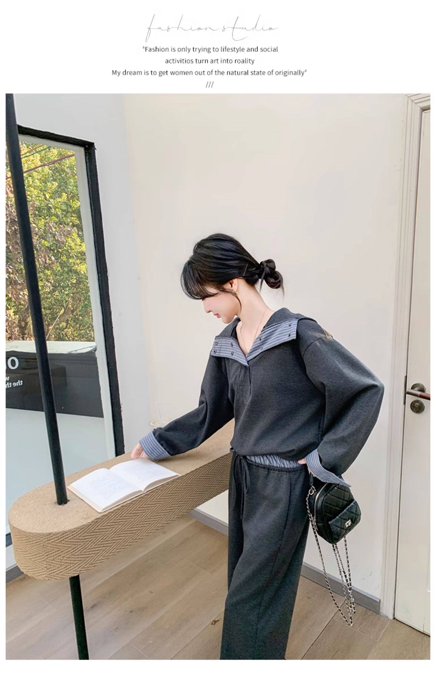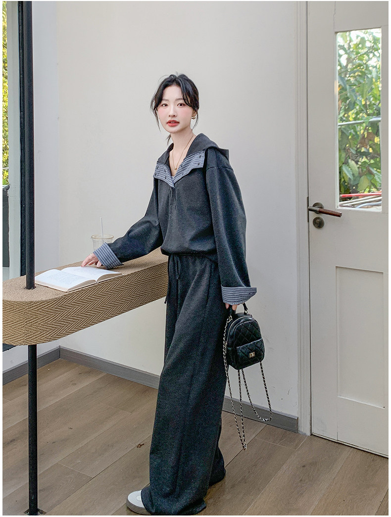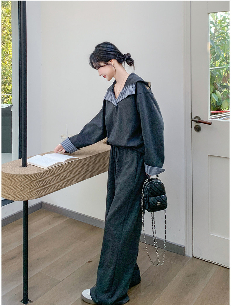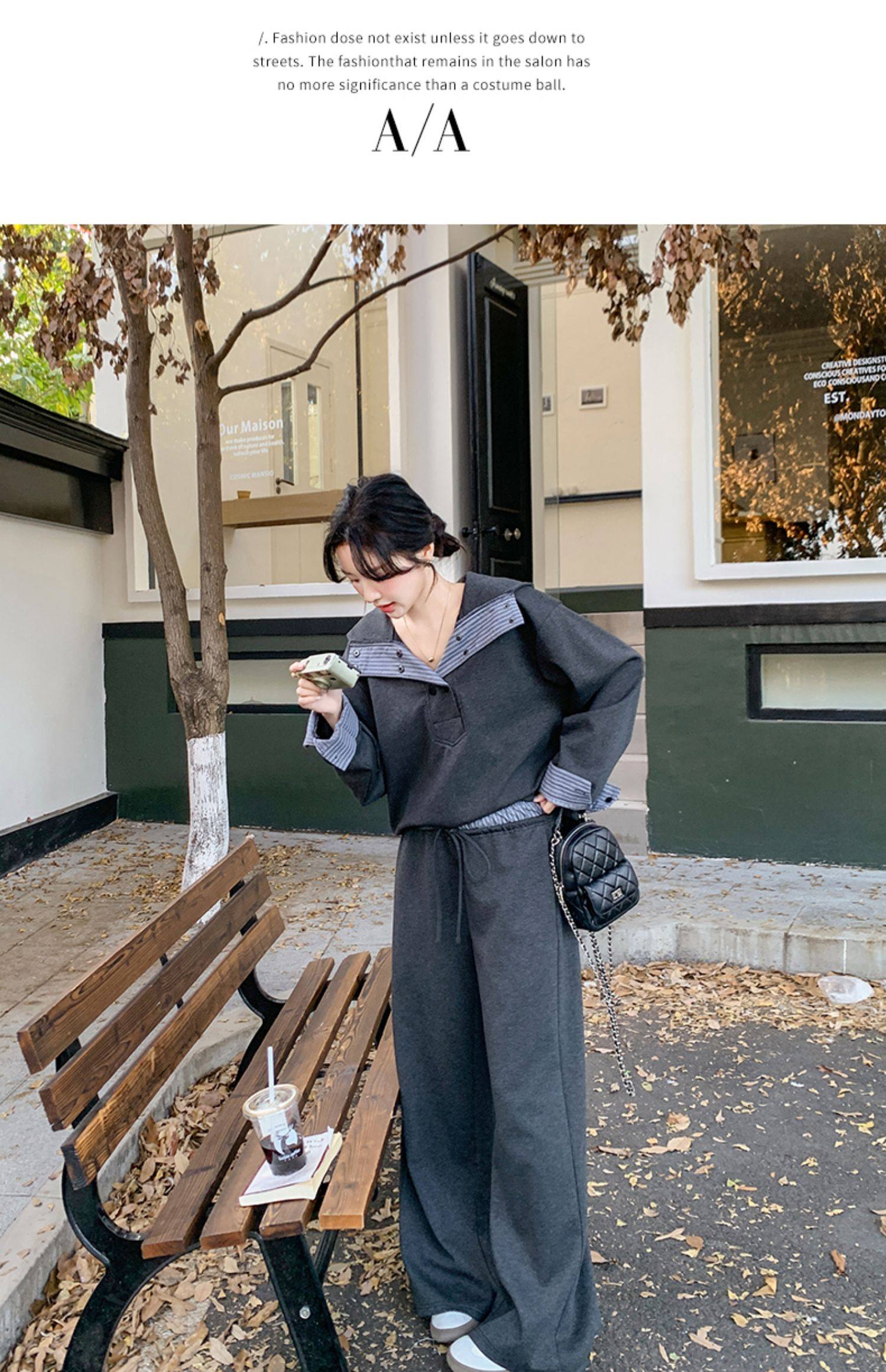 2点セット!【セットアップ】ストライプ切替 カジュアルスウェット パンツ トレンド 大人気 ファッション 上下セット【JZシリーズ】