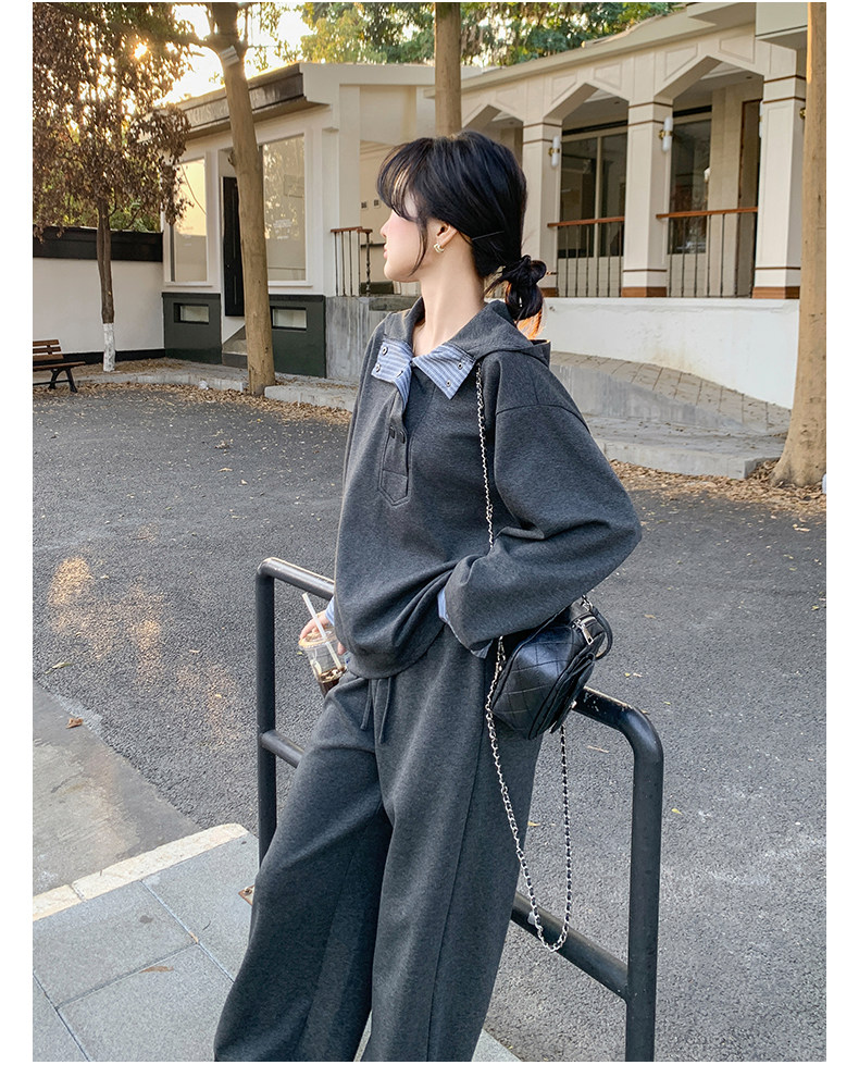 【トップス】フェイクレイヤード フードパーカー 春秋 男女兼用 ゆったり カジュアル トップス【FCシリーズ】
