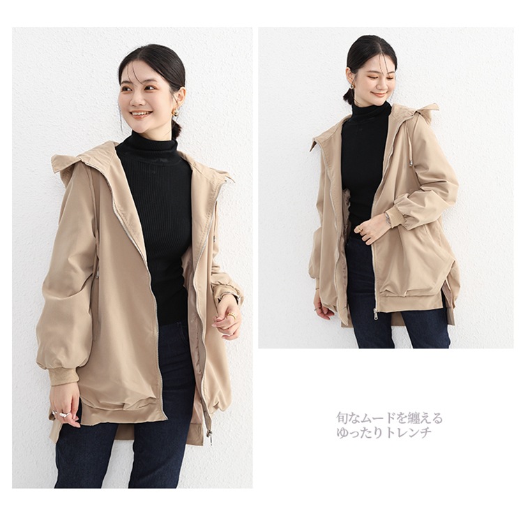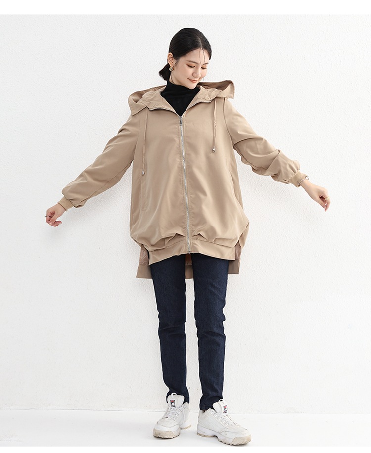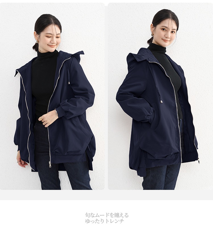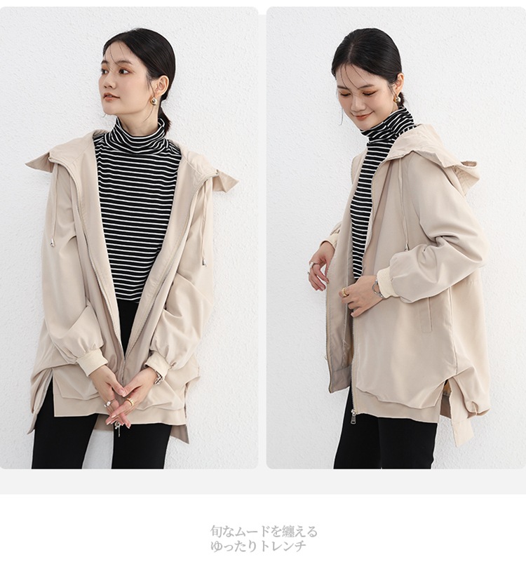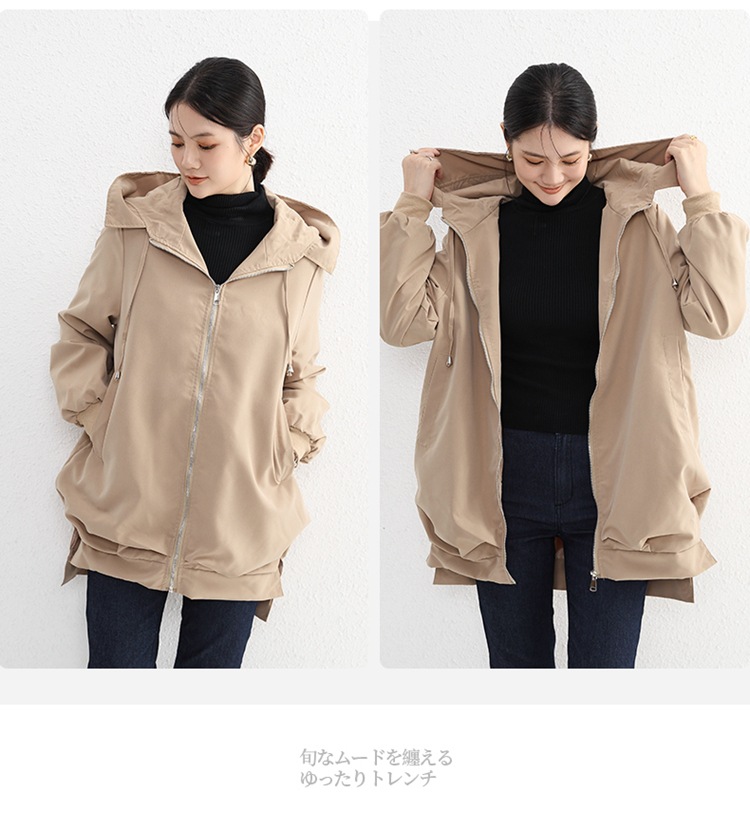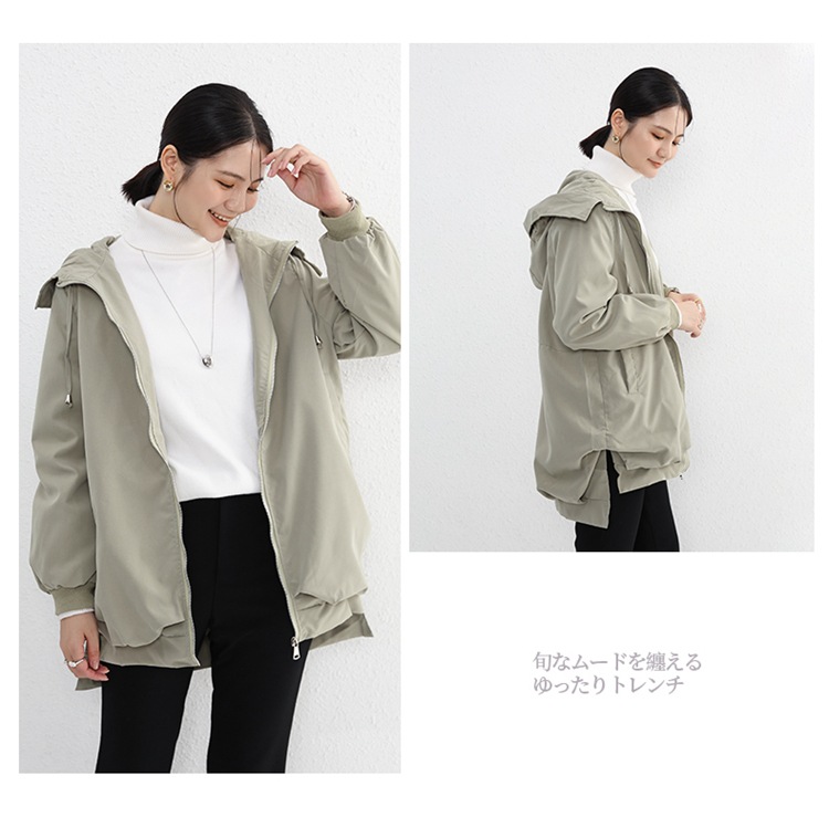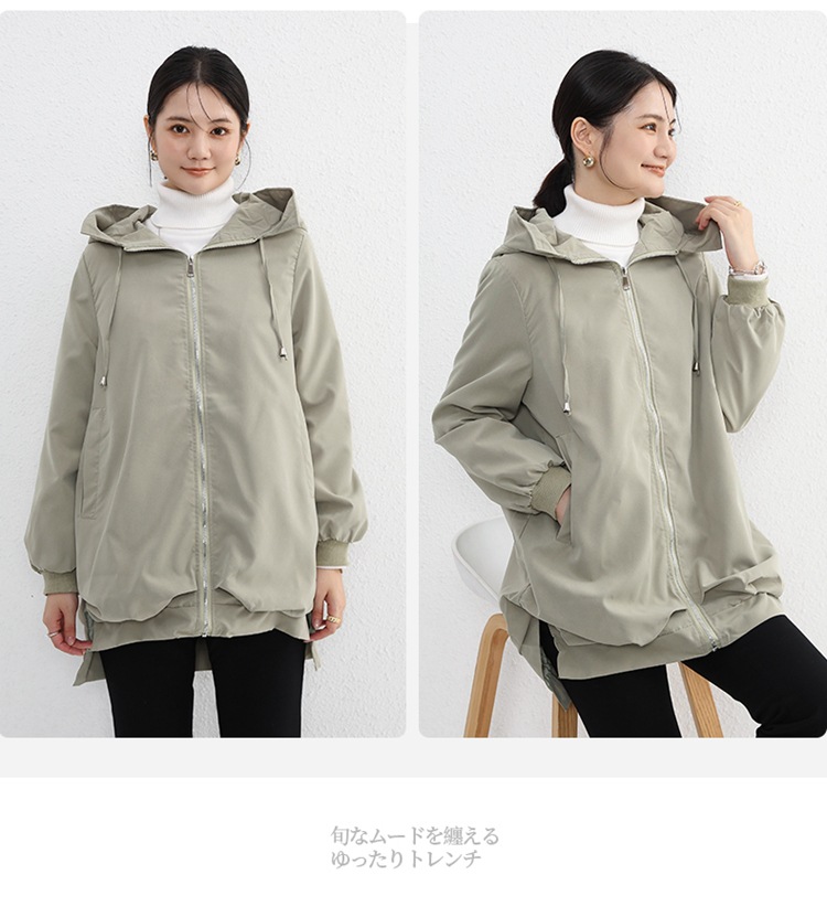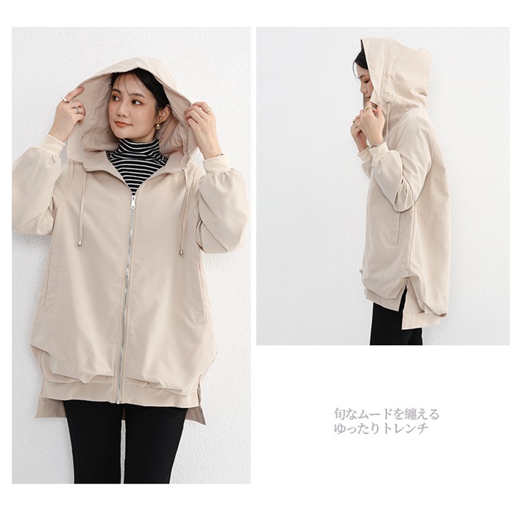 【商品名】【アウター】春 秋 ゆったり 前短後長 ポケット トレンチコート ジャケット