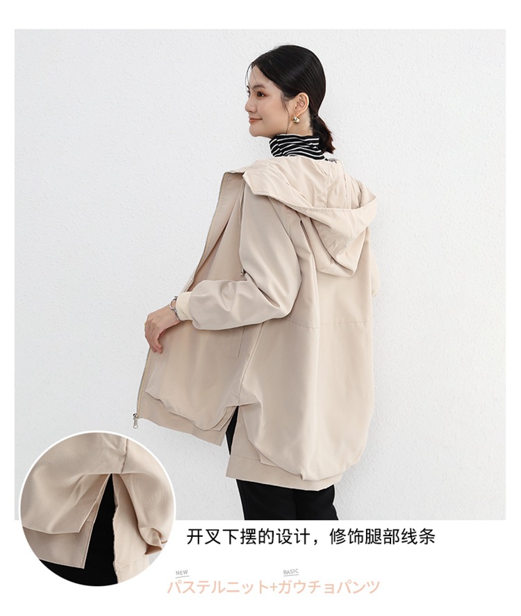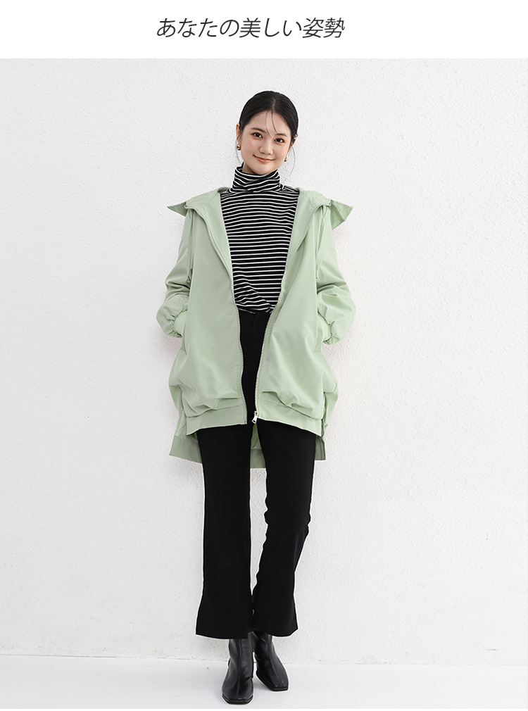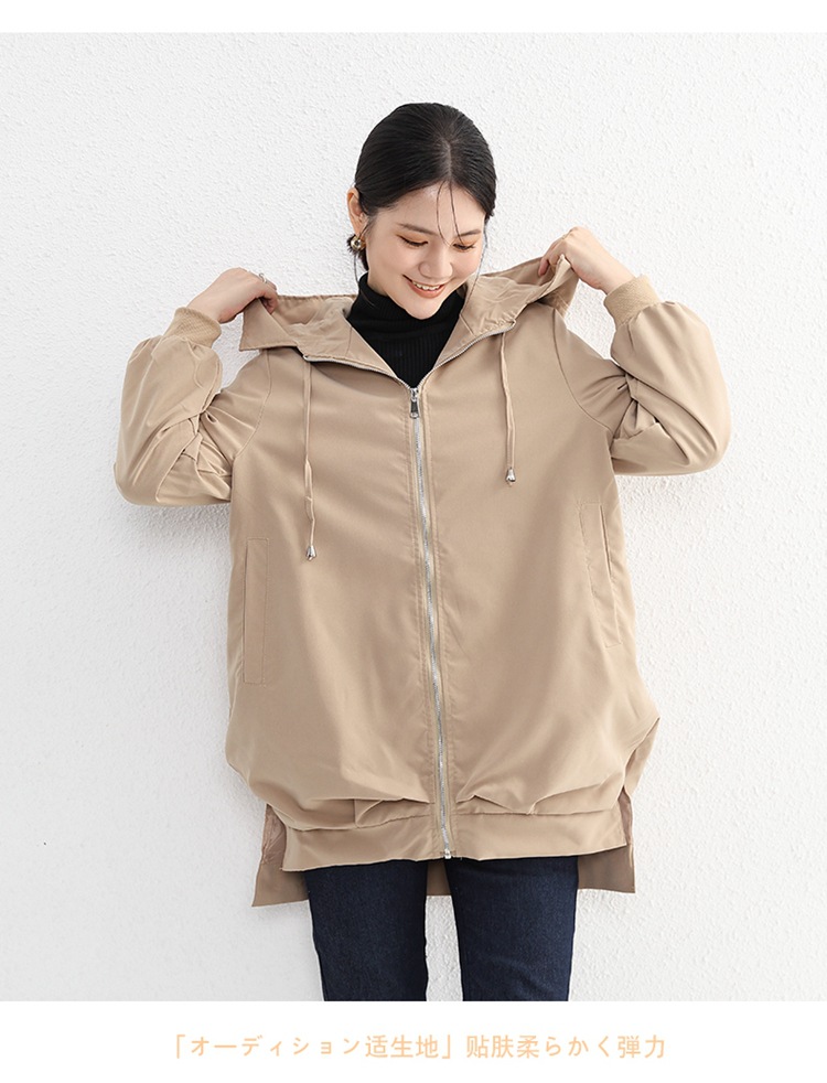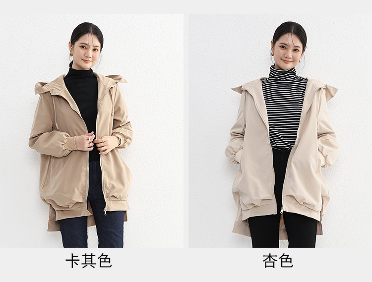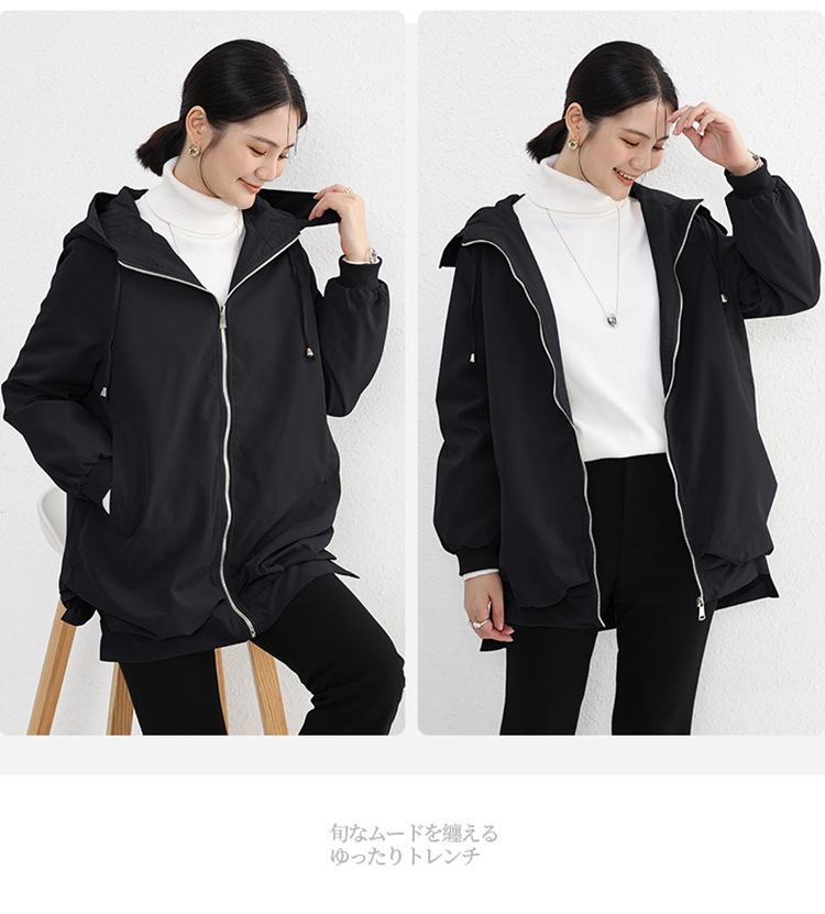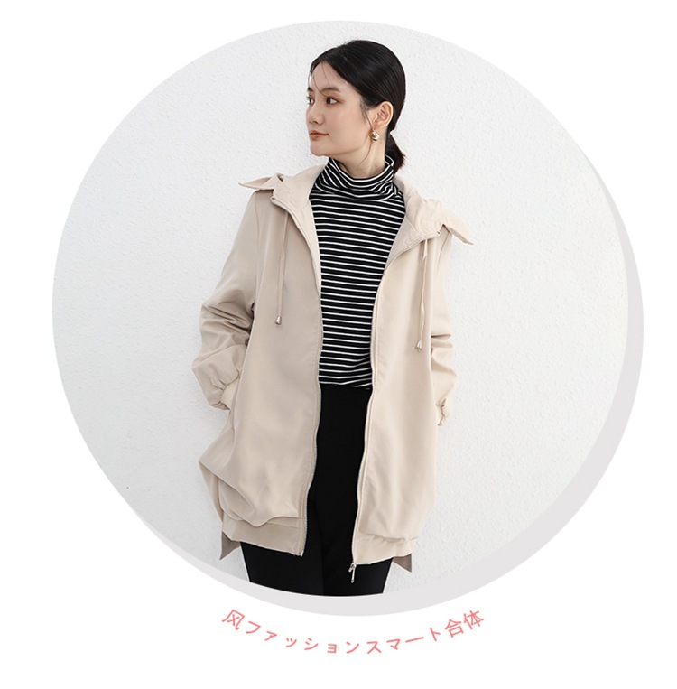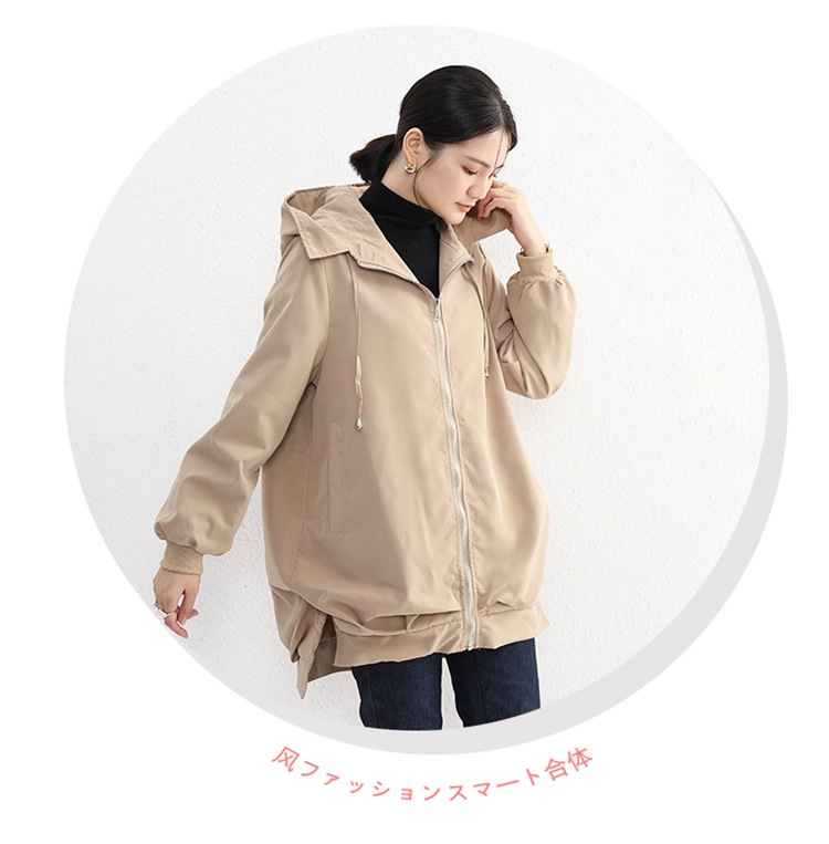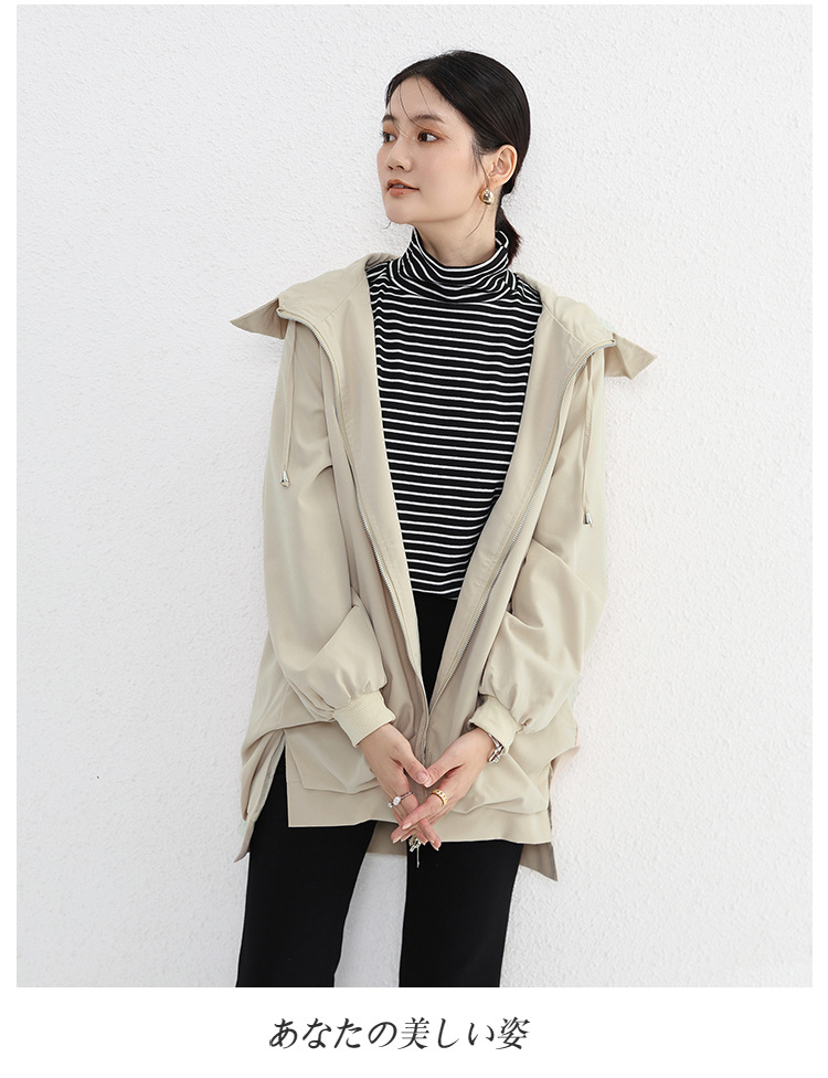 【商品名】【アウター】春 秋 ゆったり 前短後長 ポケット トレンチコート ジャケット