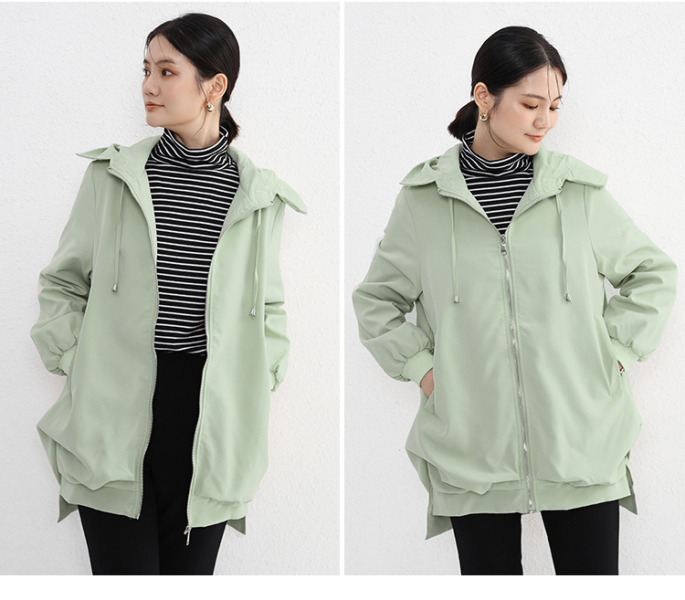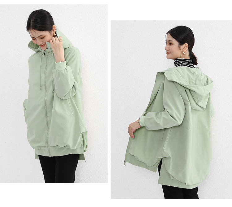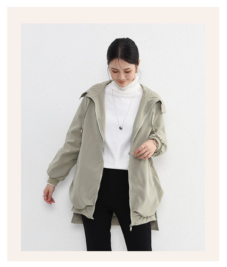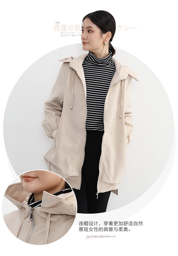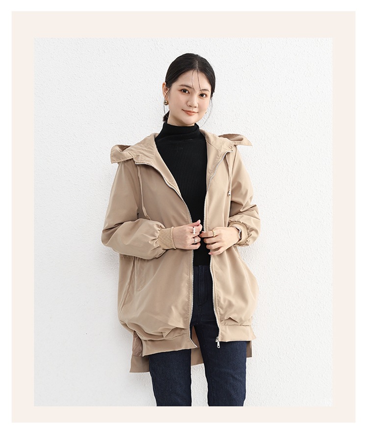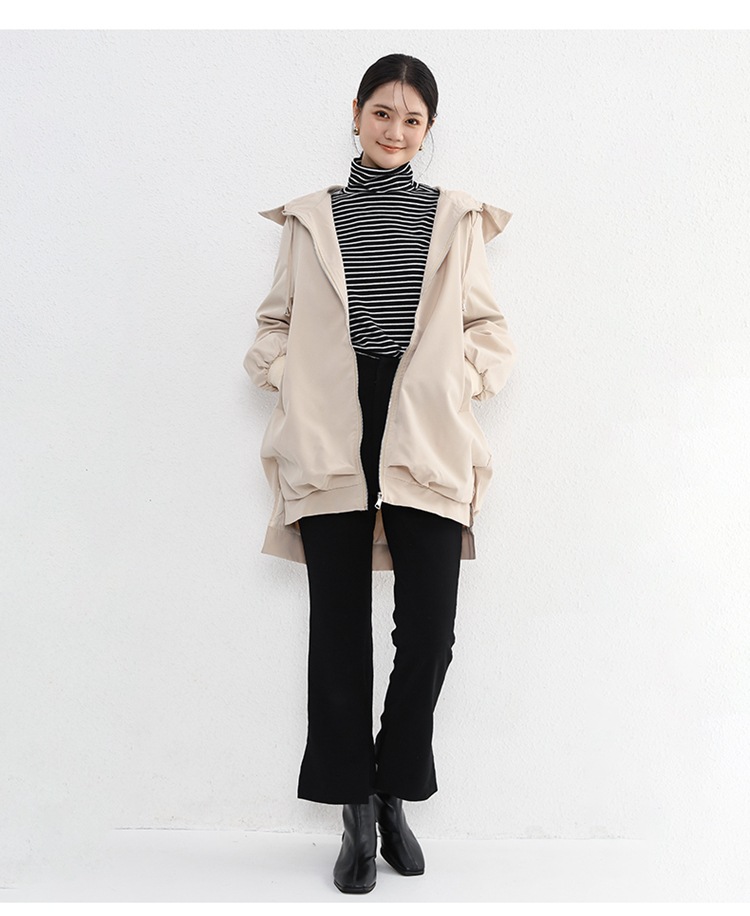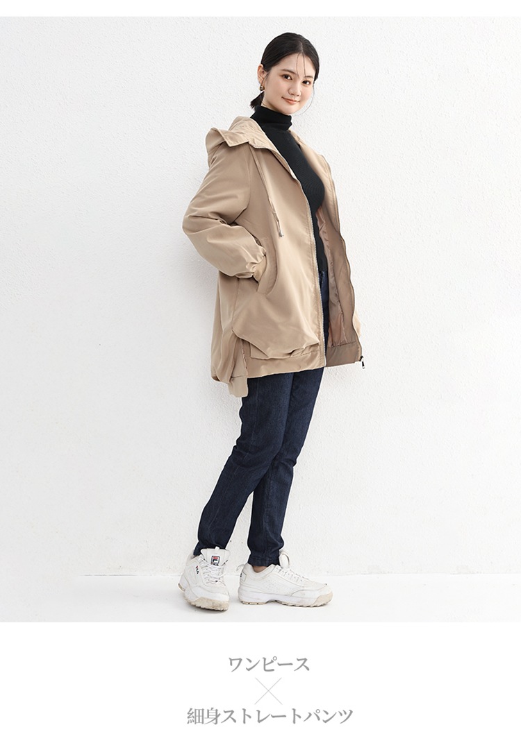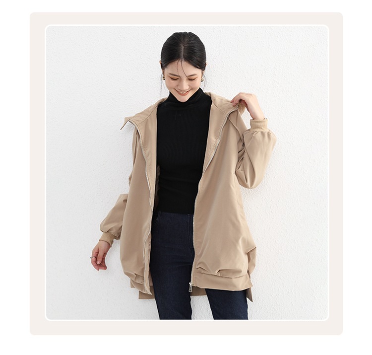 【商品名】【アウター】春 秋 ゆったり 前短後長 ポケット トレンチコート ジャケット
