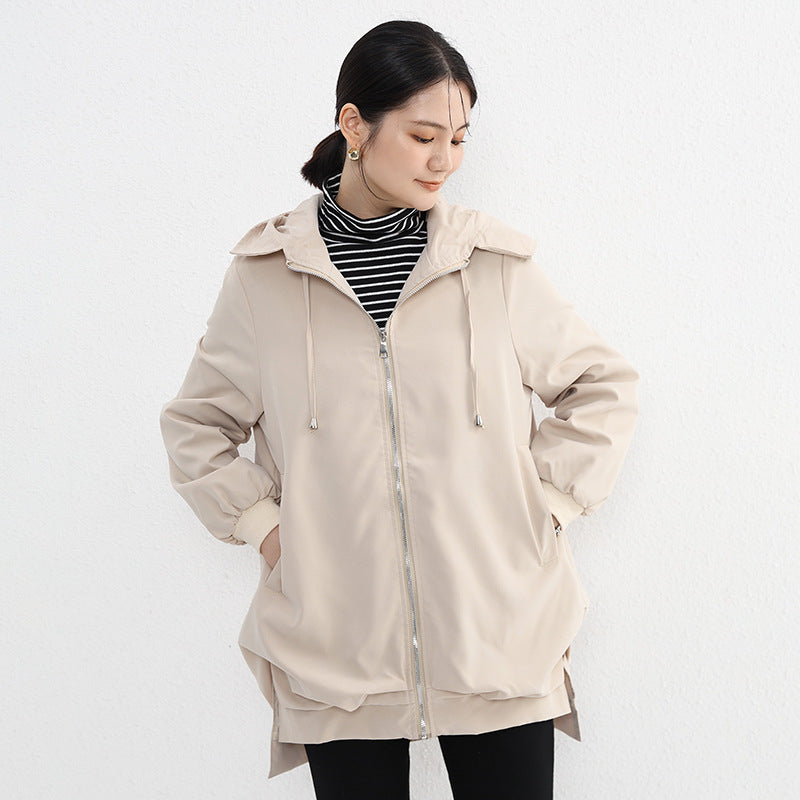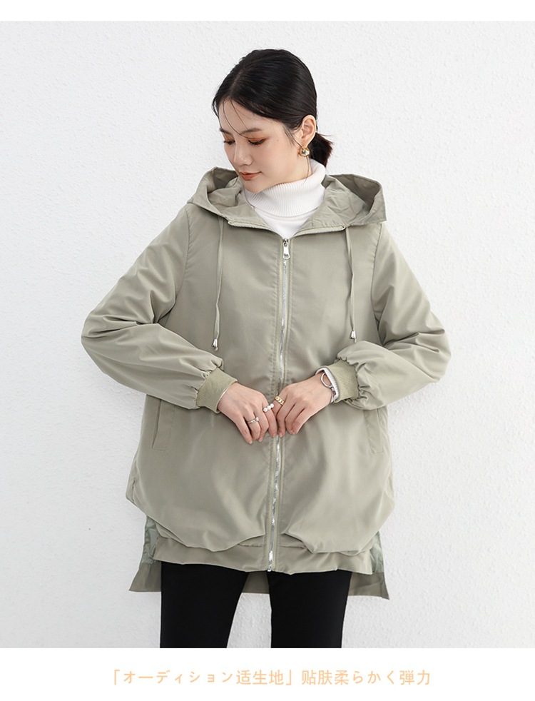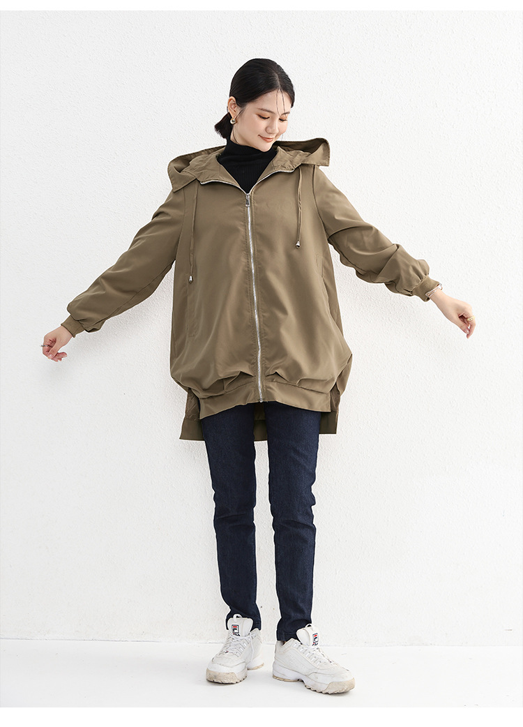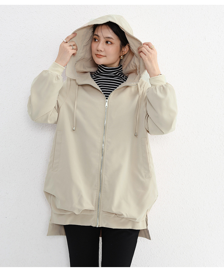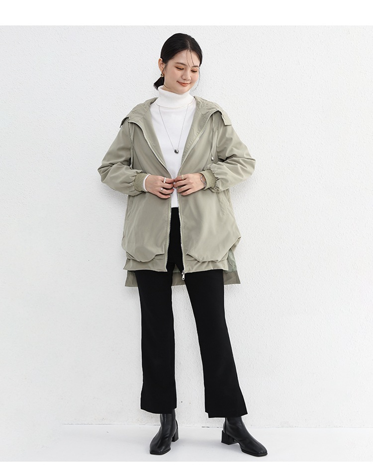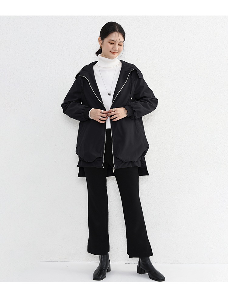 【アウター】春 秋 ゆったり 前短後長 ポケット トレンチコート ジャケット