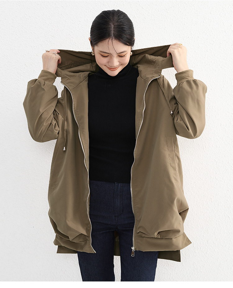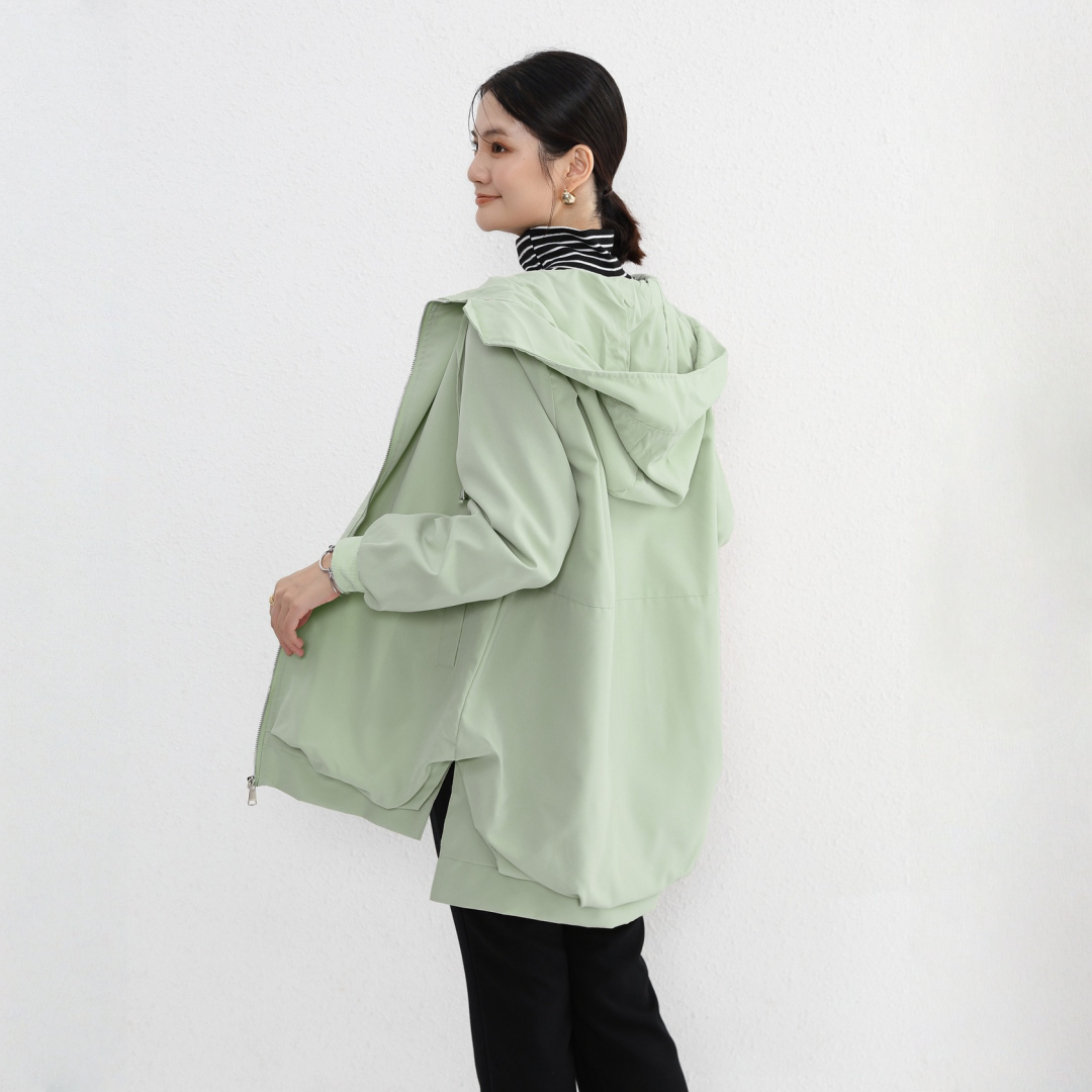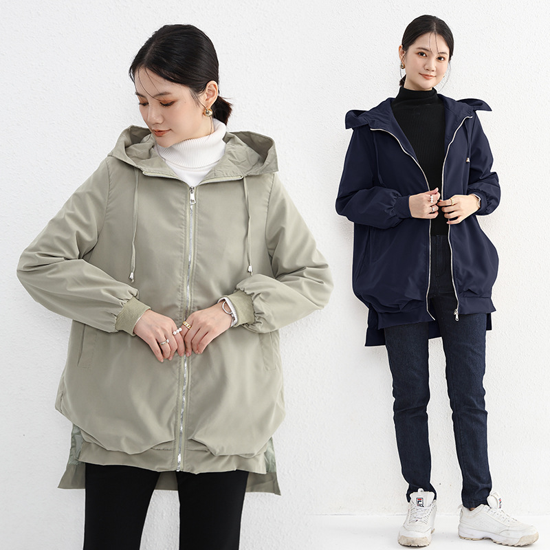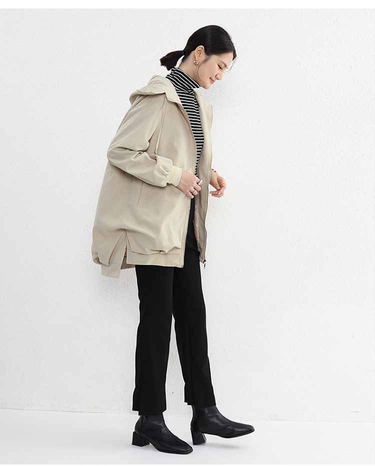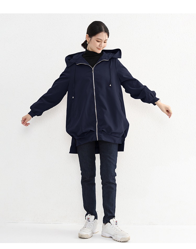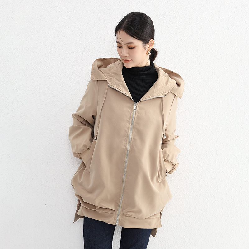 【アウター】春 秋 ゆったり 前短後長 ポケット トレンチコート ジャケット