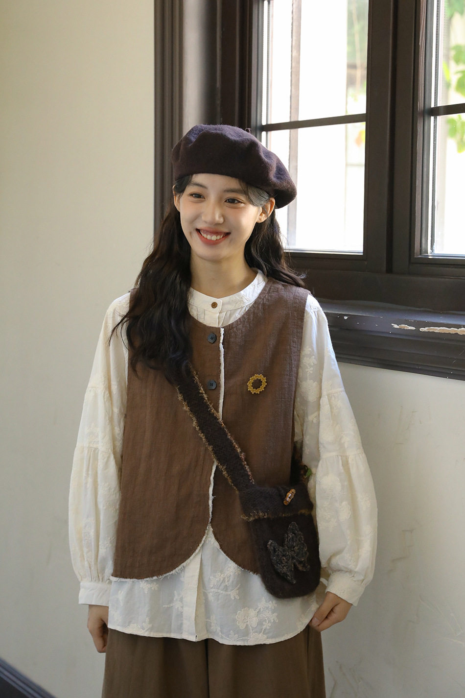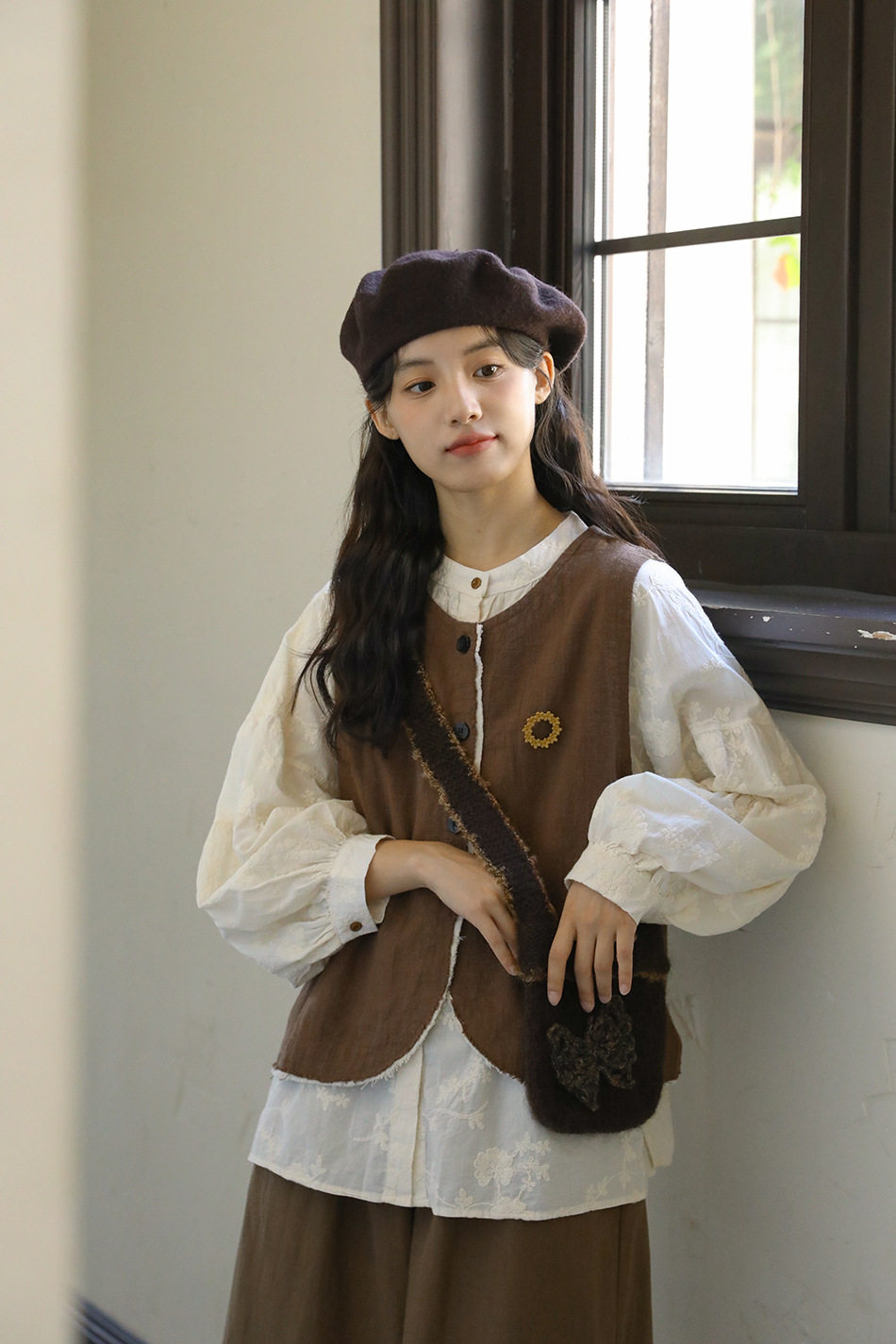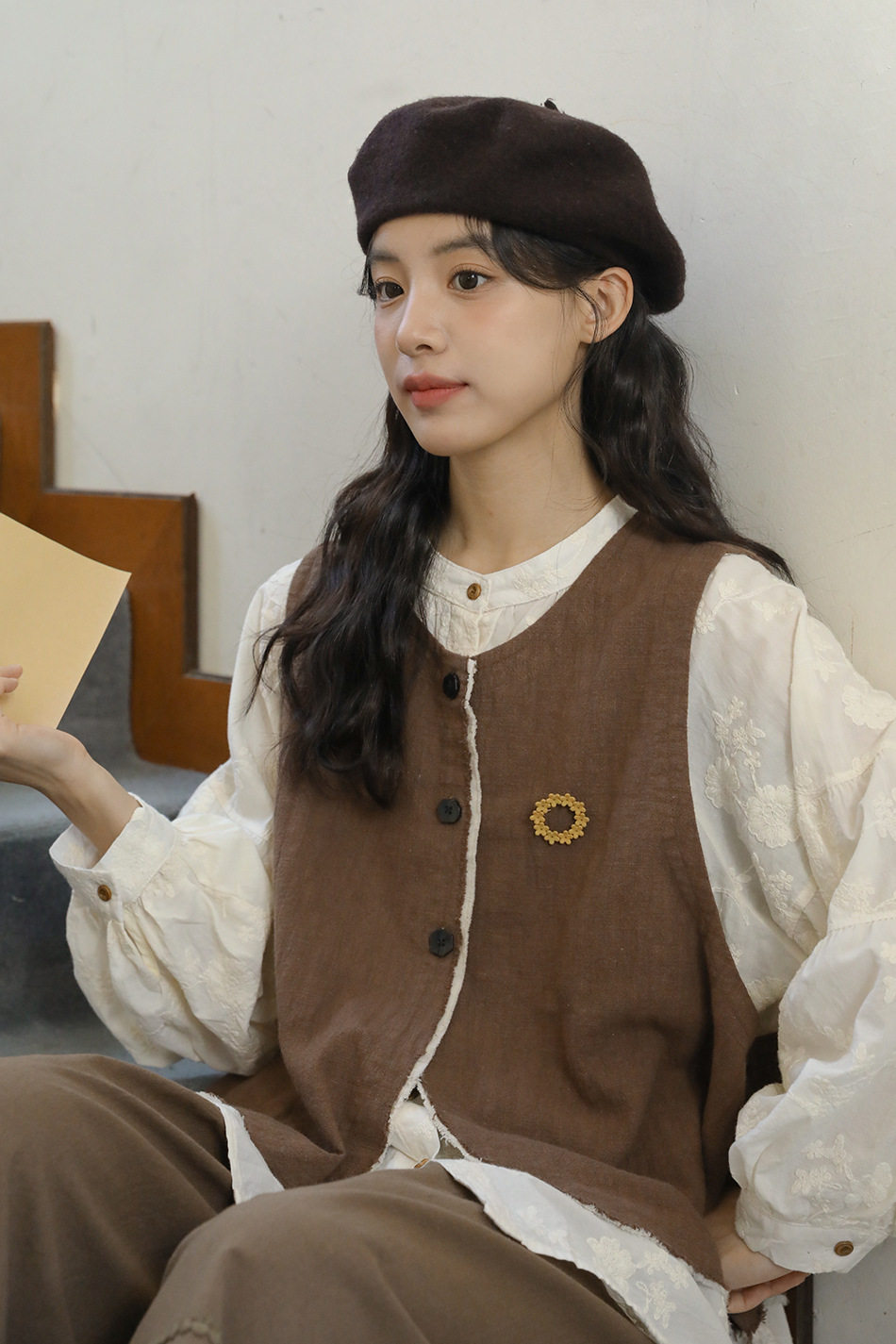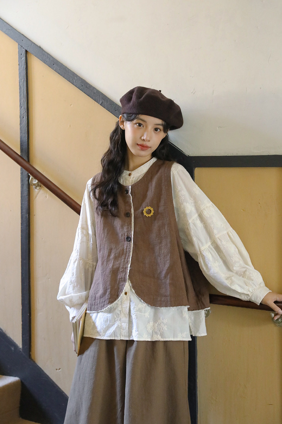 【商品名】【単品注文】【セットアップ】秋新作 レディース 長袖シャツ + 刺繍ベスト+パンツ デザイン感 レトロ おしゃれ 上下セット【JZシリーズ】