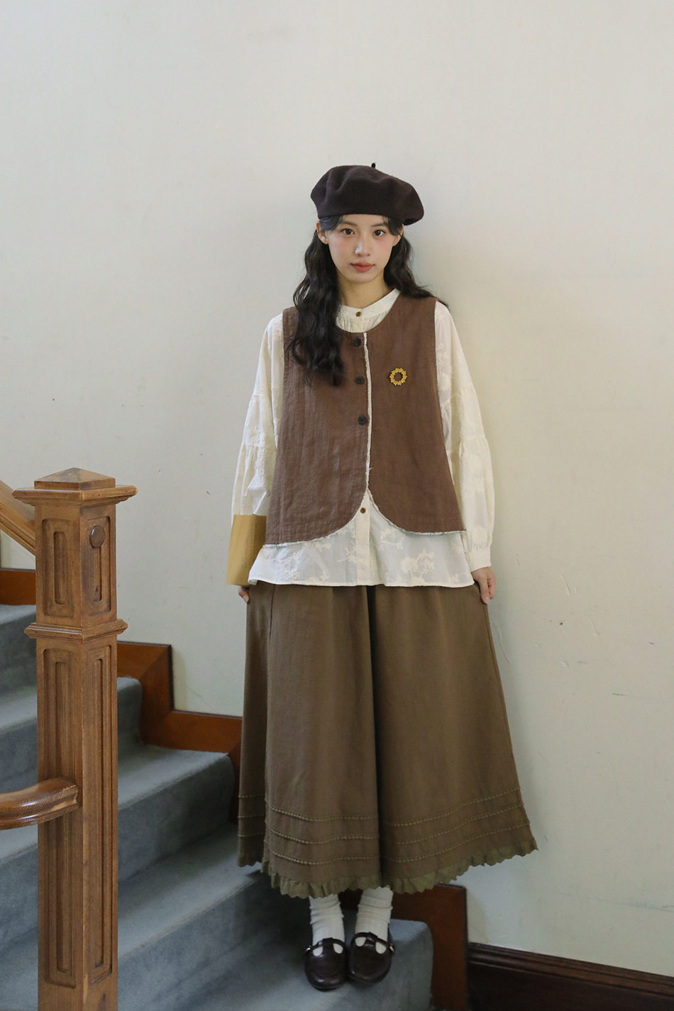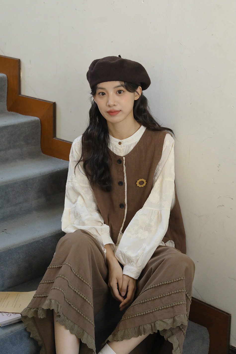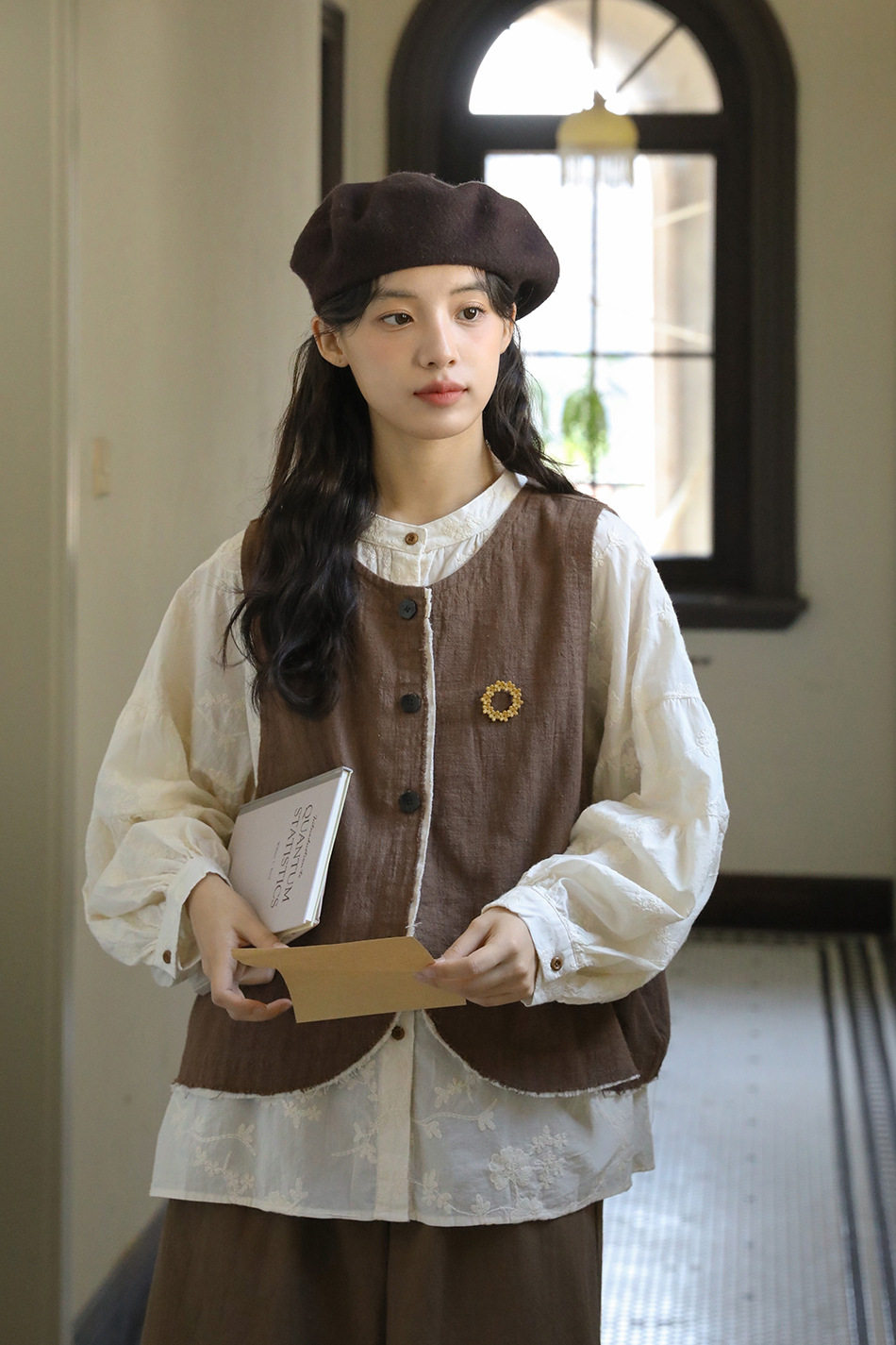 【商品名】【単品注文】【セットアップ】秋新作 レディース 長袖シャツ + 刺繍ベスト+パンツ デザイン感 レトロ おしゃれ 上下セット【JZシリーズ】