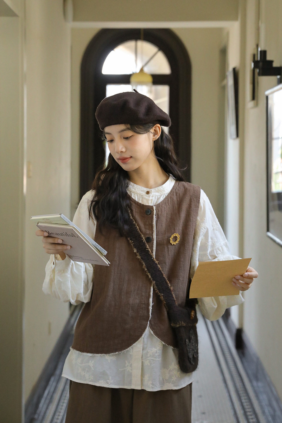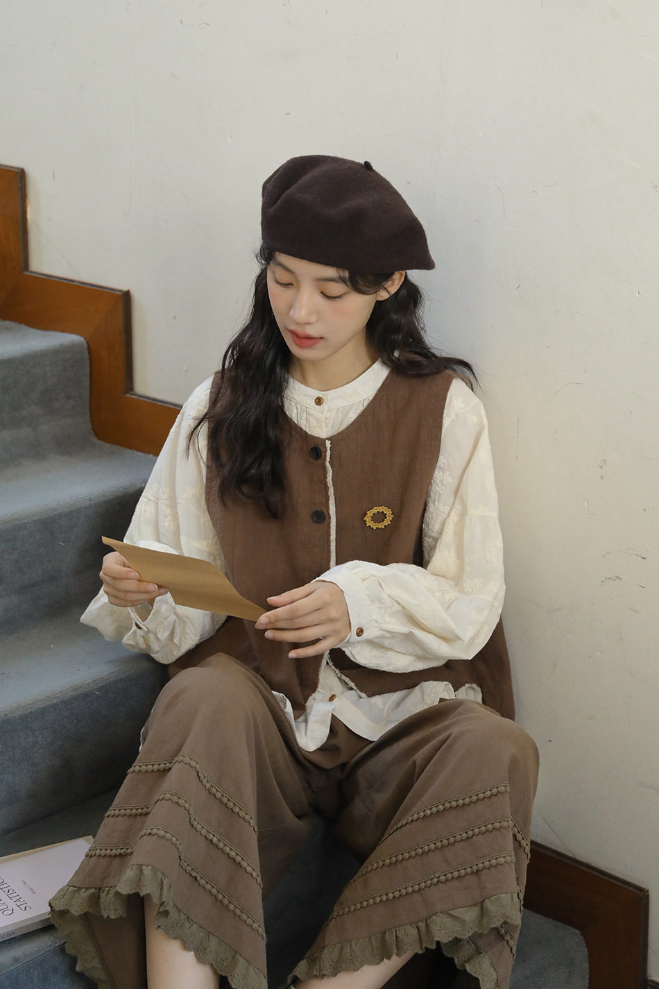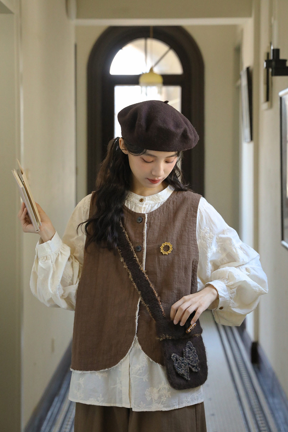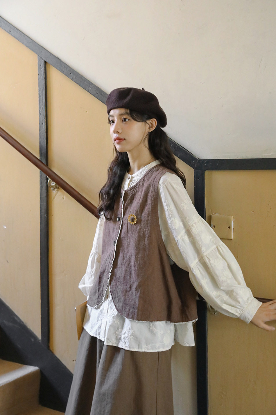 【商品名】【単品注文】【セットアップ】秋新作 レディース 長袖シャツ + 刺繍ベスト+パンツ デザイン感 レトロ おしゃれ 上下セット【JZシリーズ】
