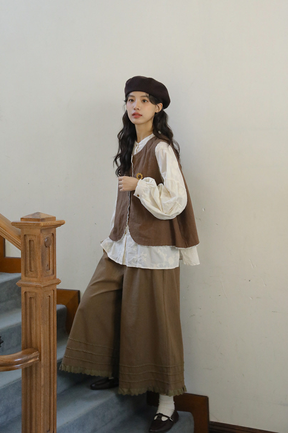 【単品注文】【セットアップ】秋新作 レディース 長袖シャツ + 刺繍ベスト+パンツ デザイン感 レトロ おしゃれ 上下セット【JZシリーズ】