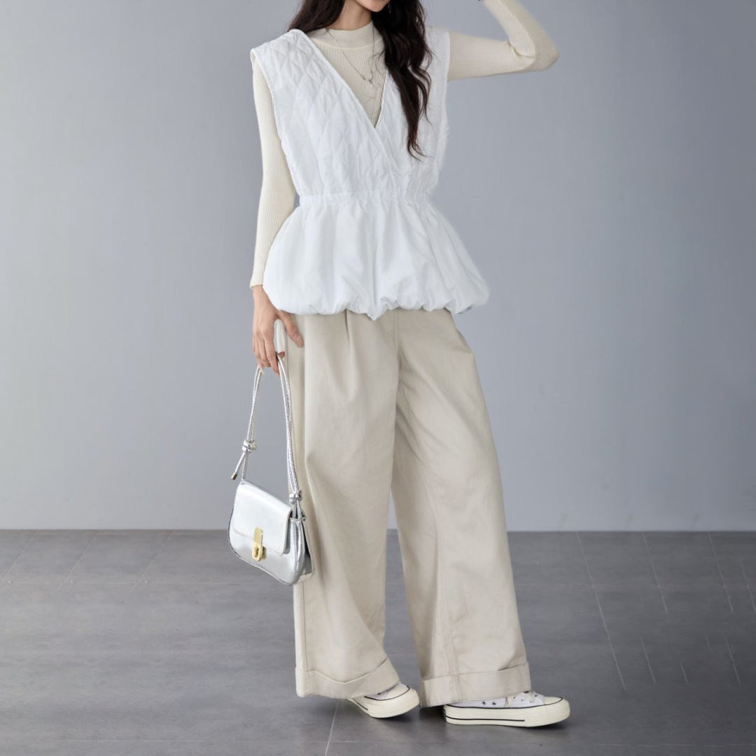 【商品名】【トップス】日系 春秋新作 ノースリーブ Vネック ベスト