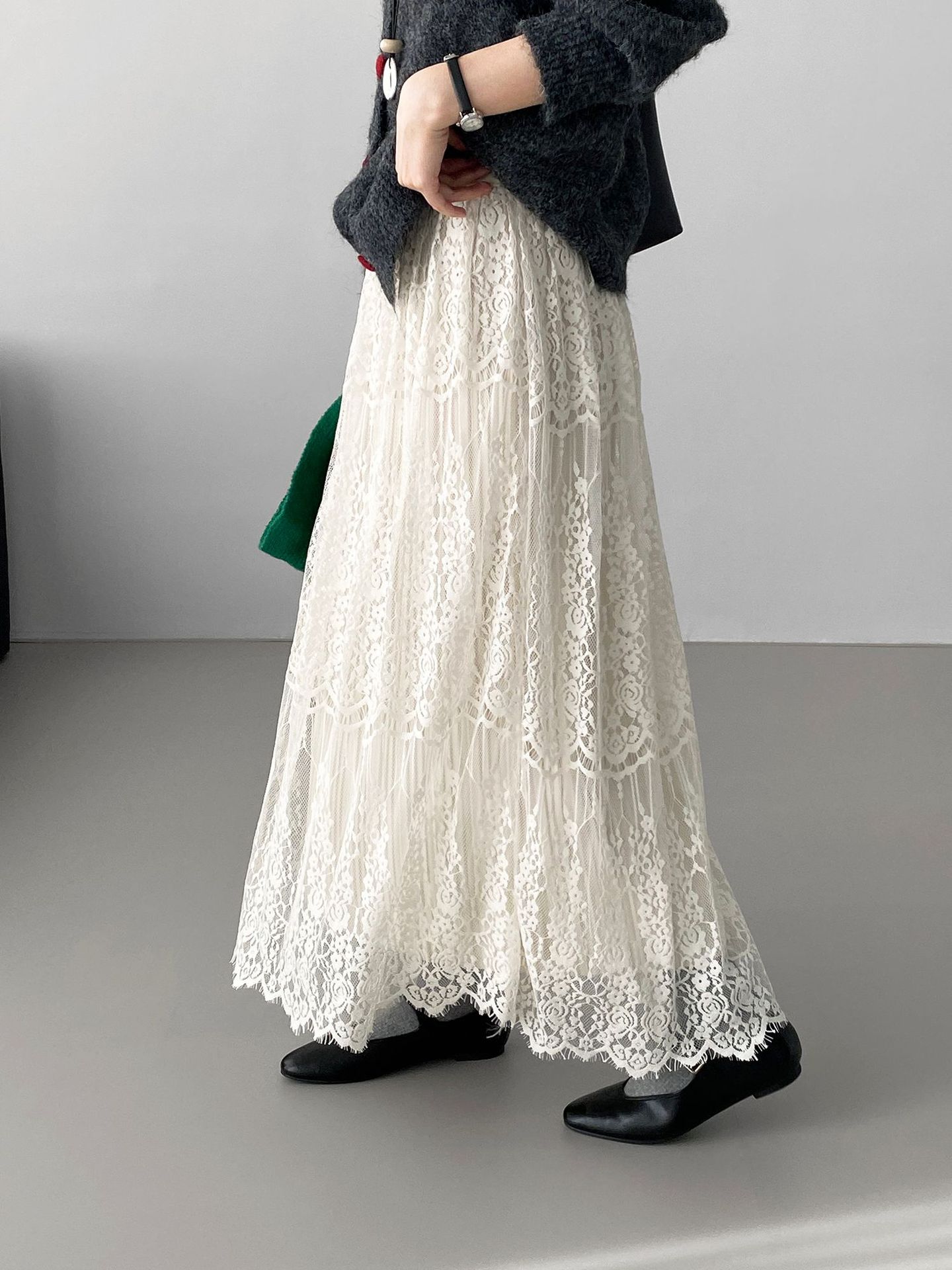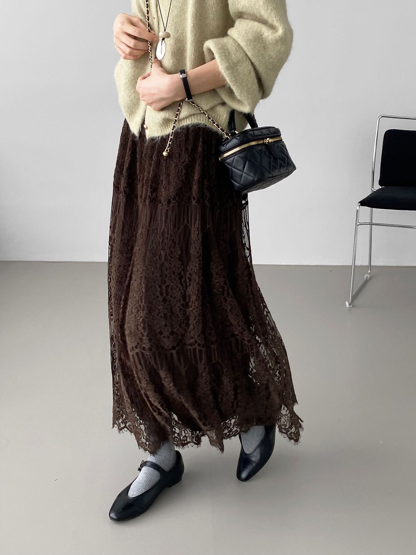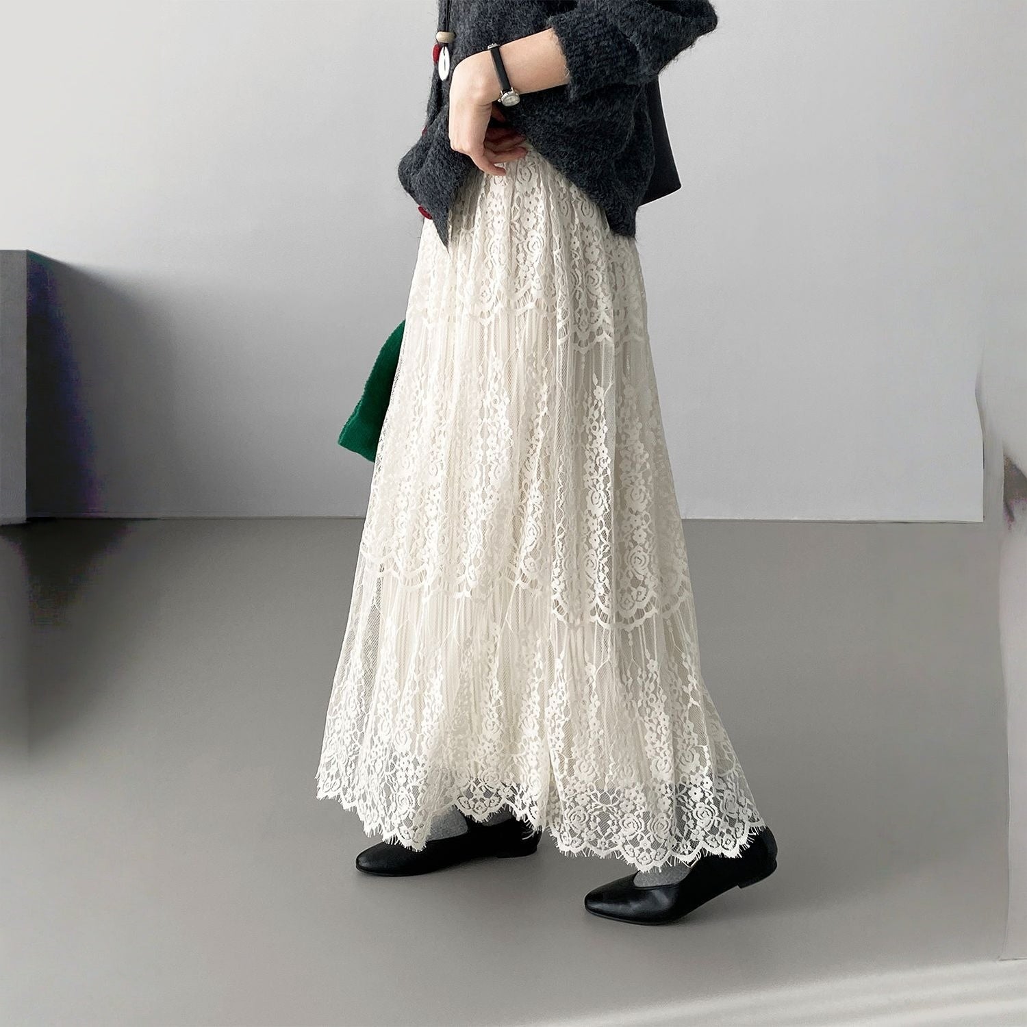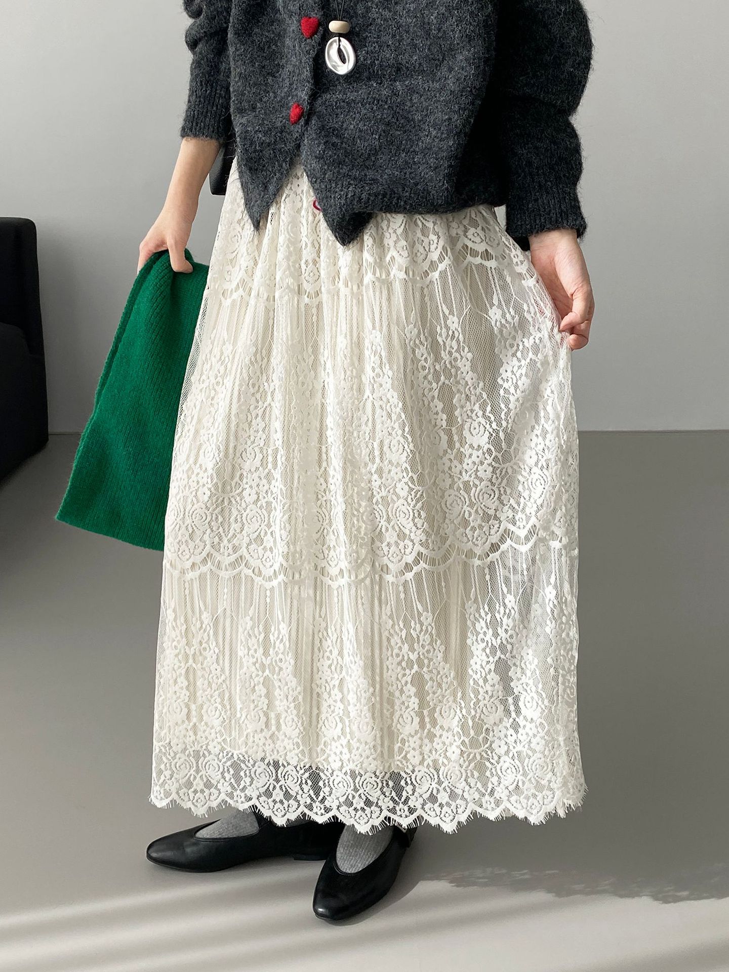 【ボトムス】春 秋 冬 レトロ レース 刺繍 Aライン スカート 【JZシリーズ】