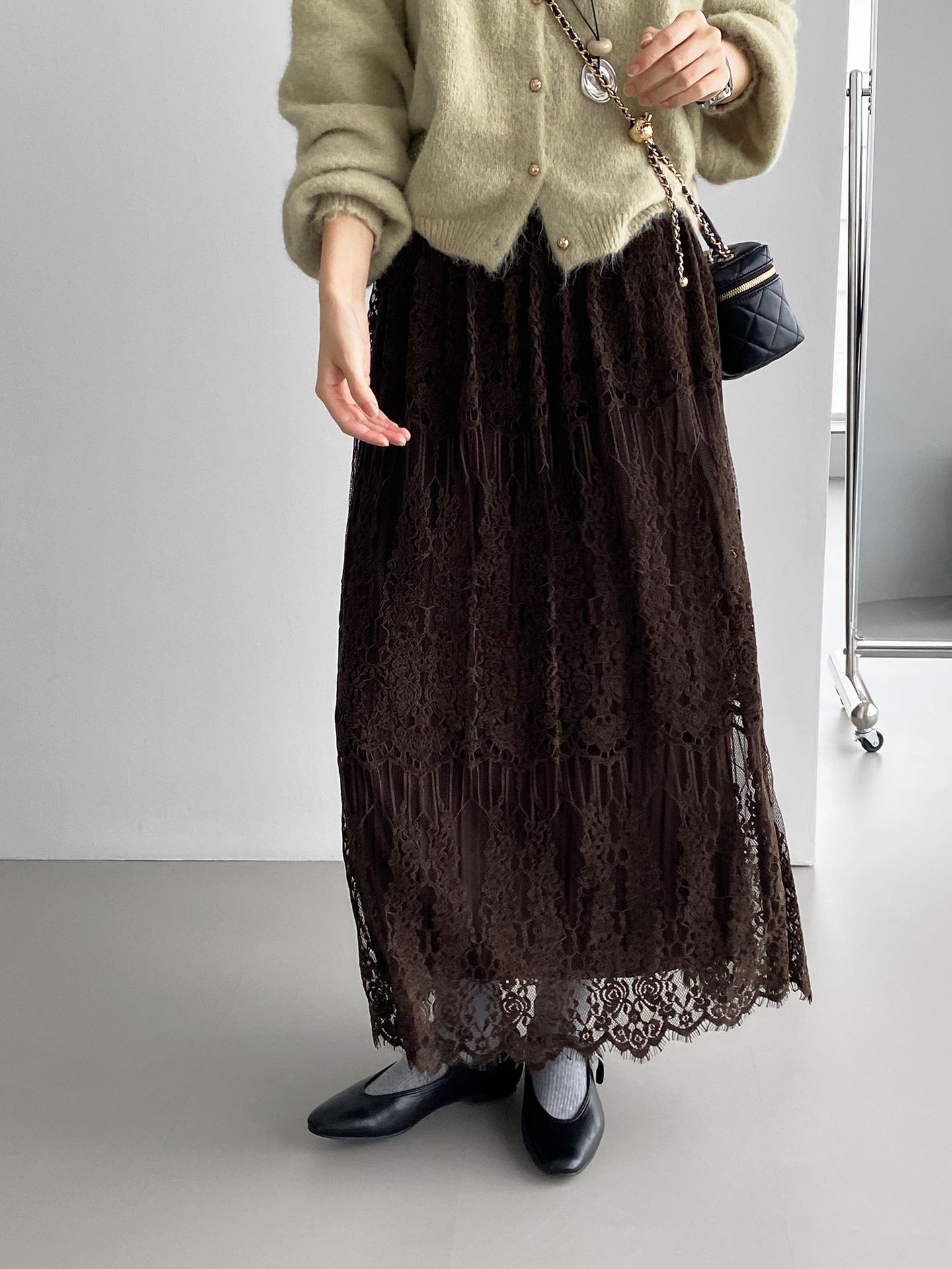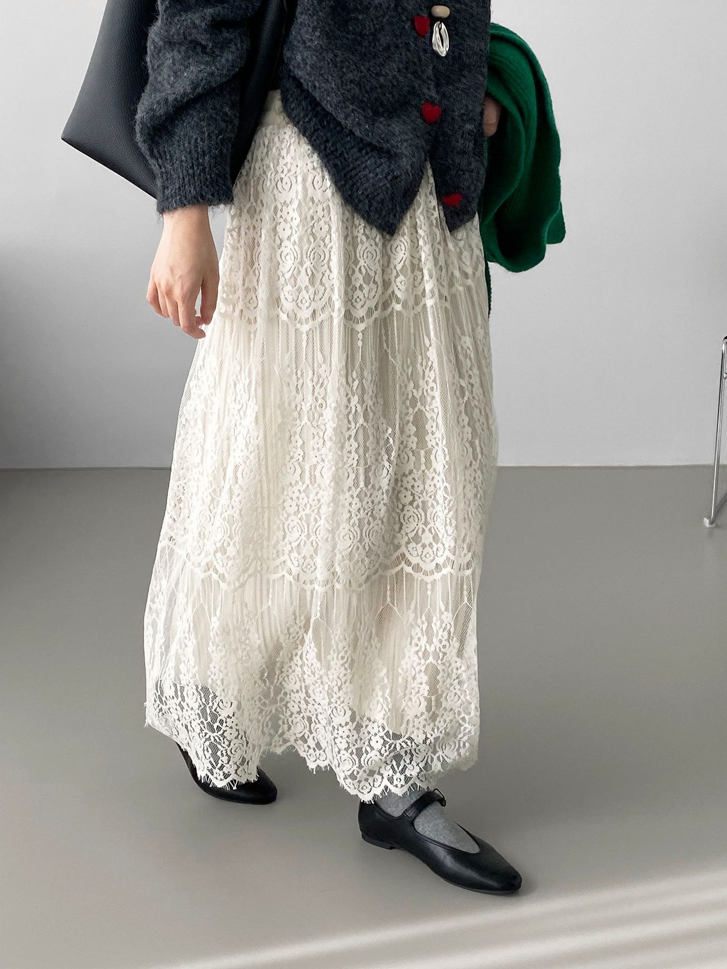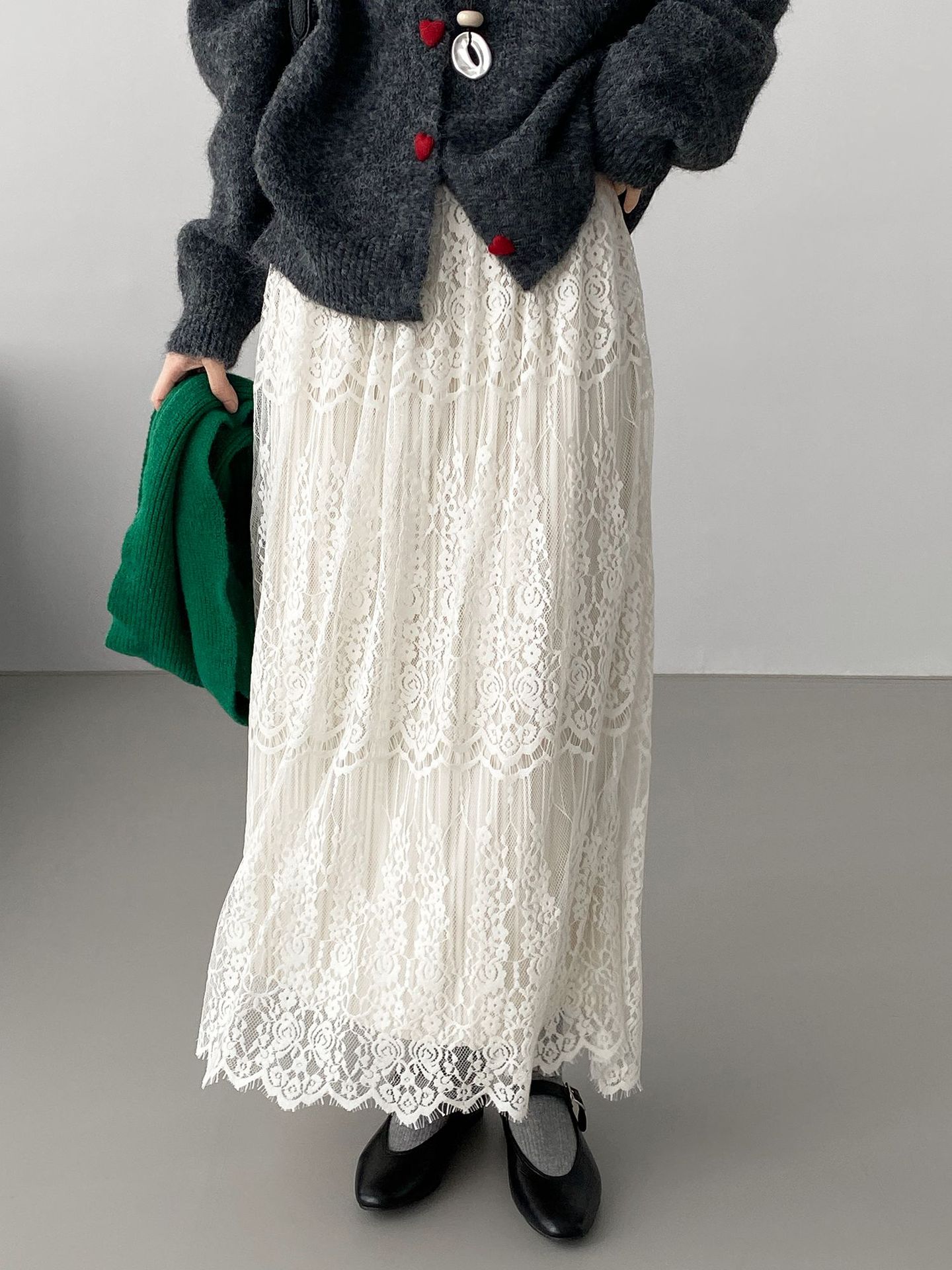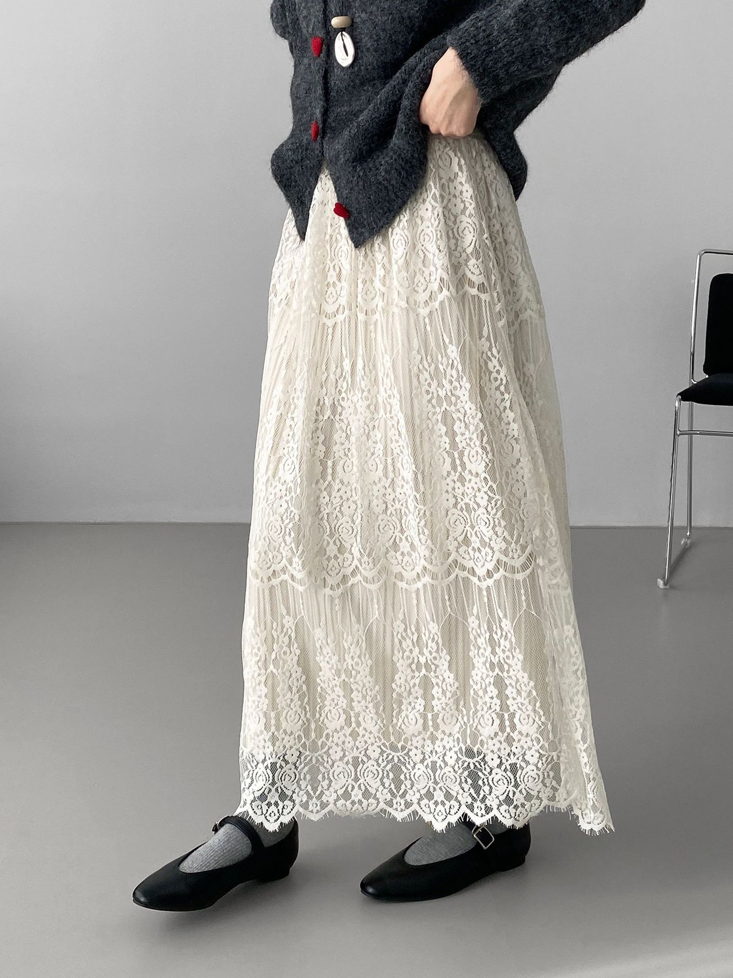 【ボトムス】春 秋 冬 レトロ レース 刺繍 Aライン スカート 【JZシリーズ】