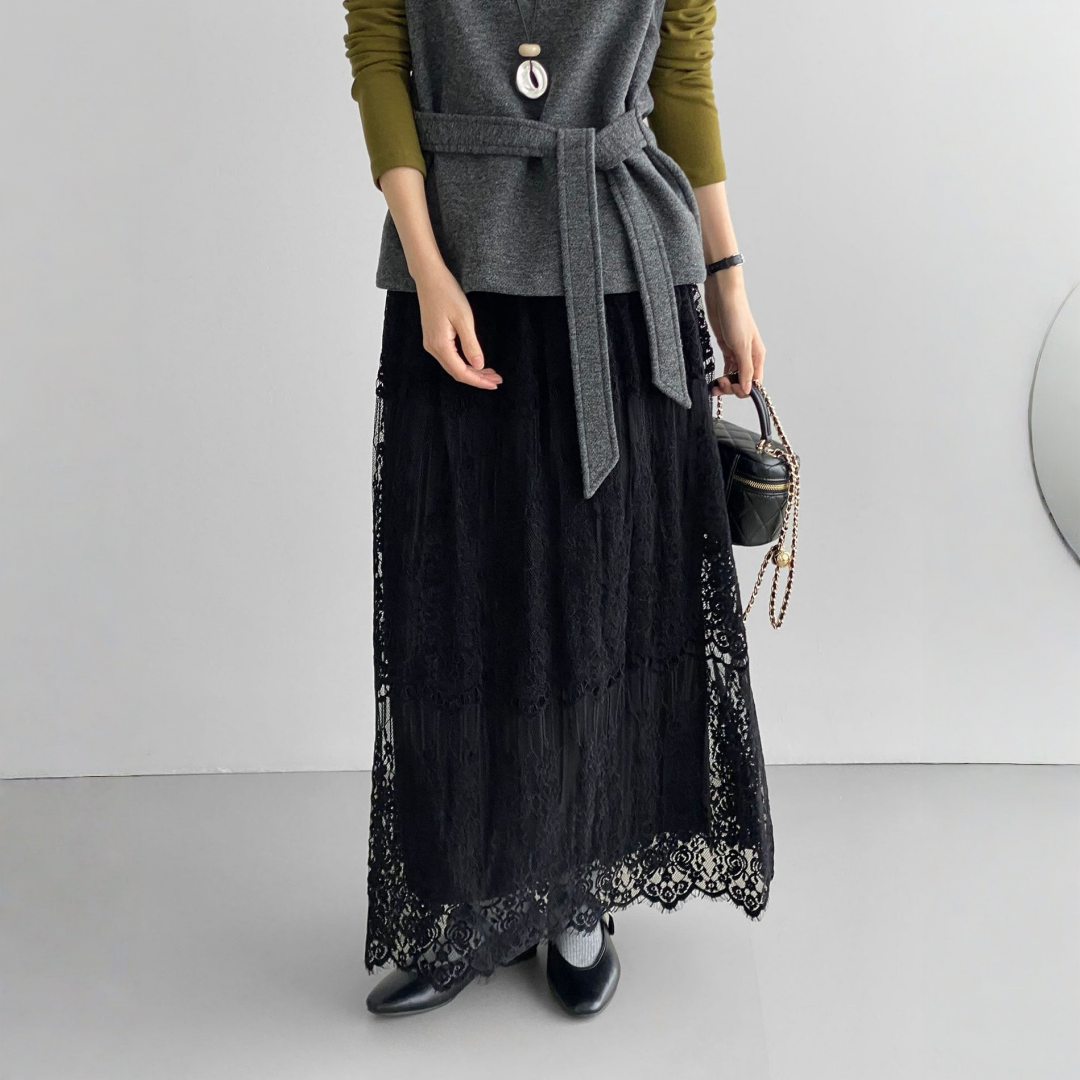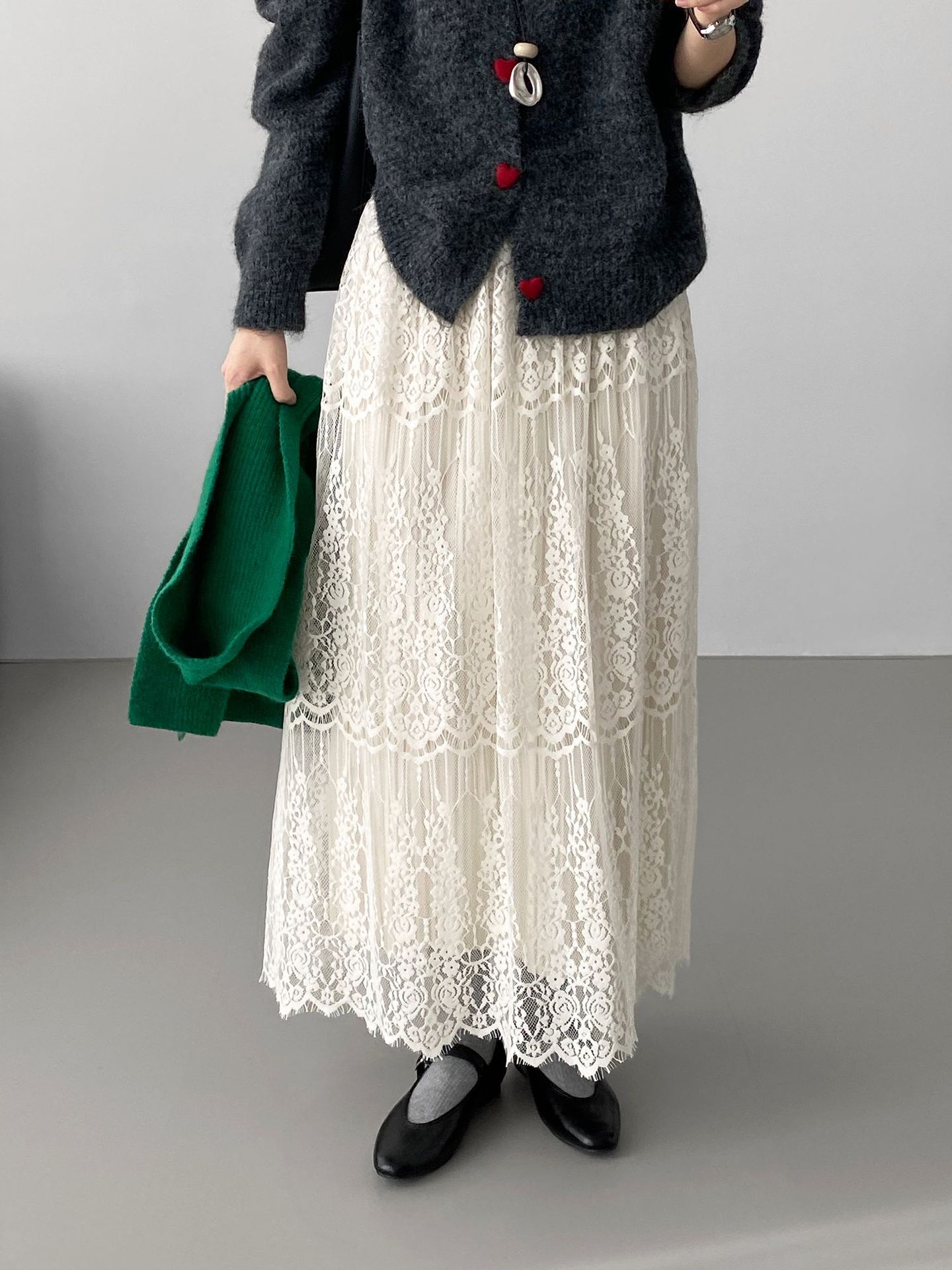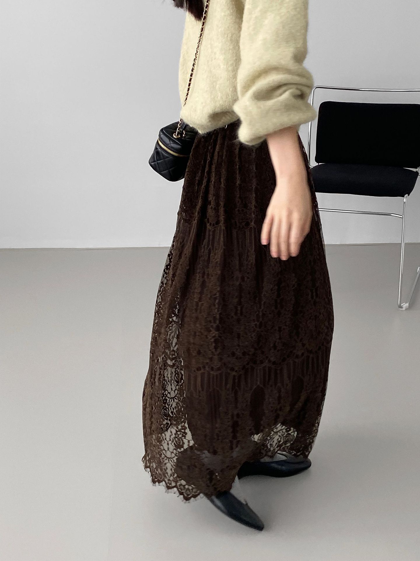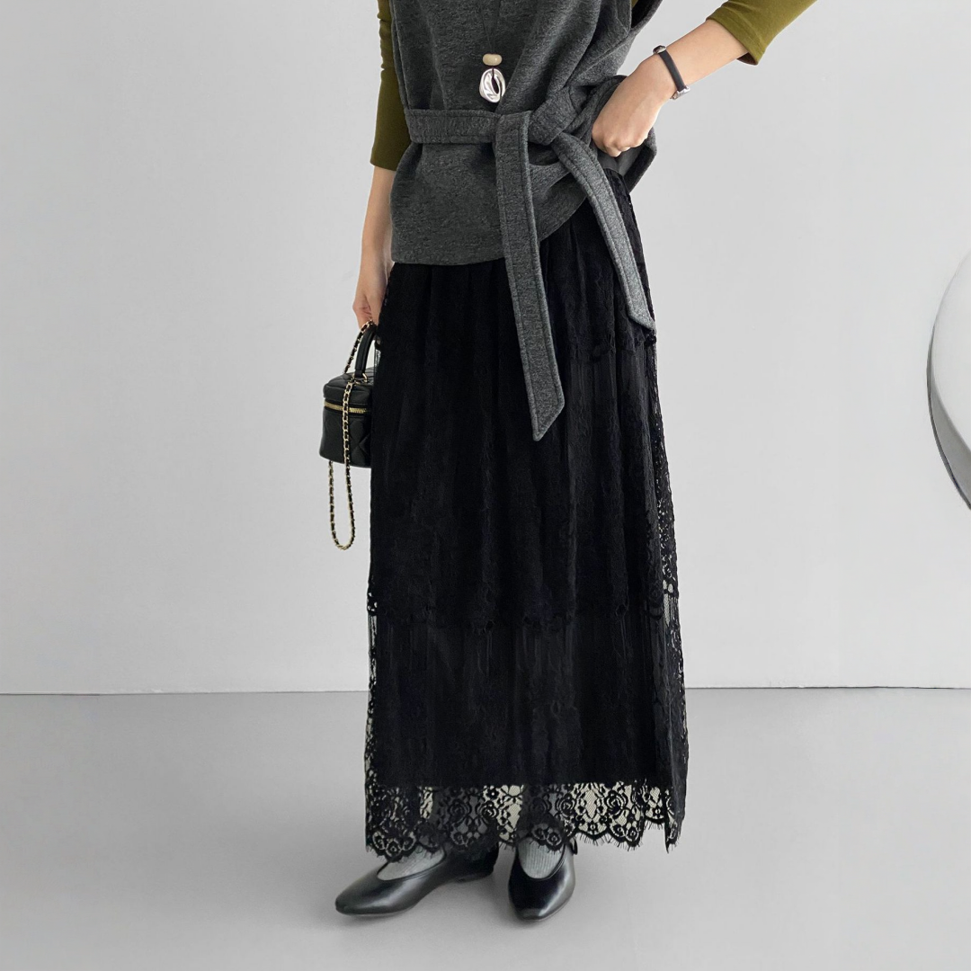 【ボトムス】春 秋 冬 レトロ レース 刺繍 Aライン スカート 【JZシリーズ】