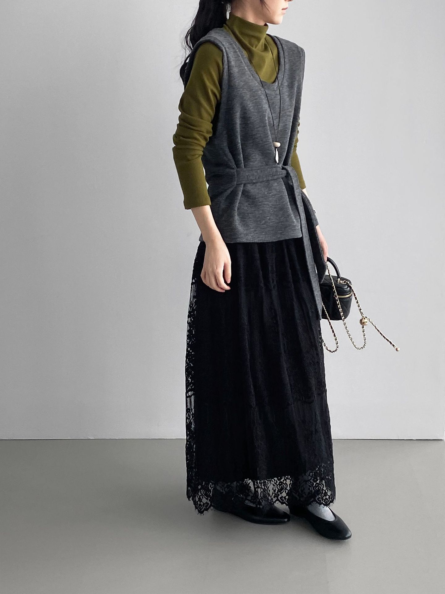 【トップス】春 秋 冬 ハイネック ケーブル ベルト付き ノースリーブ セーター 【JZシリーズ】