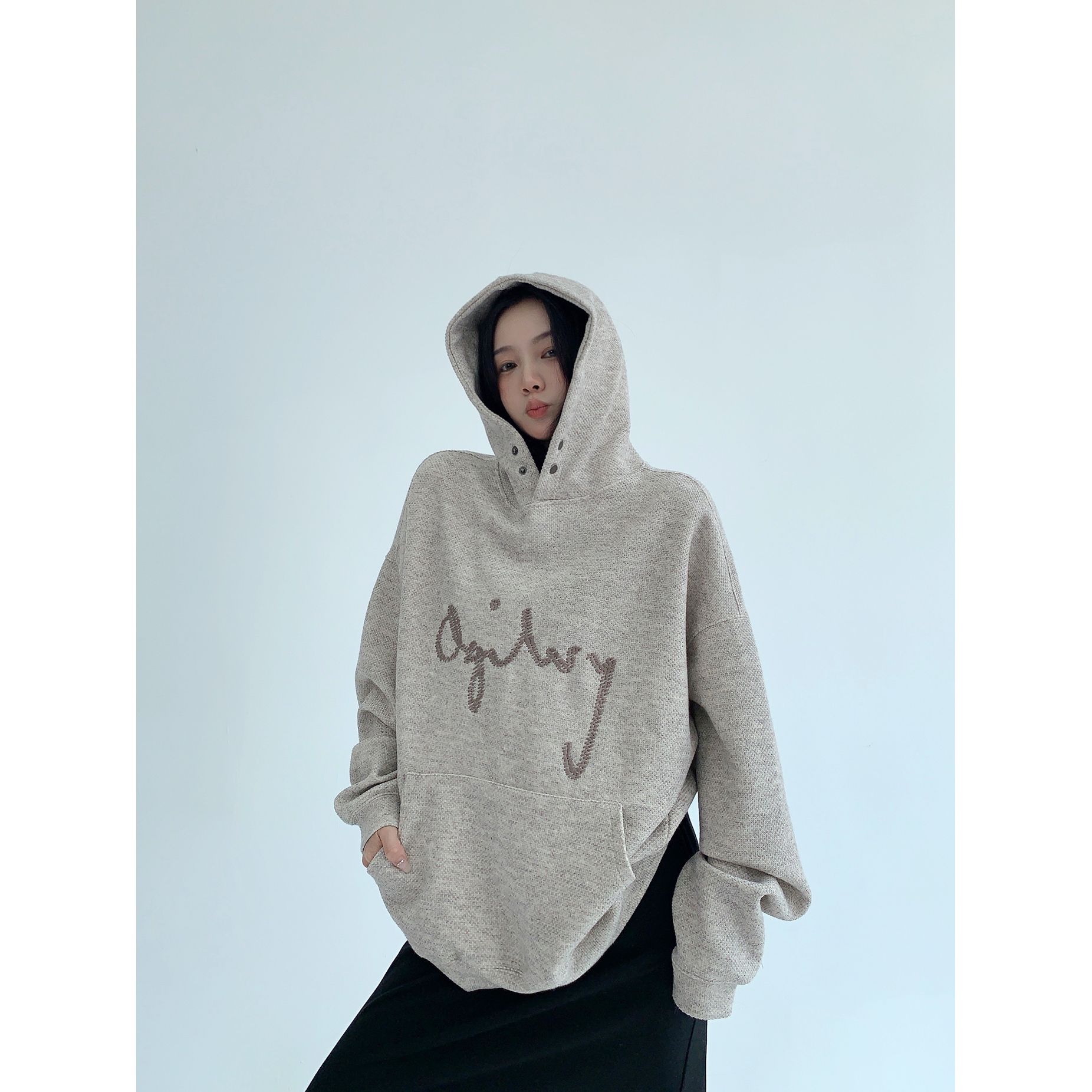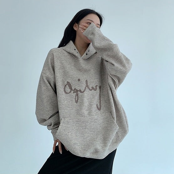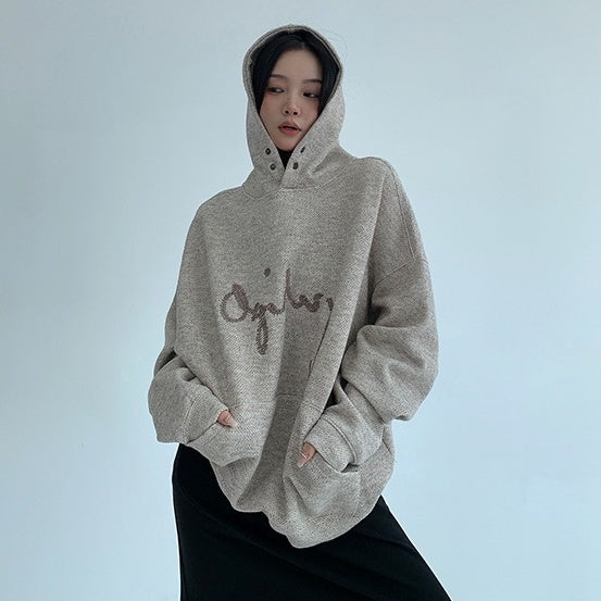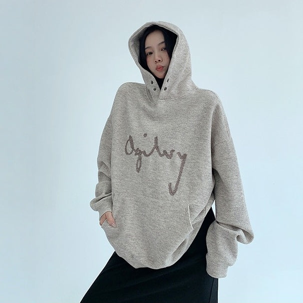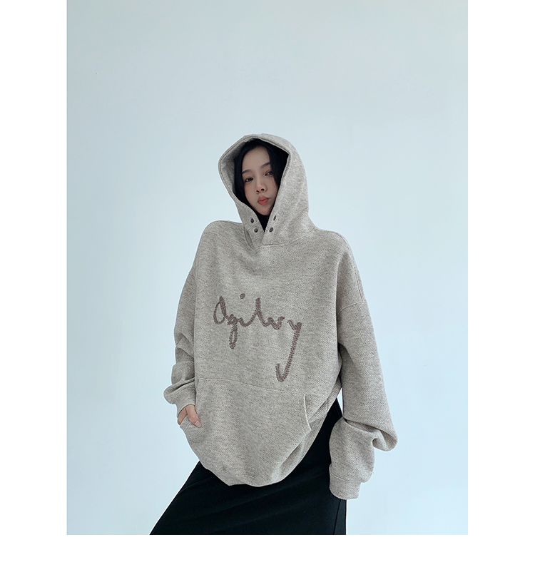 【トップス】リラックス感 ゆったりシルエット ダメージ加工 刺繍 春 秋 冬 フード付き パーカー 【FCシリーズ】