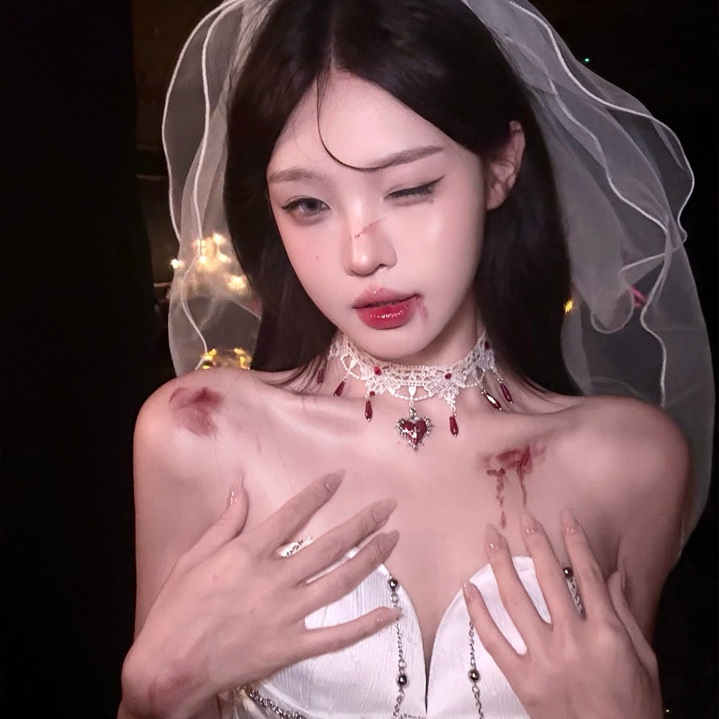 【ハロウィン】血の月の契約 ゴシック風 レースチョーカー ハートクロス ネックレス コスプレ花嫁