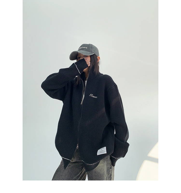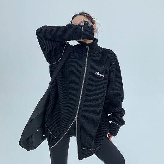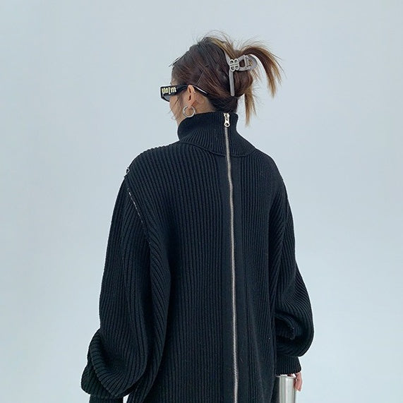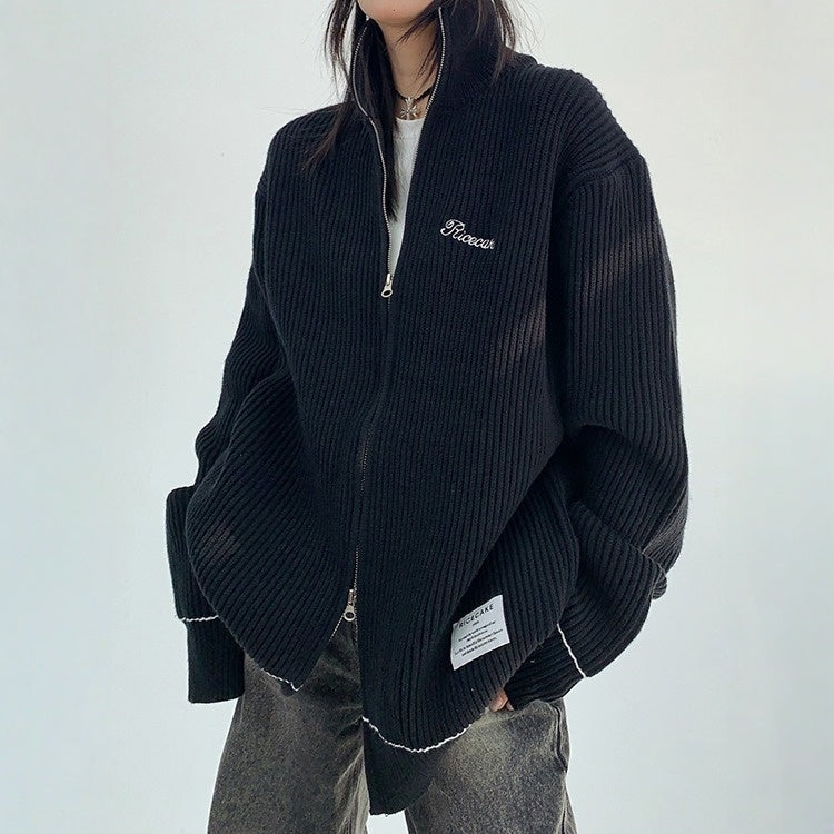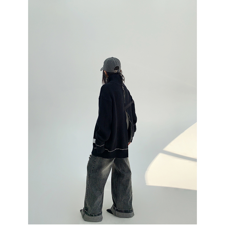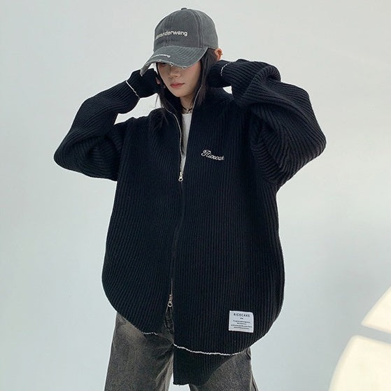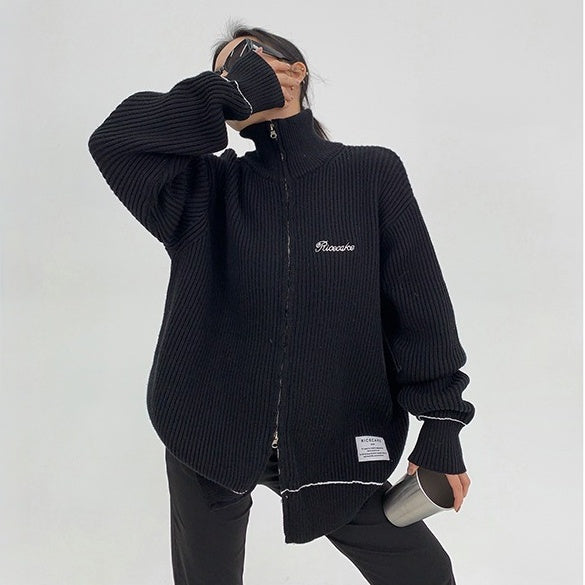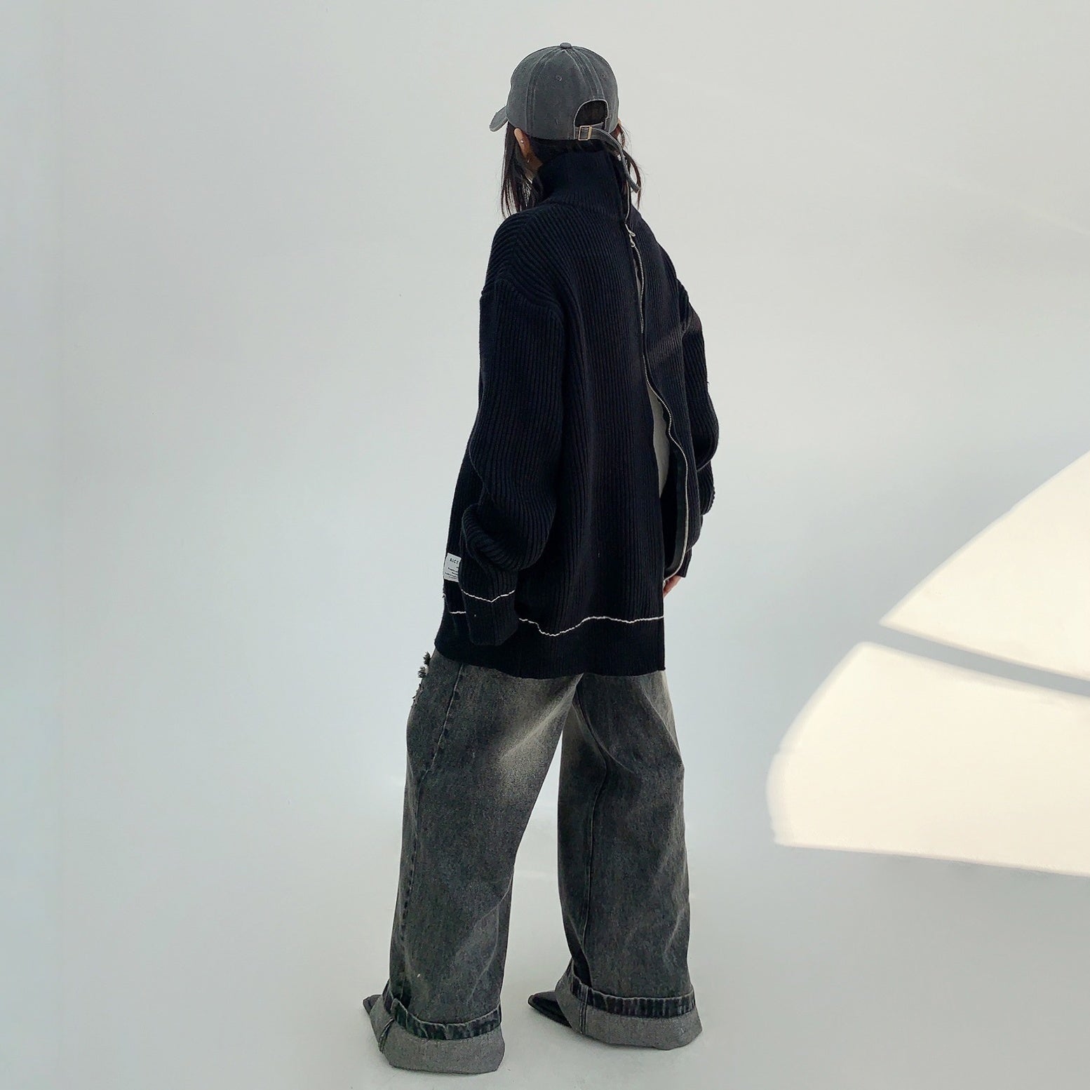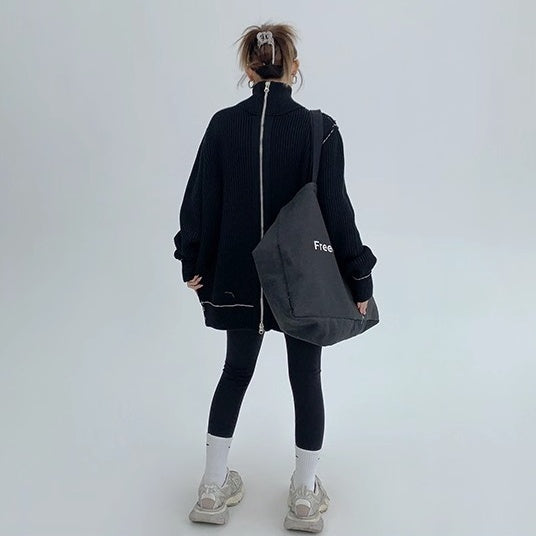 【トップス】ルーズ ファスナー付き 立襟 春 秋 冬 プルオーバー ニット セーター 【FCシリーズ】