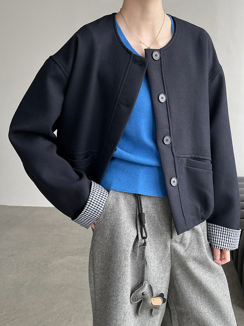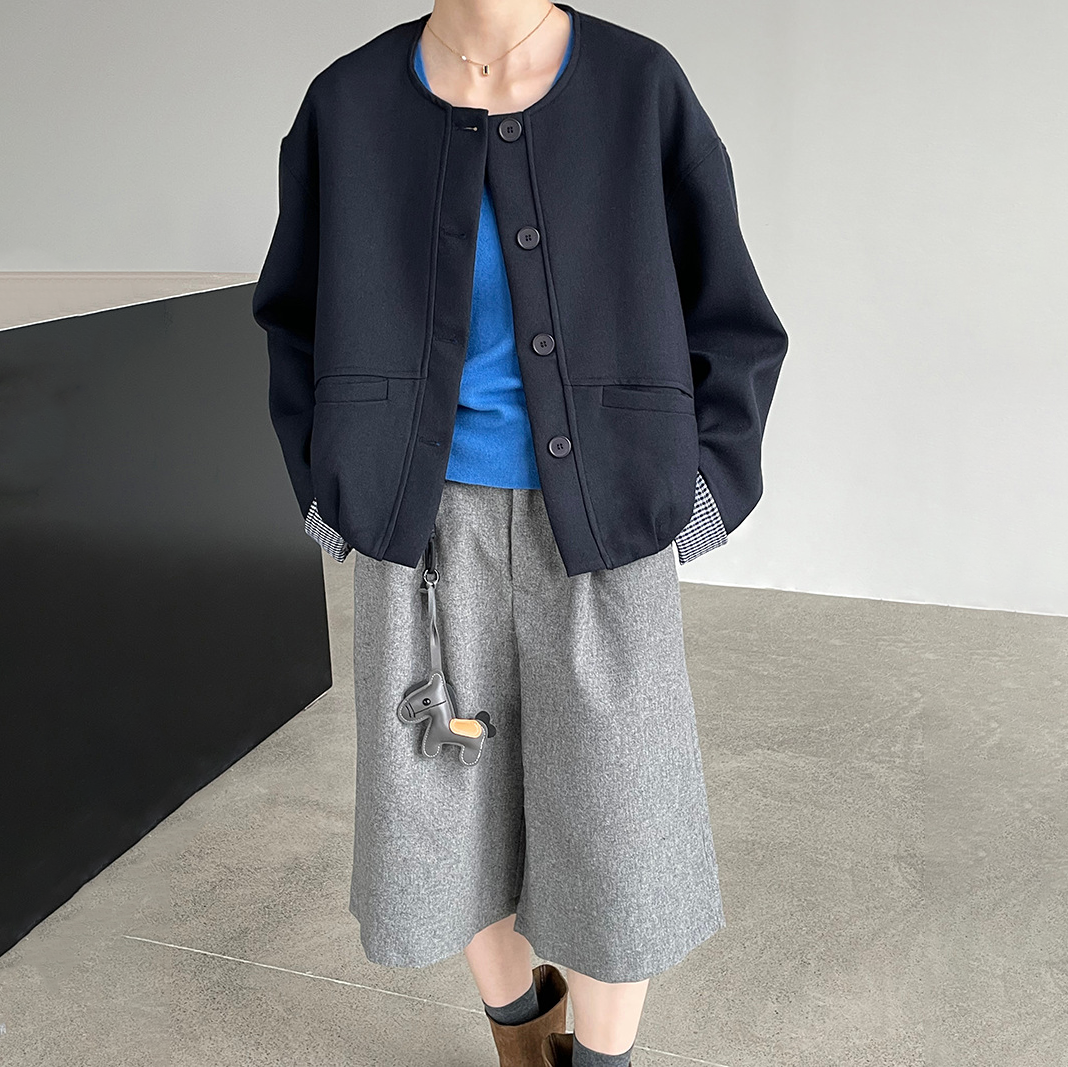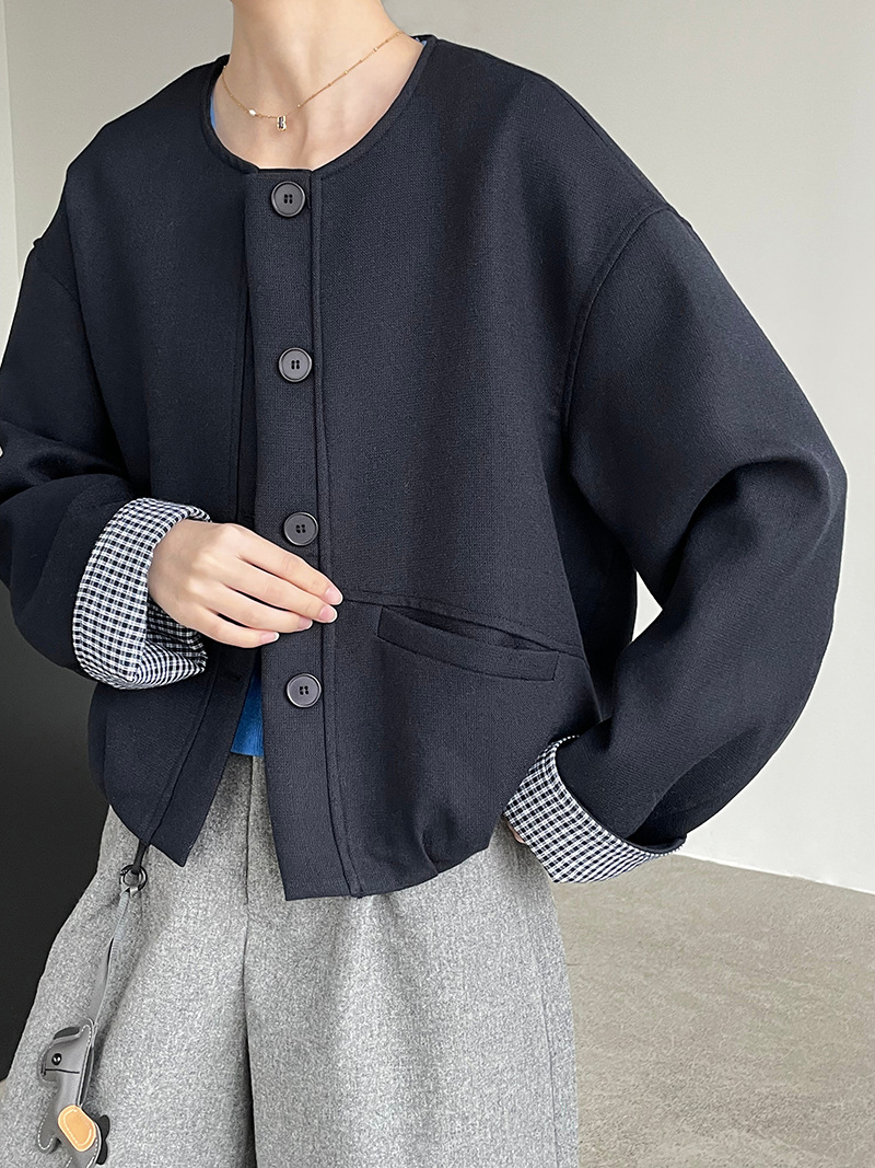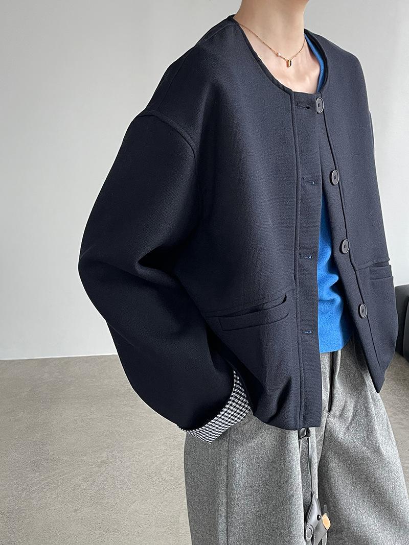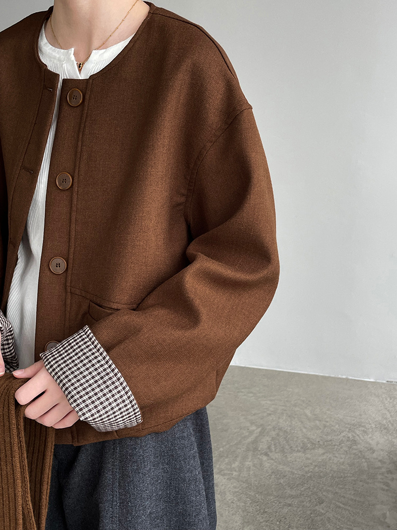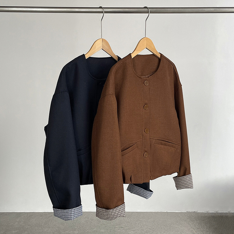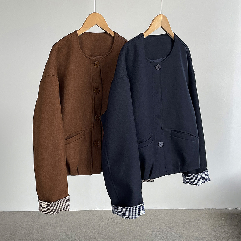 【アウター】春秋 韓国風 クルーネック シングルボタン ジャケット コート レディース【JZシリーズ】
