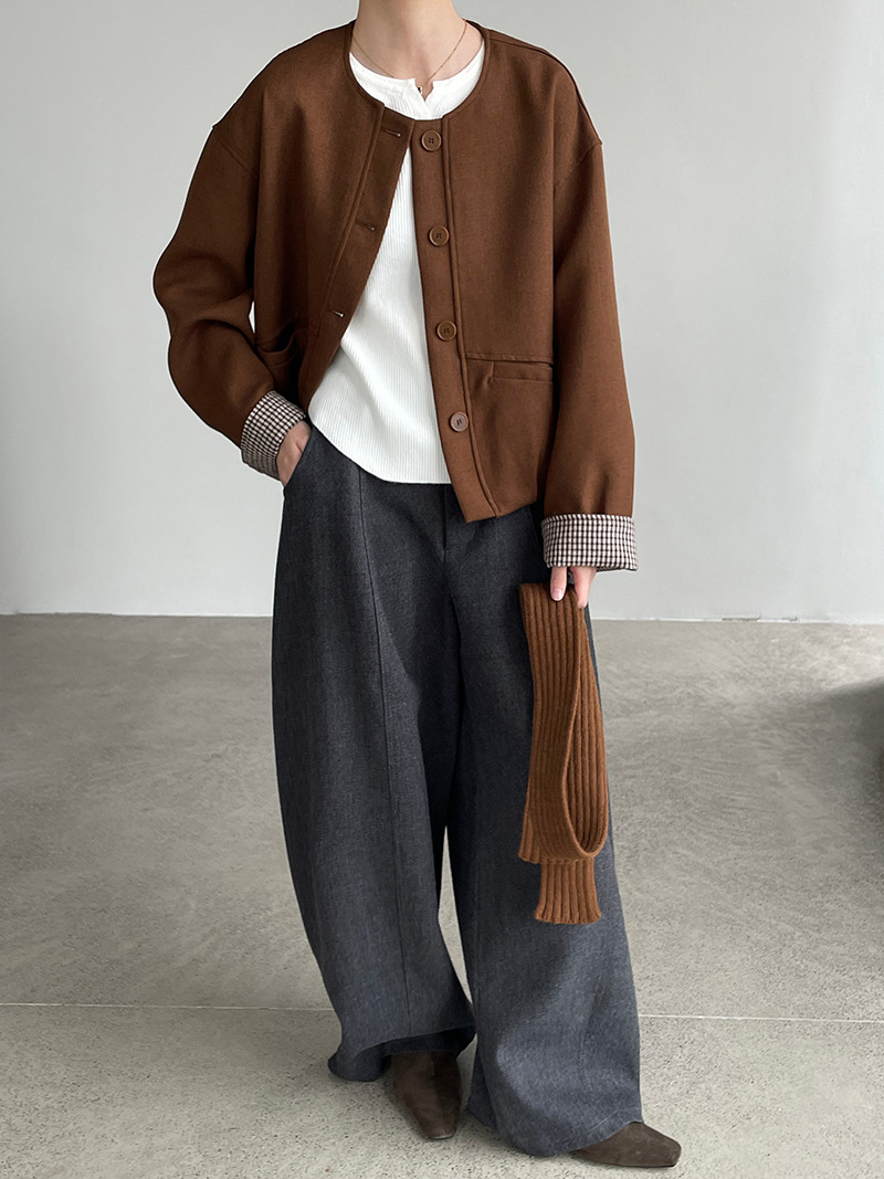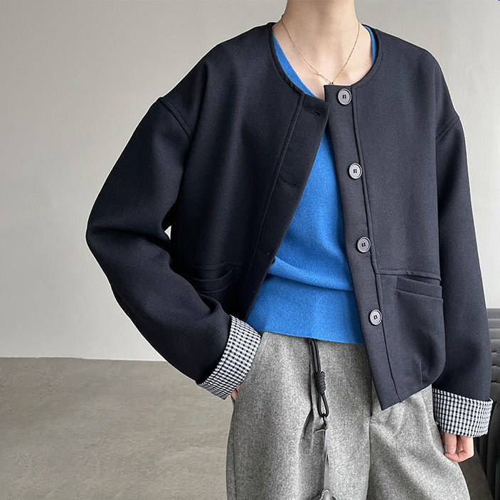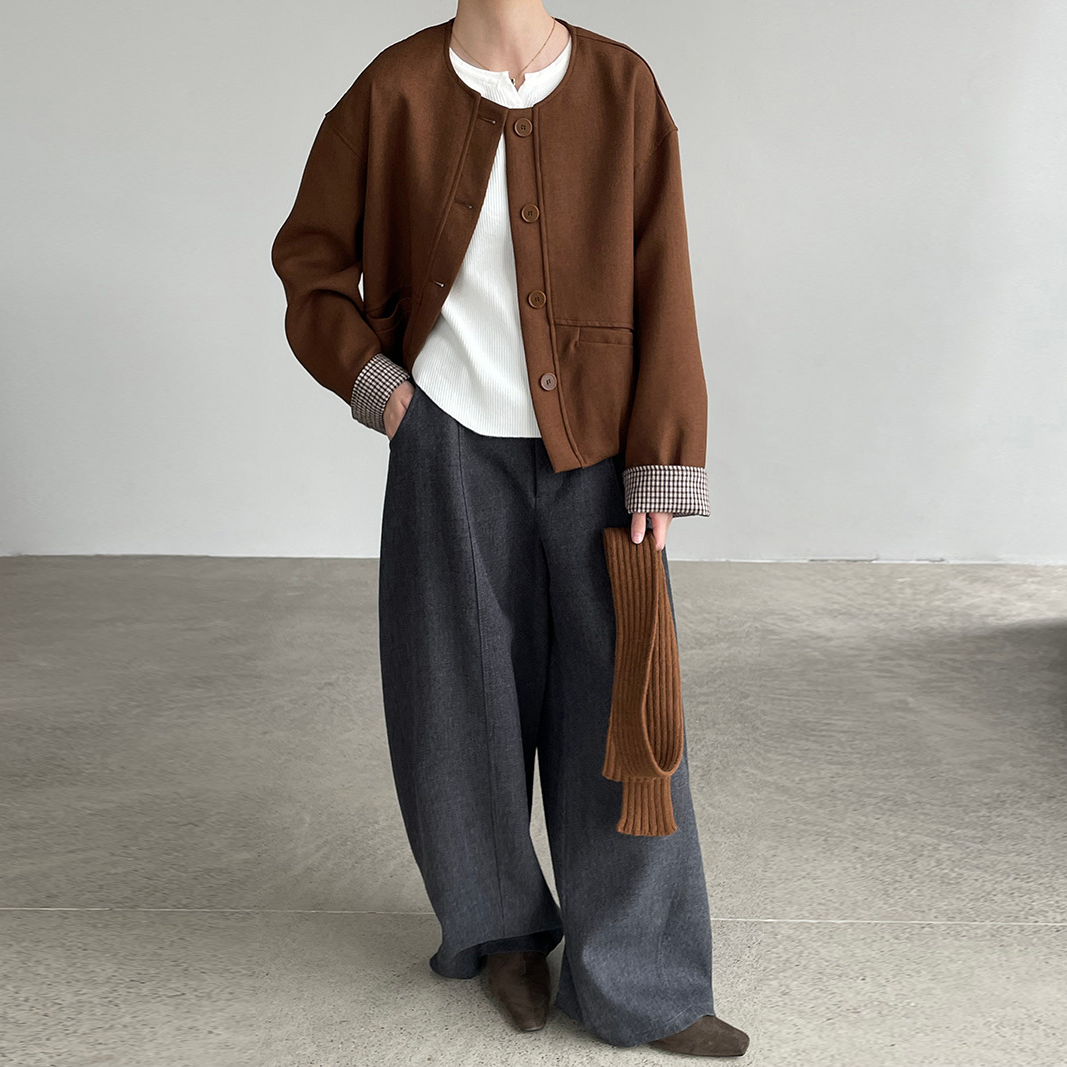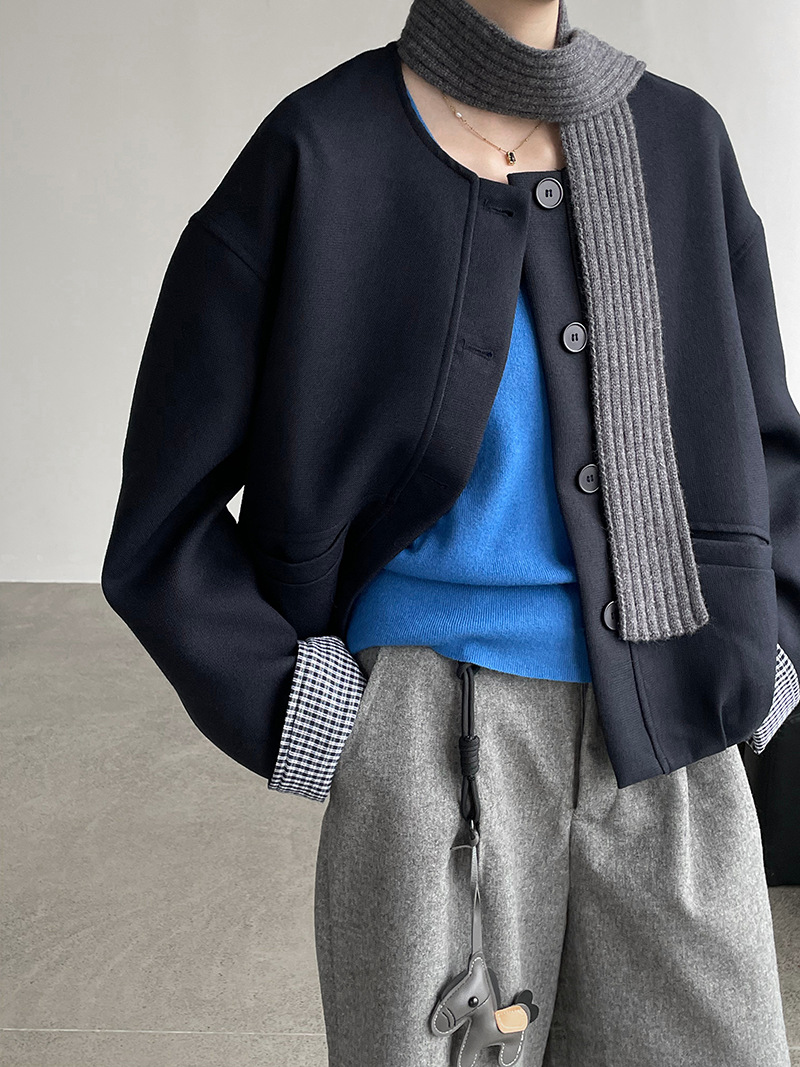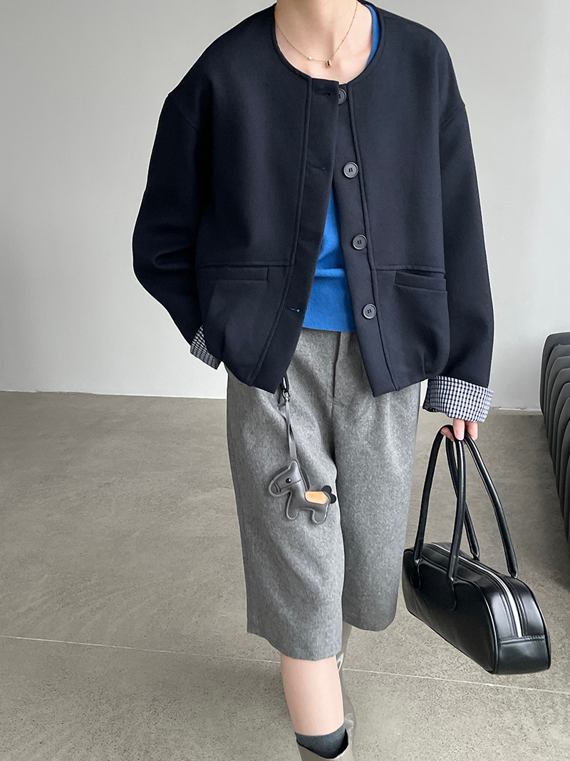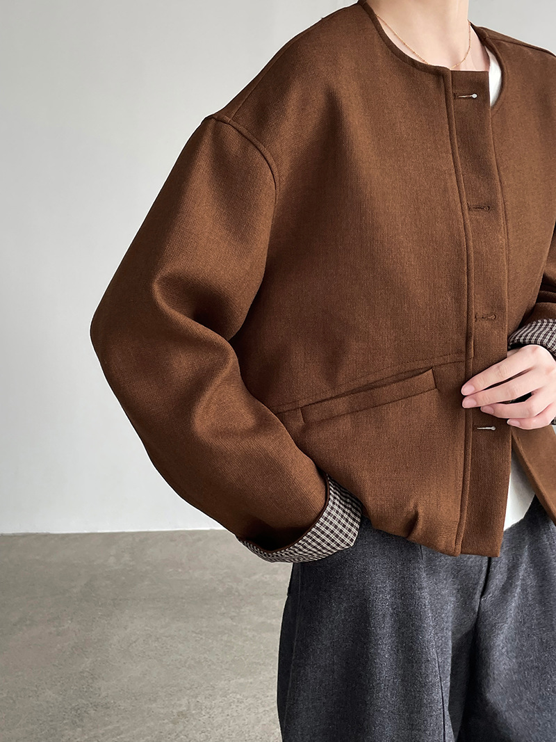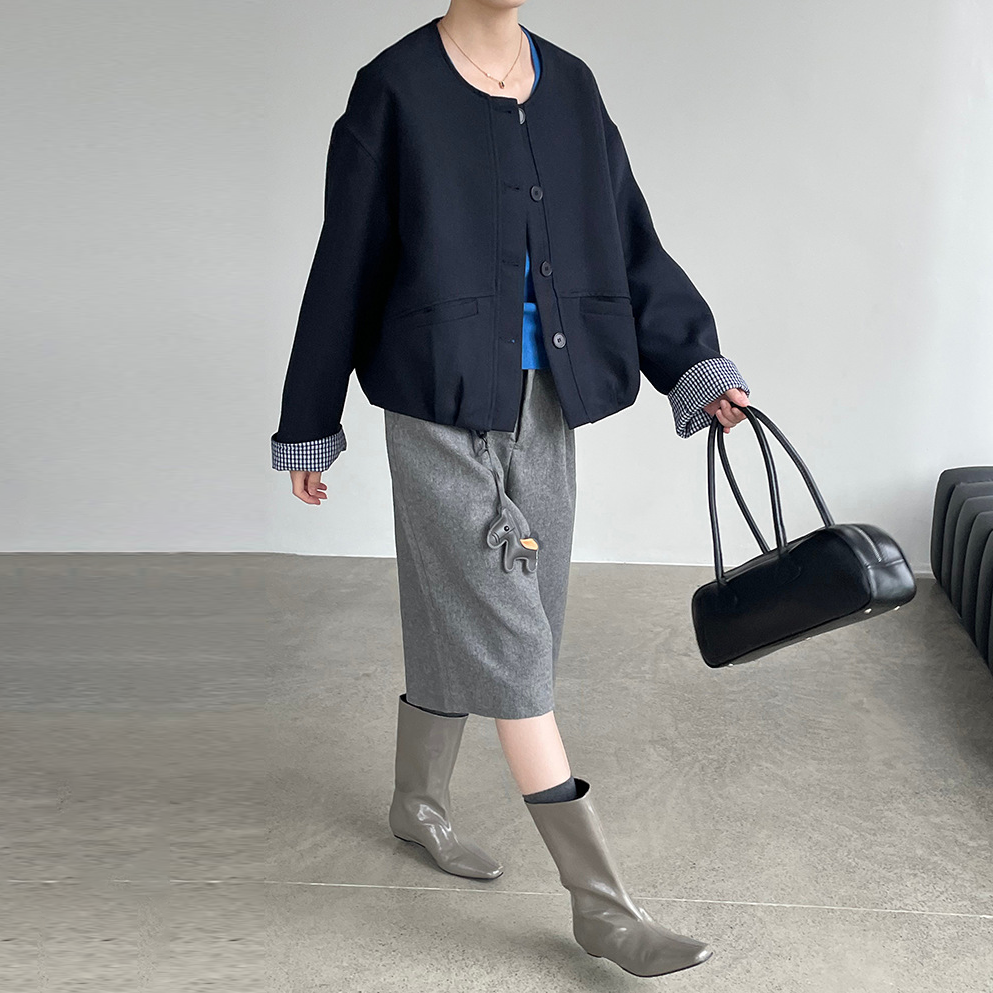 【アウター】春秋 韓国風 クルーネック シングルボタン ジャケット コート レディース【JZシリーズ】